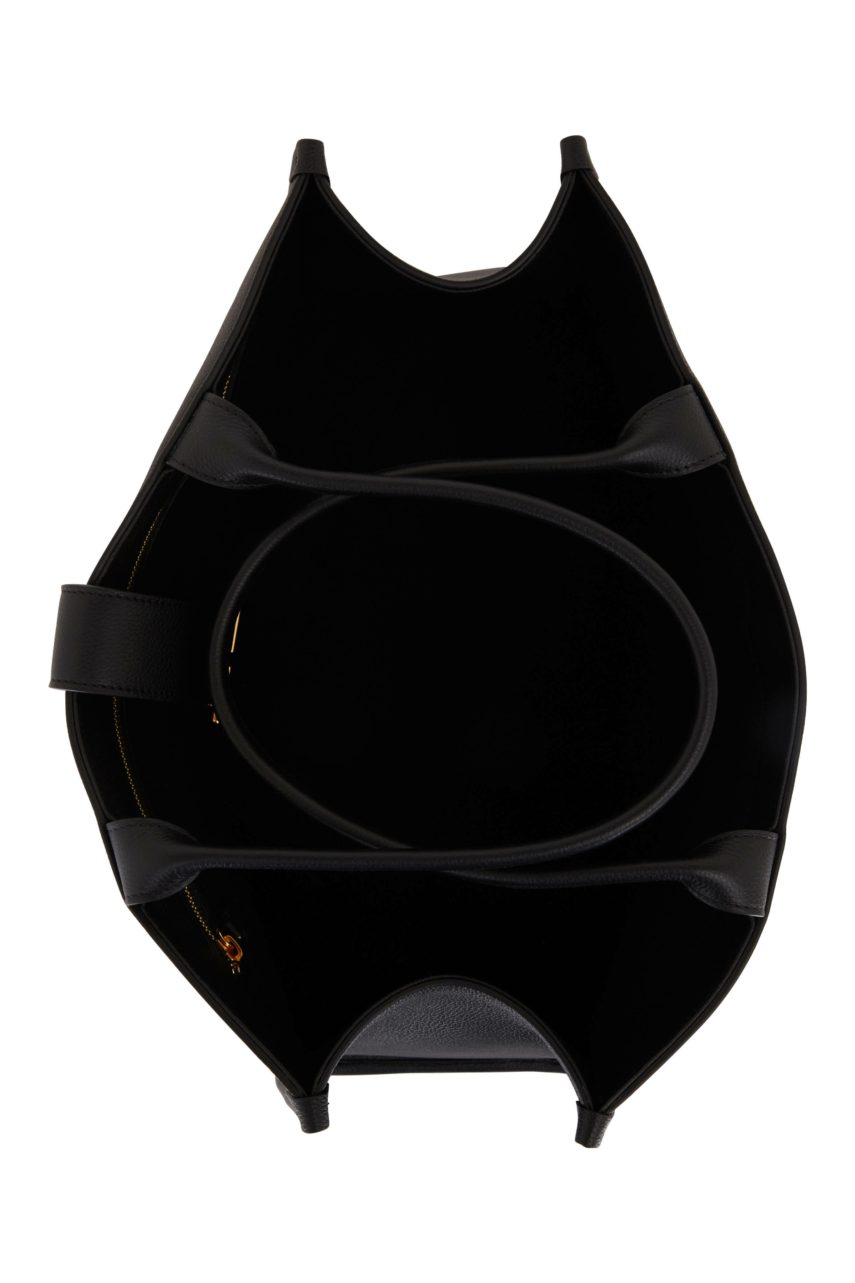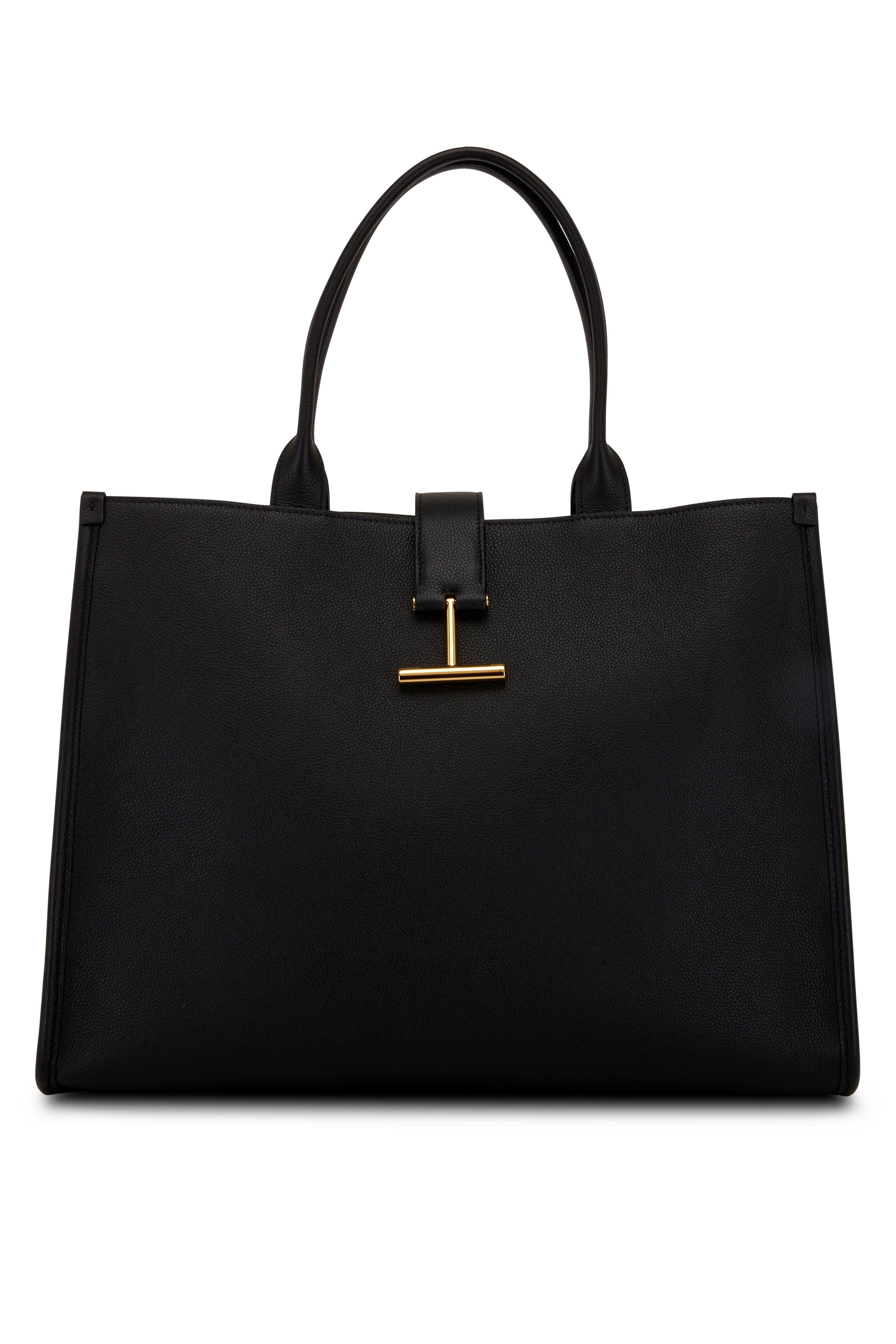 Grained leather. Dual leather top handles. Leather magnetic closure; TF logo. One interior zip pocket. Textile lining. Made in Italy. Height: 32cm / 13". Width: 43cm / 17". Depth: 16cm / 6". Strap drop: 21cm / 8".