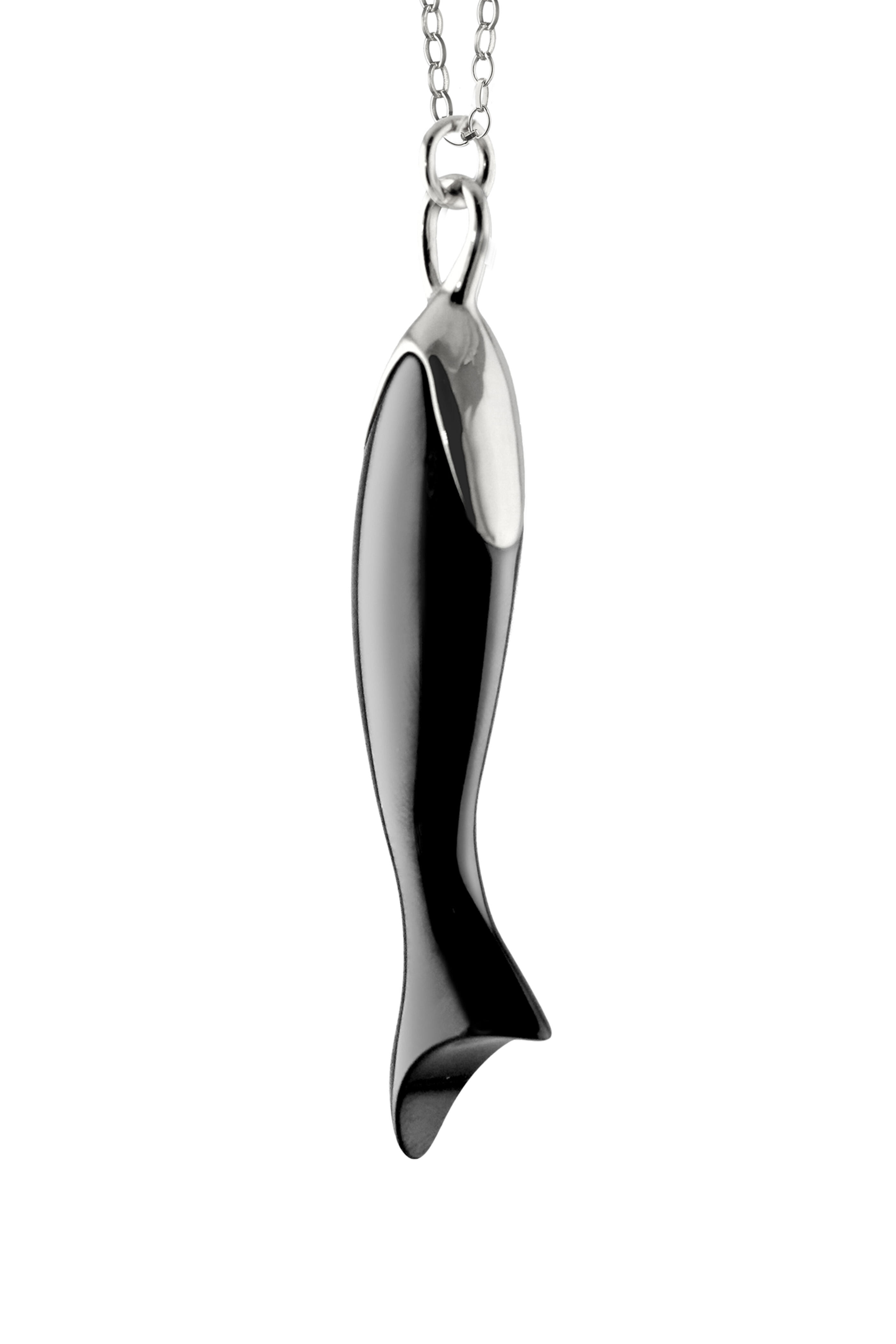 Sterling Silver Black Ceramic Fish Charm