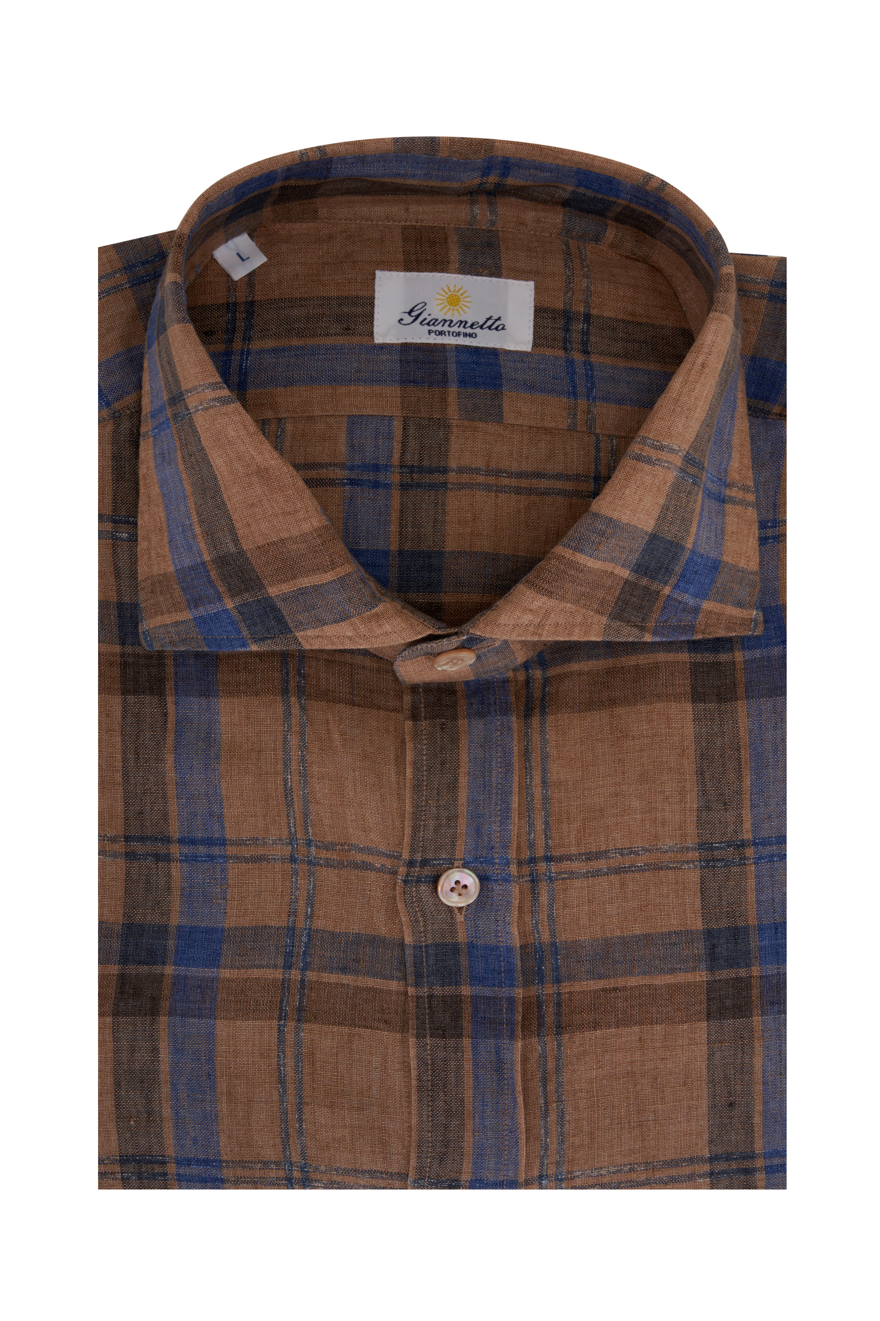 Spread collar. Front placket. Single button barrel cuffs. Made in Italy. 100% linen. Machine wash.