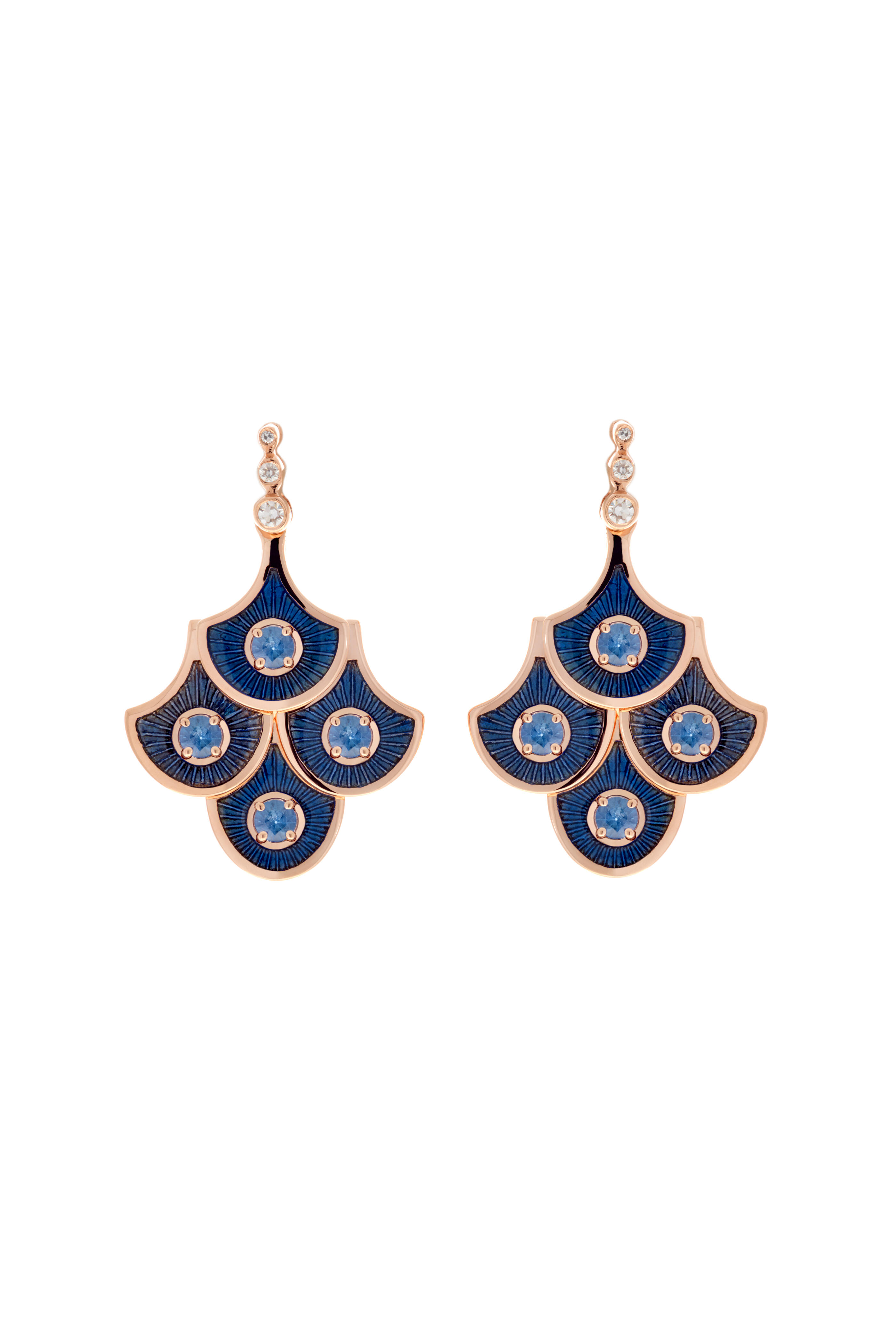 Rose gold. .09 carat diamonds. .98 carat blue sapphire.