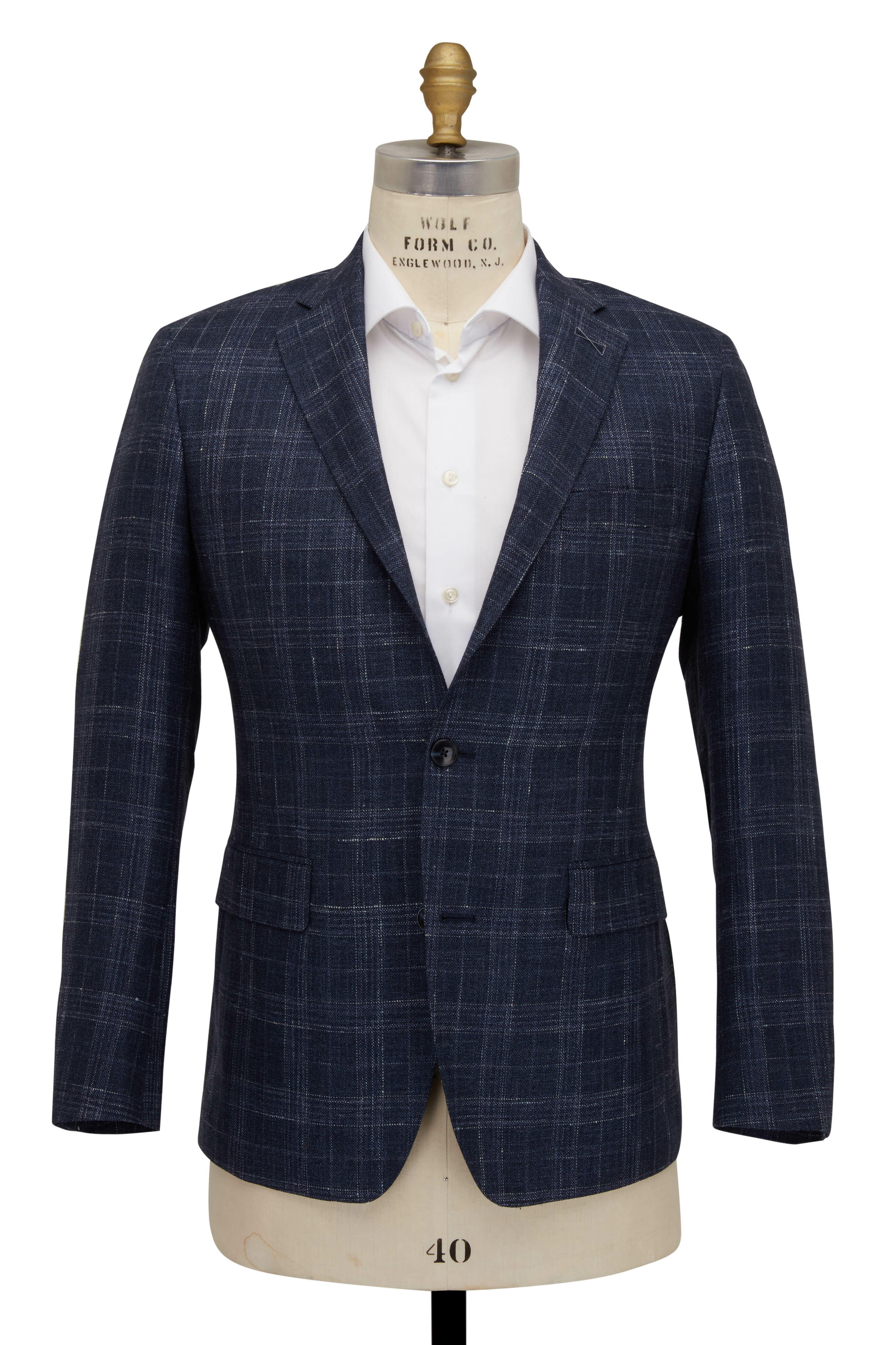 Blue & Gray Multi Windowpane Wool Blend Sportcoat