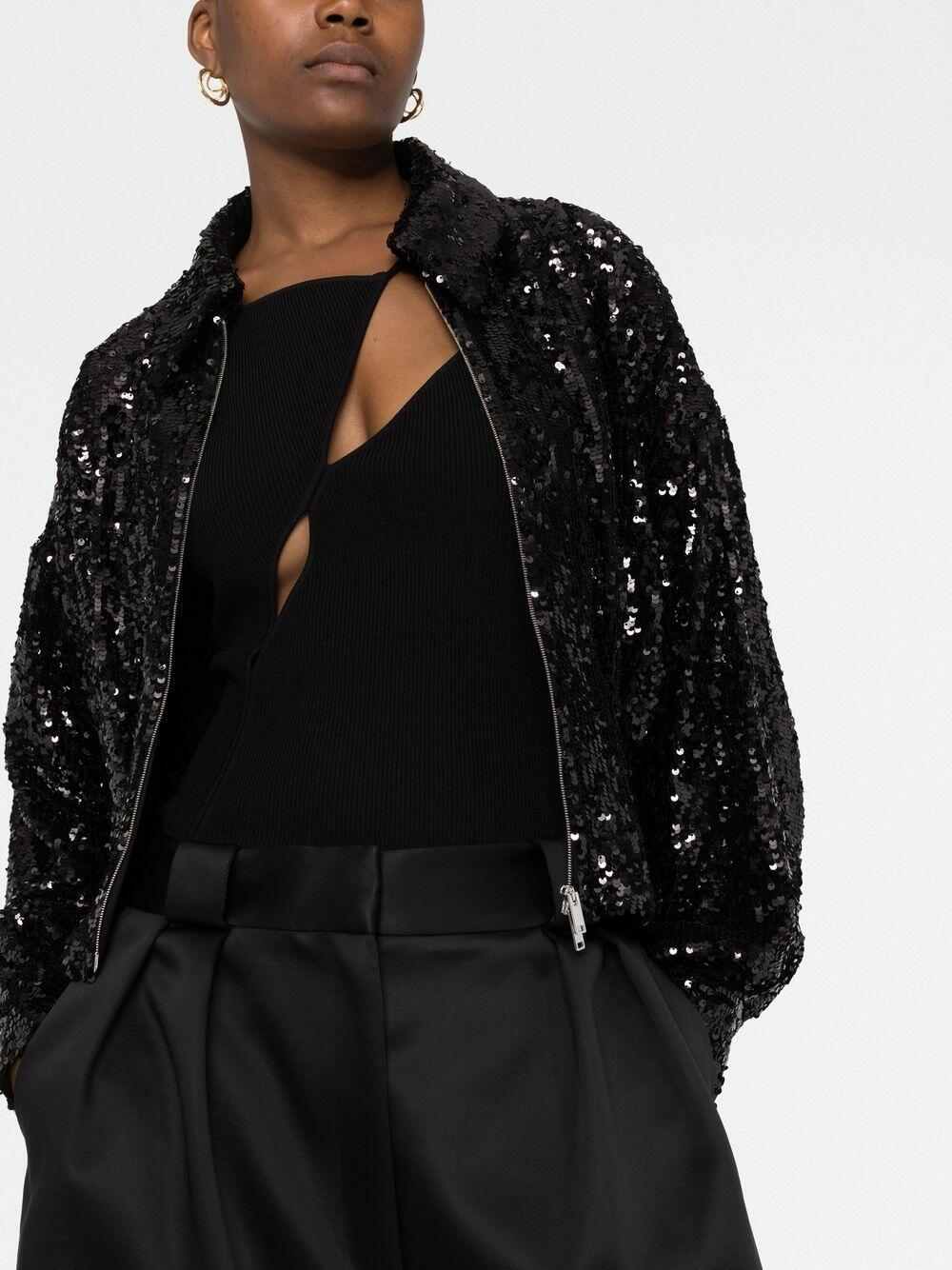 Spread collar. Two-way zip. Single snap cuffs. Imported. 100% viscose; lining: 100% silk. Dry clean.