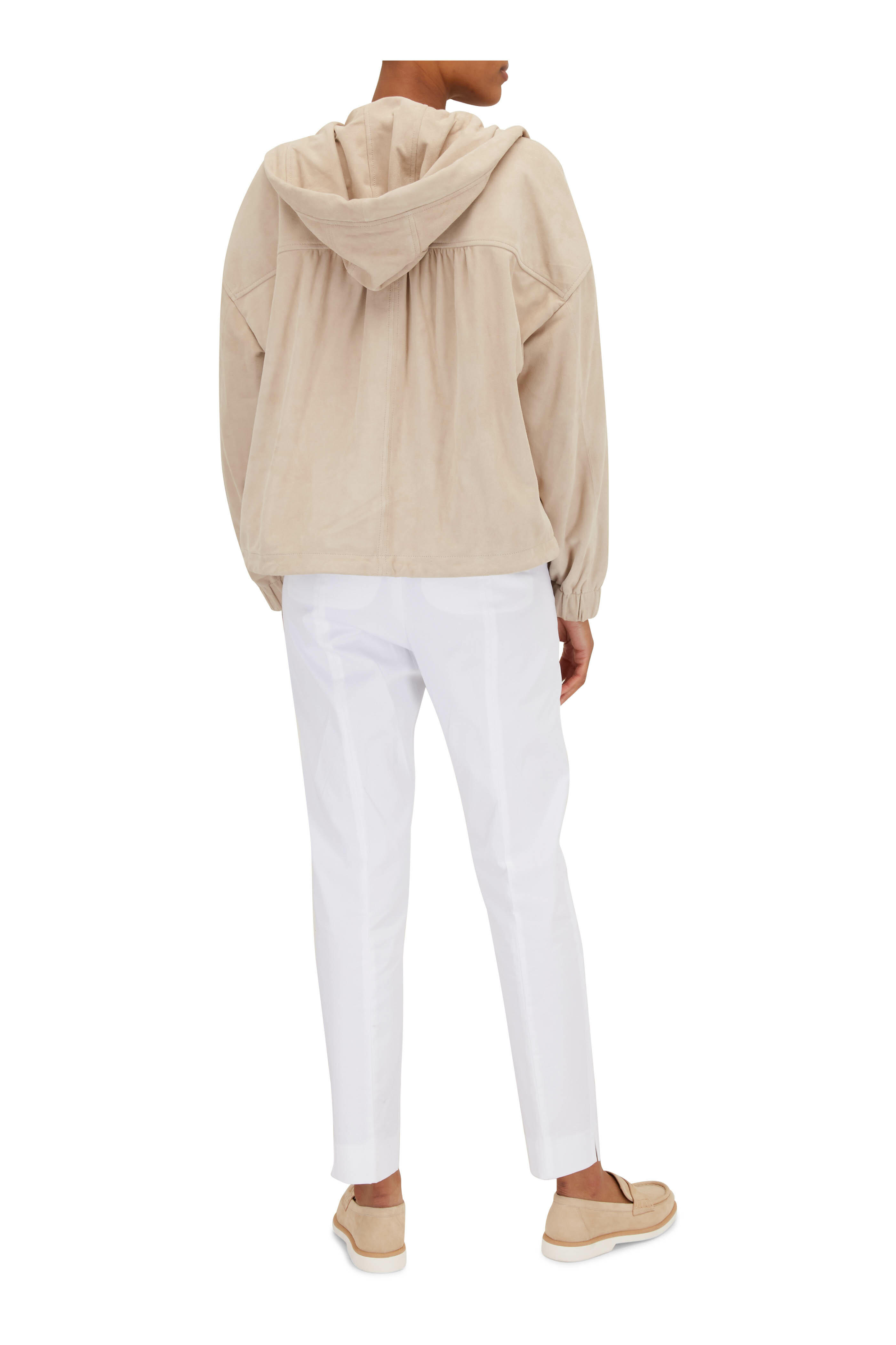 Zip fly; hook-and-bar closure. Banded waist; belt loops. Side slash pockets; back welt pockets. Pressed front creases. Ankle hem side slits. Imported. 10" rise. 29" inseam. Regular fit with subtly tapered leg. 97% cotton, 3% elastane. Dry clean.