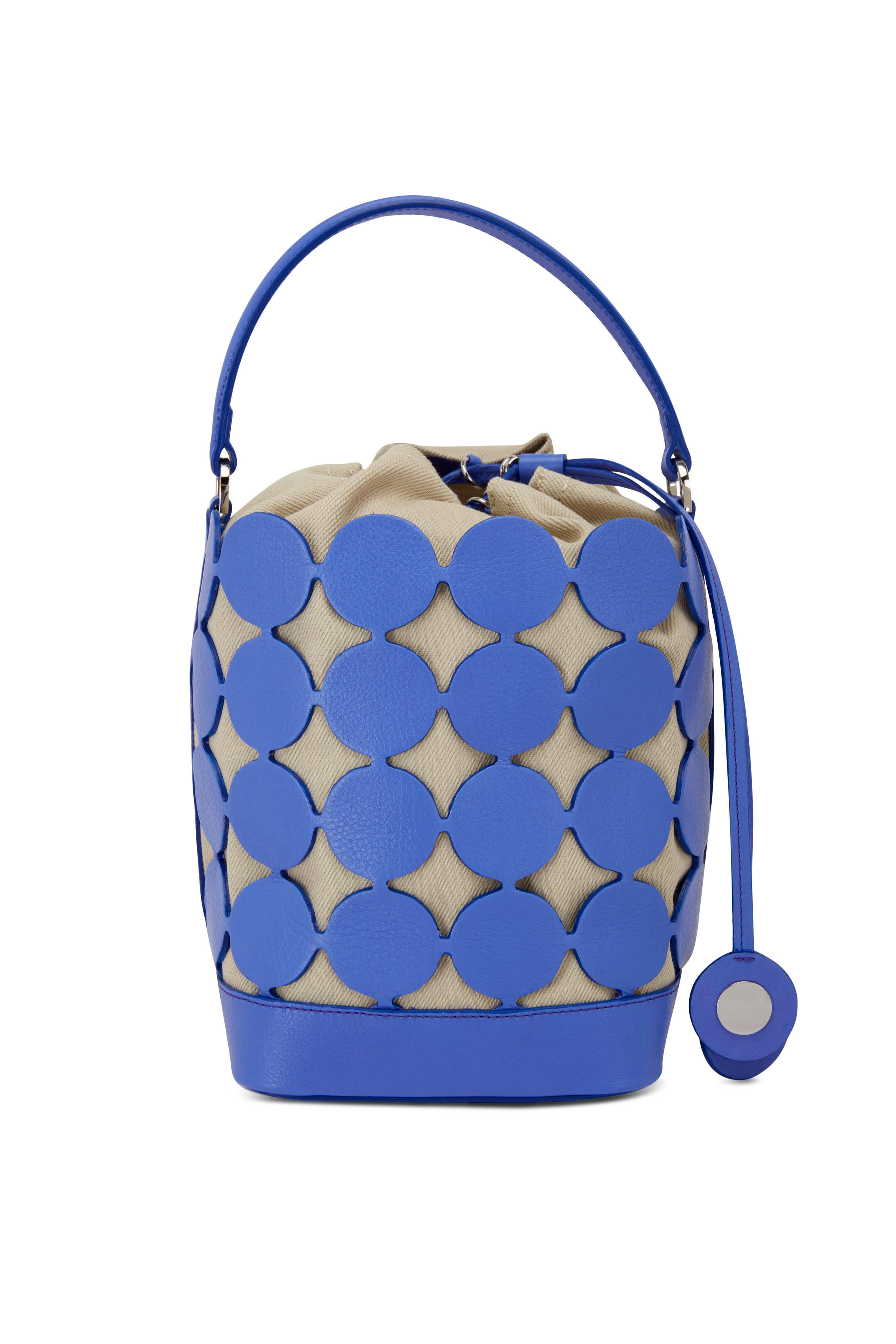 Bulles Indigo Leather & Sand Canvas Bucket Bag