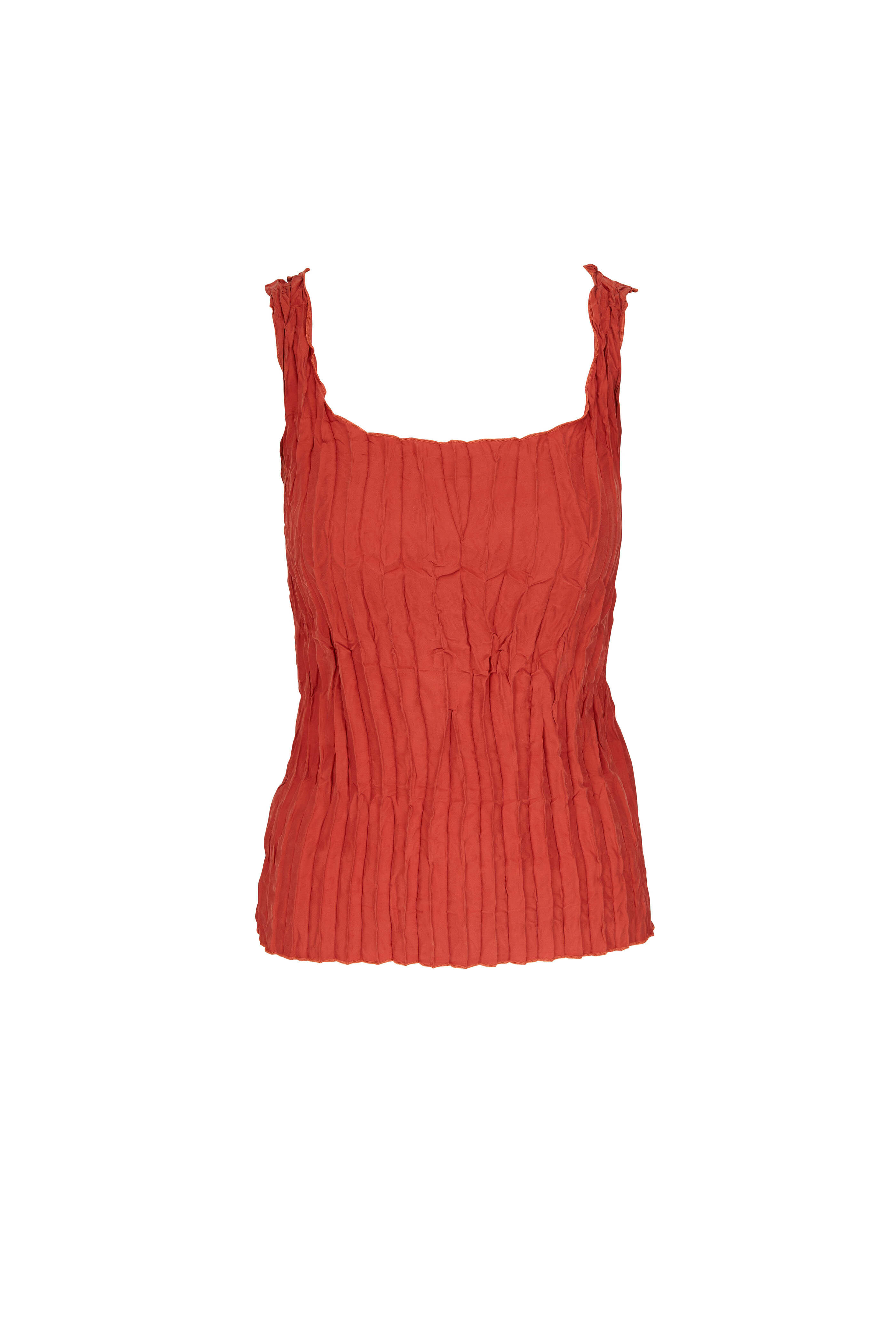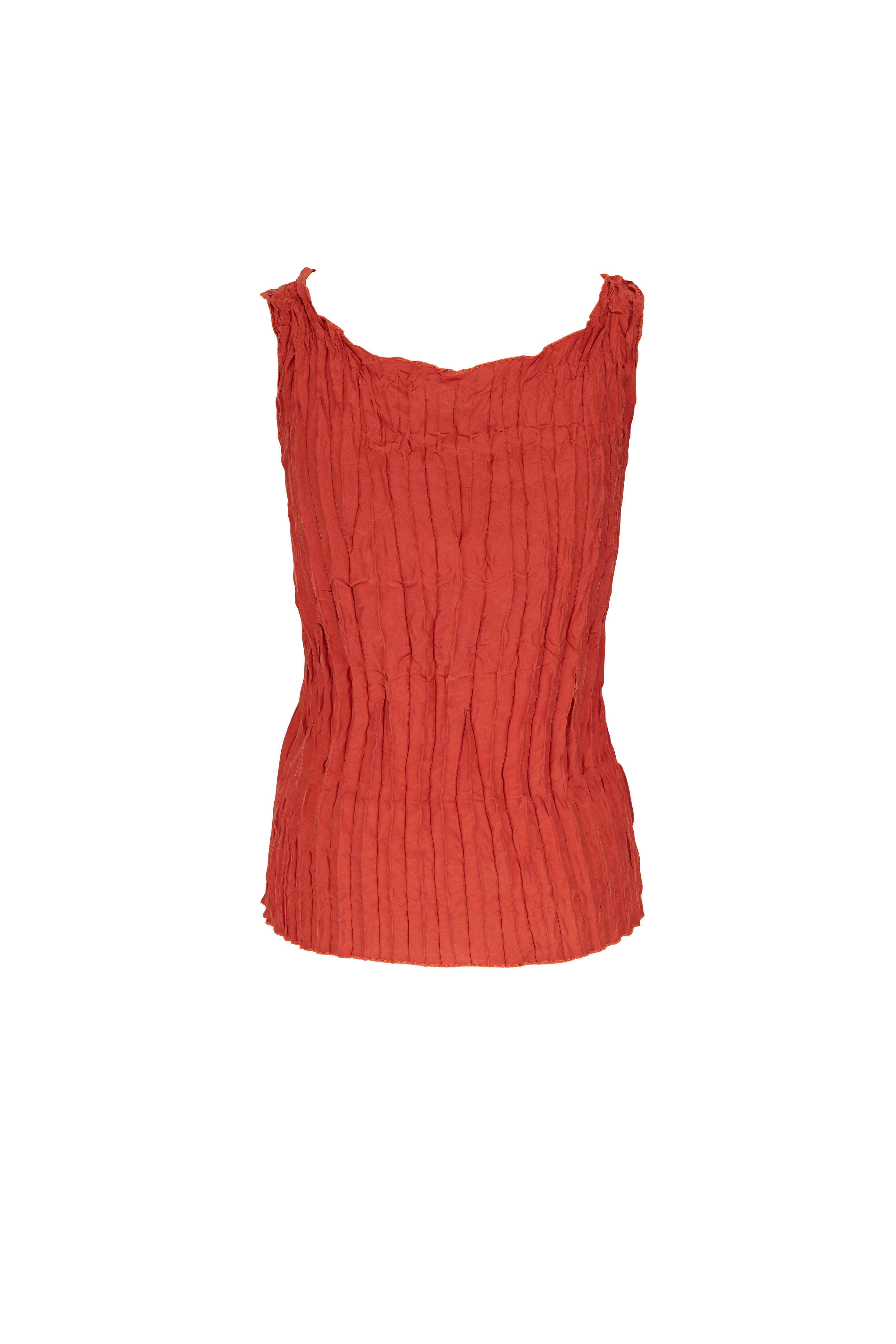 Bloody Mary Crinkled Solid Tomato Silk Top