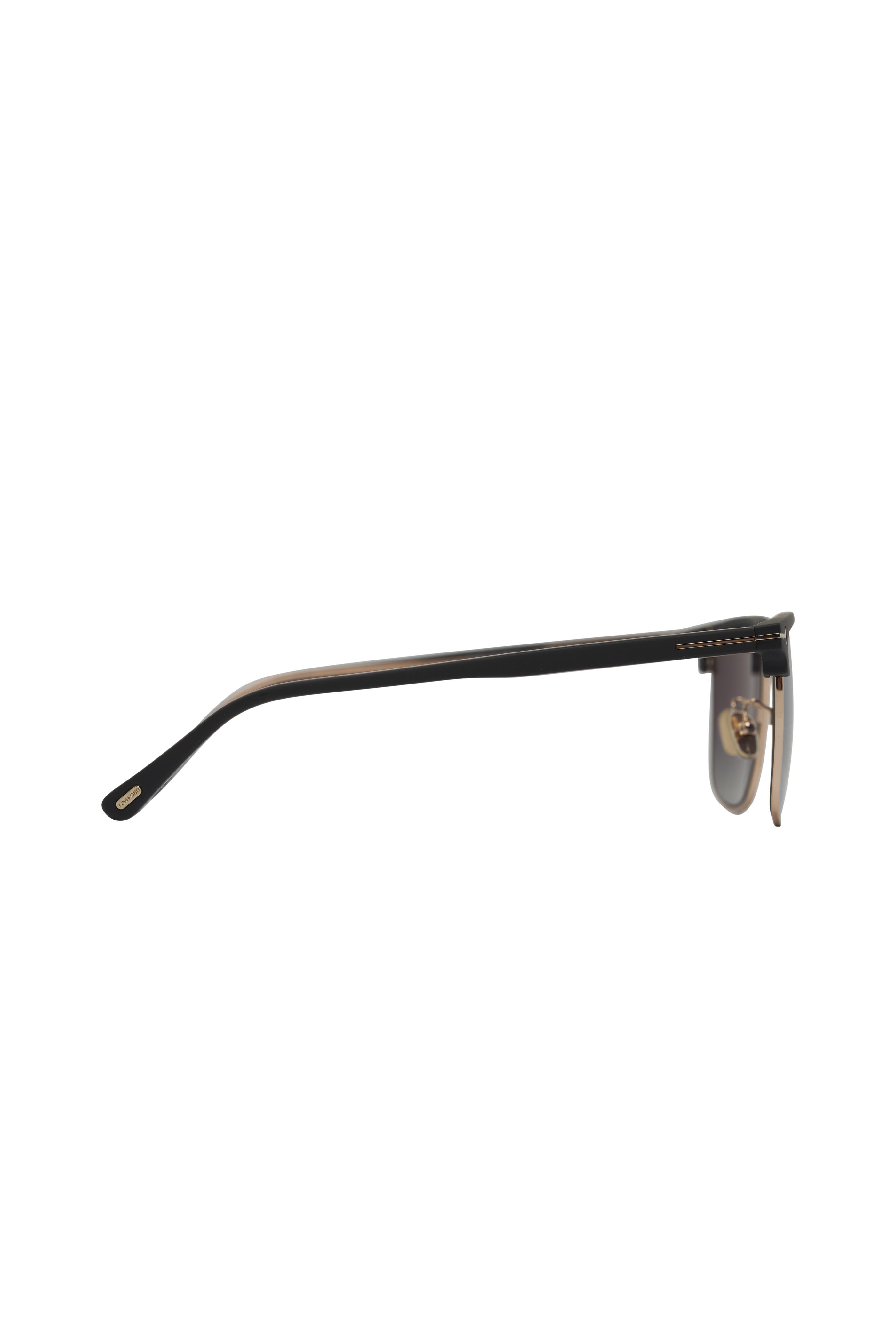 Frame material: Acetate and metal. Frame color: Black and gold. Lens color: Black. Made in Italy. 100% UV protection.