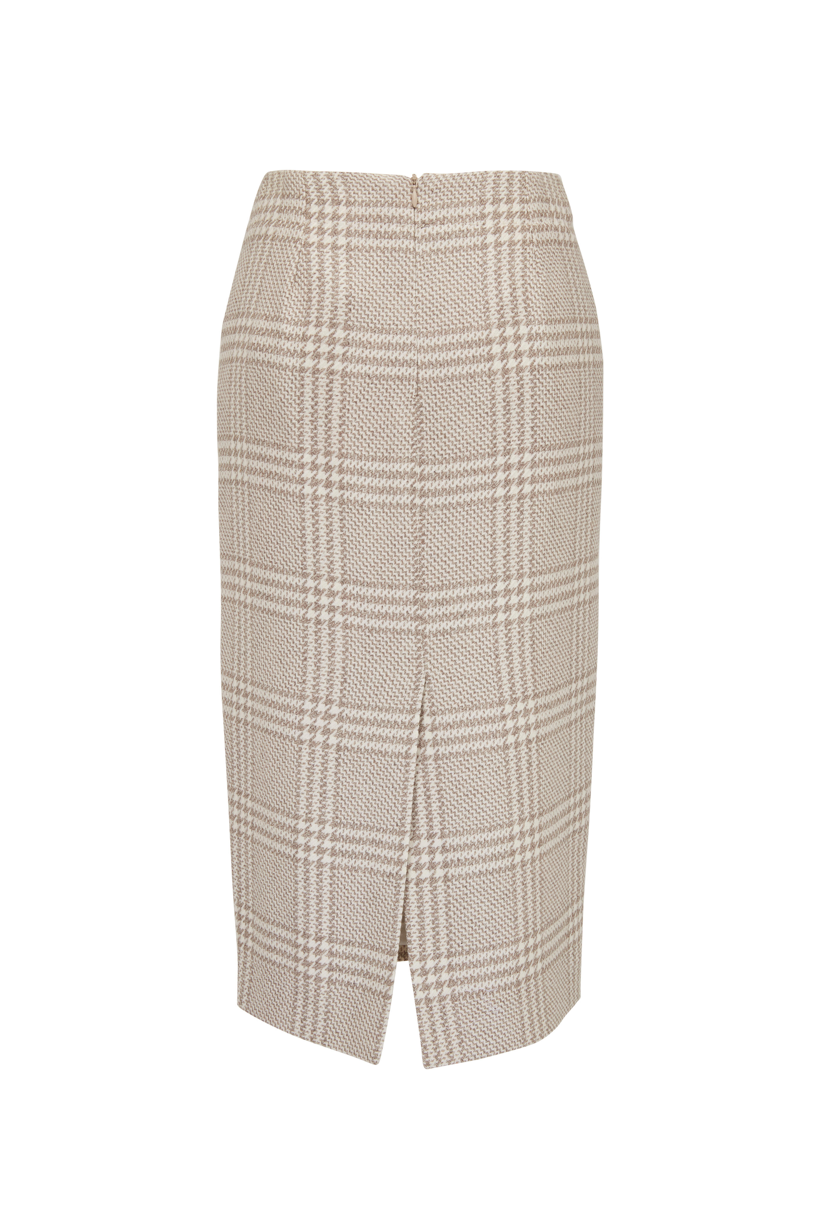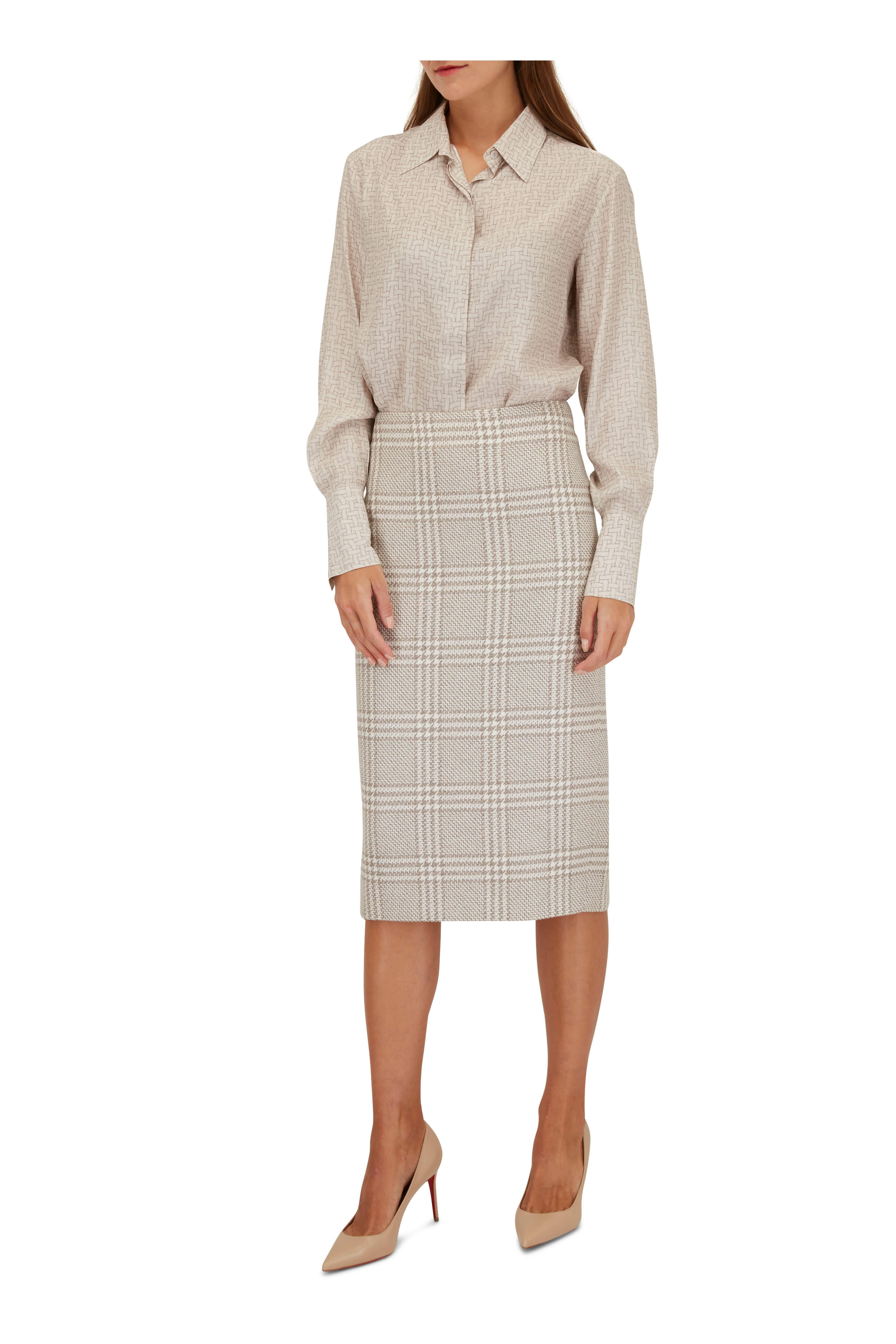 Concealed back zip. Back slit hem. Made in Italy. 51% silk, 49% cashmere; Lining: 100% cupro. Dry clean.