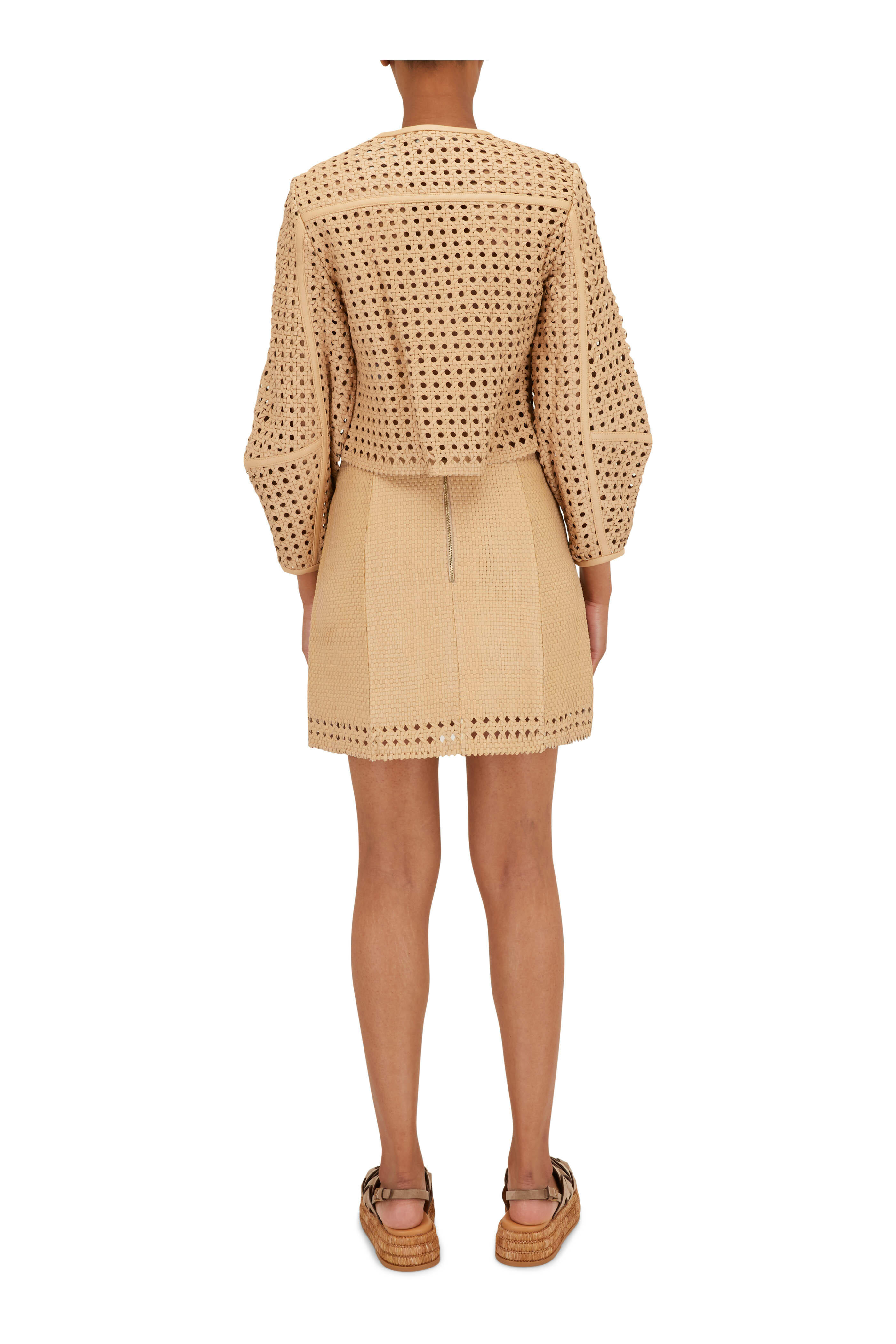 Faedra Natural Basketweave Leather Skirt
