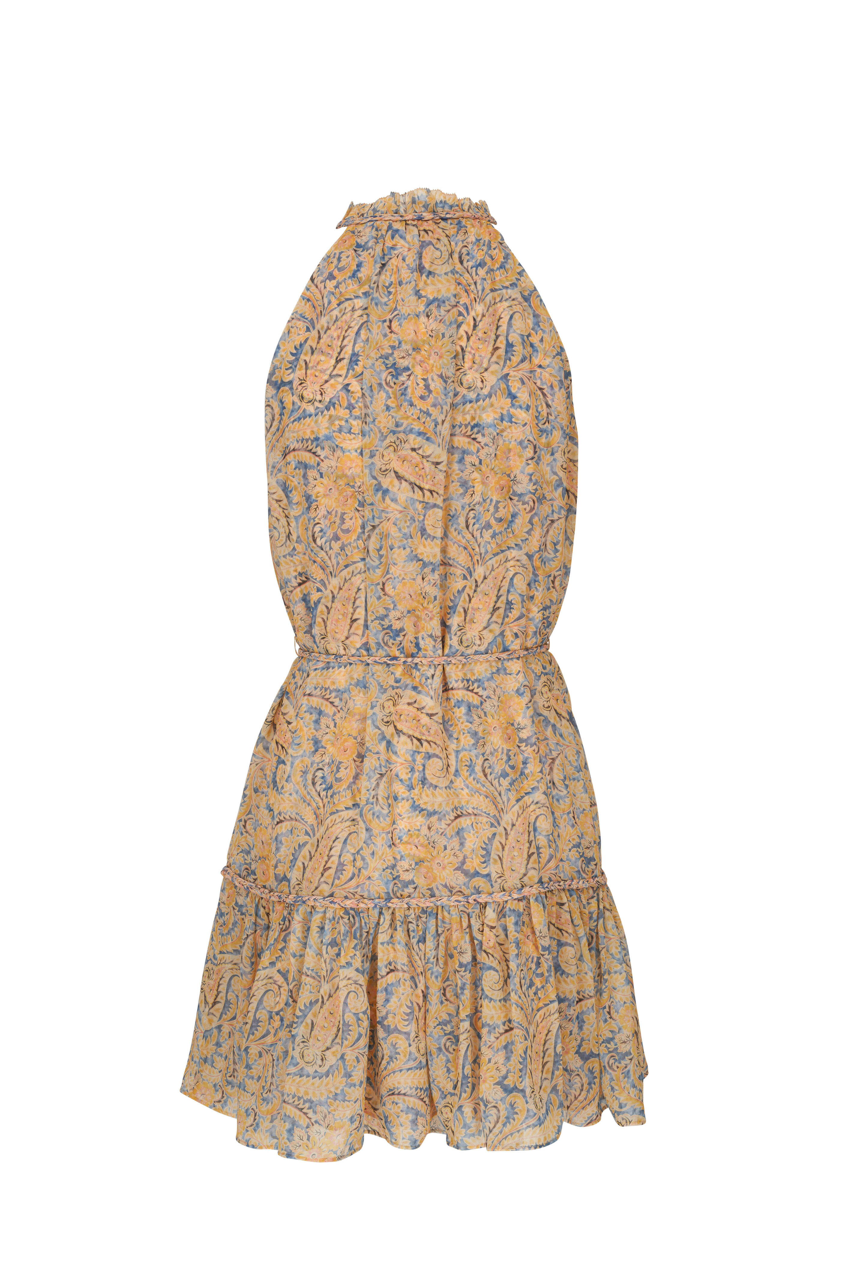 Dria Blue Yellow Multi Paisley Silk Mini Dress