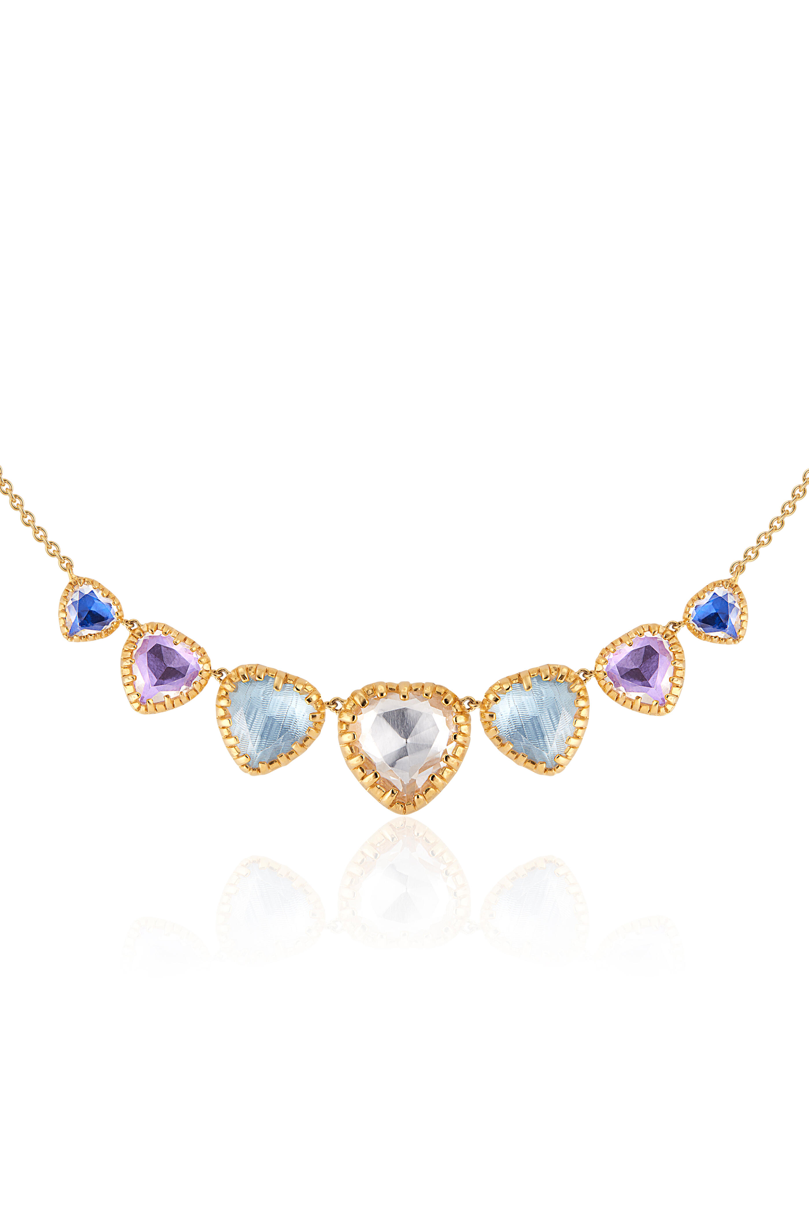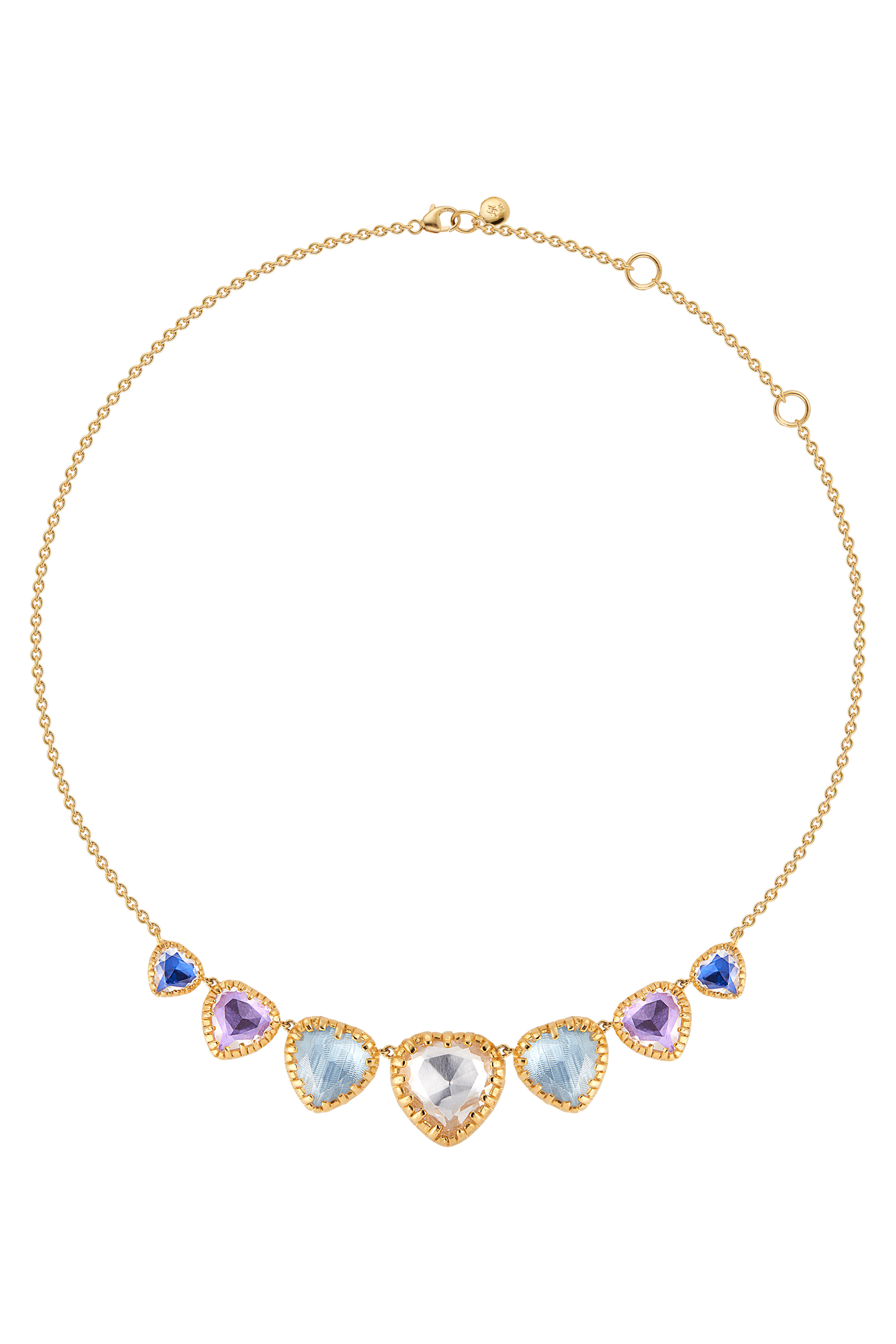 Valentina 'I Love NY' 7-Stone Collar of Black Rhodium. (16-17-18 in adjustable chain). 18k Yellow Gold Washed Sterling Silver with White Quartz and Colored Foil.