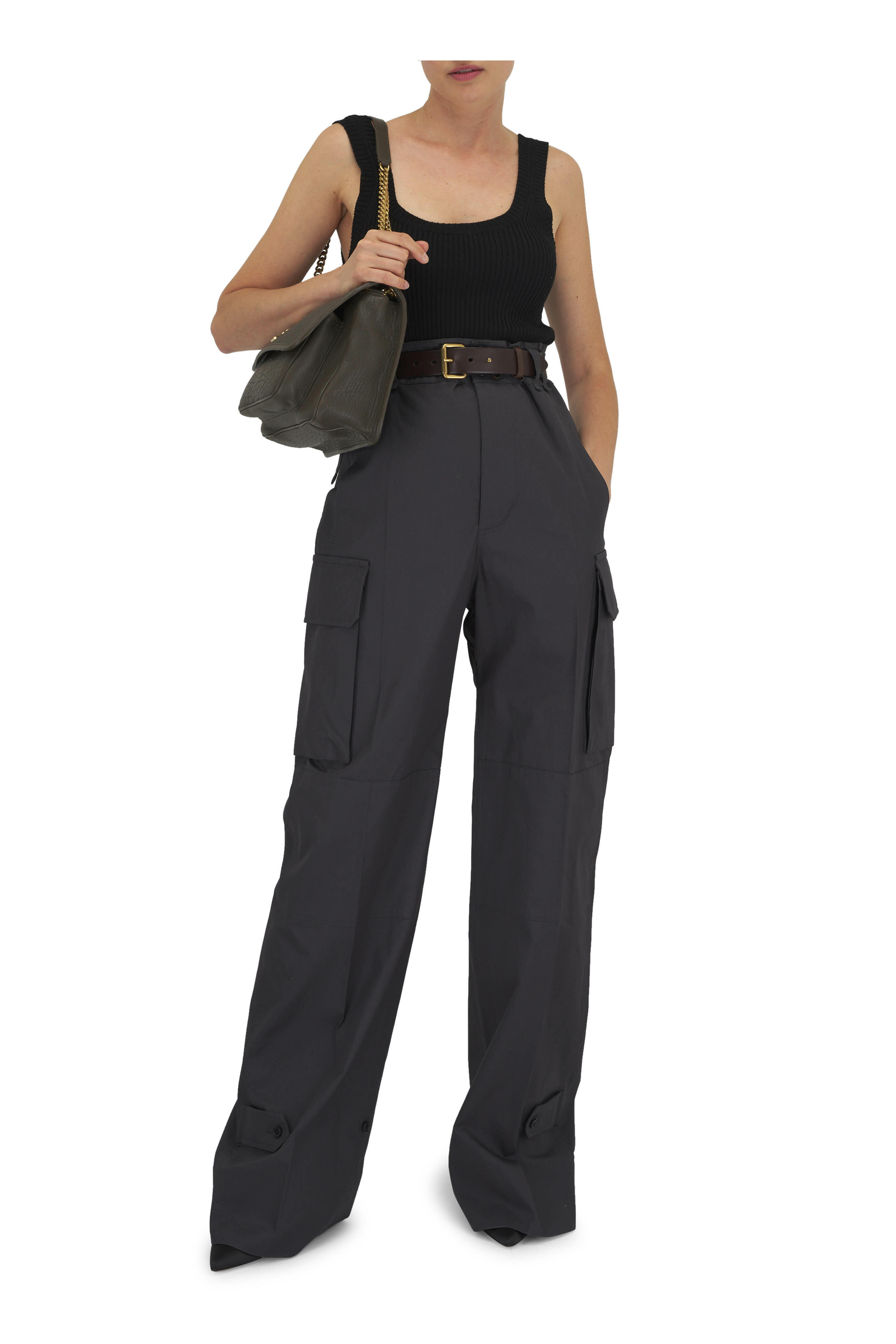 Scoop neckline. Scoop back. Ribbed knit. Imported. 23" shoulder to hem. 100% cotton. Dry clean.