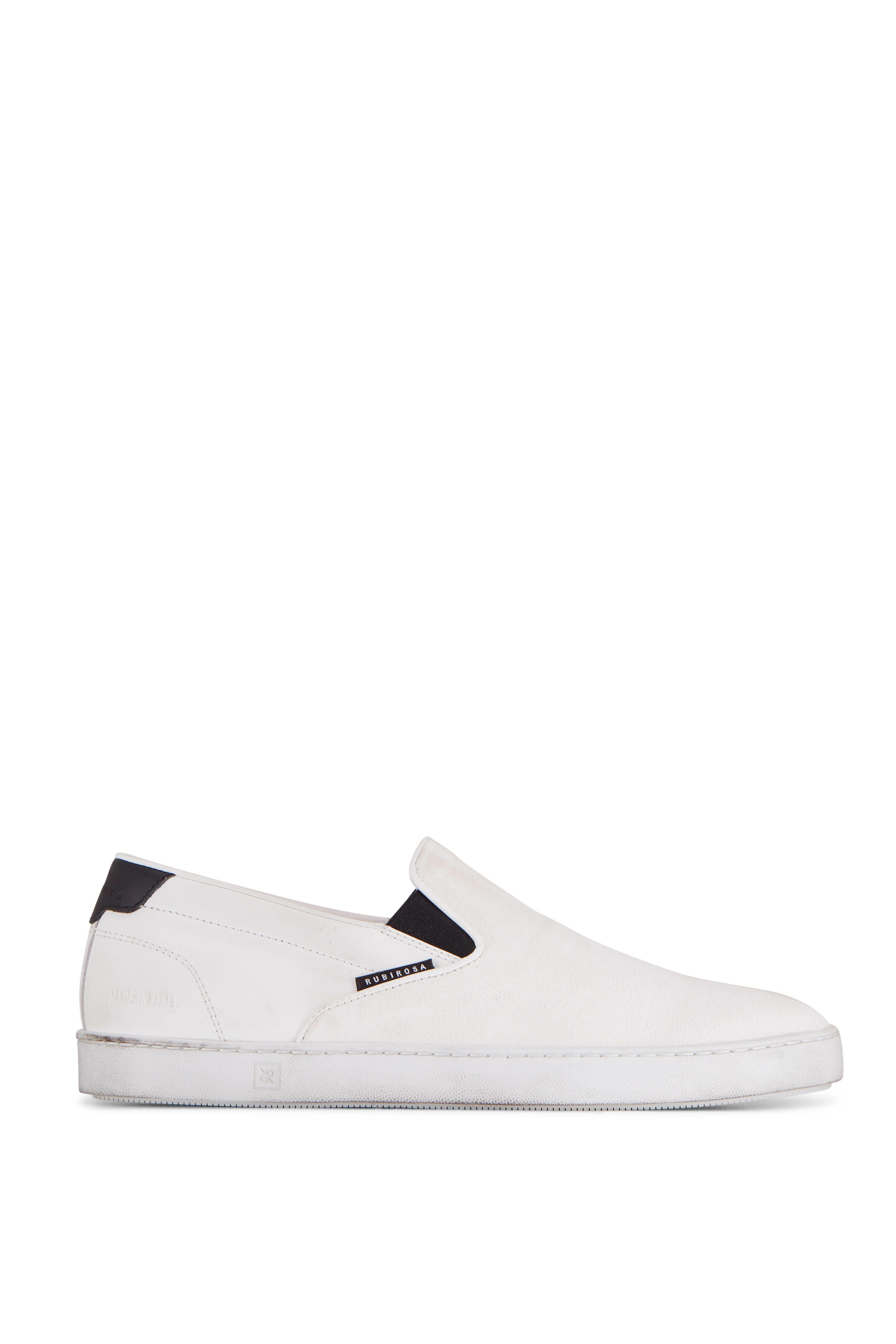 Suede and leather upper. Round toe. Slip on style. Cotton lining and suede insole. Rubber sole. Made in Italy.
