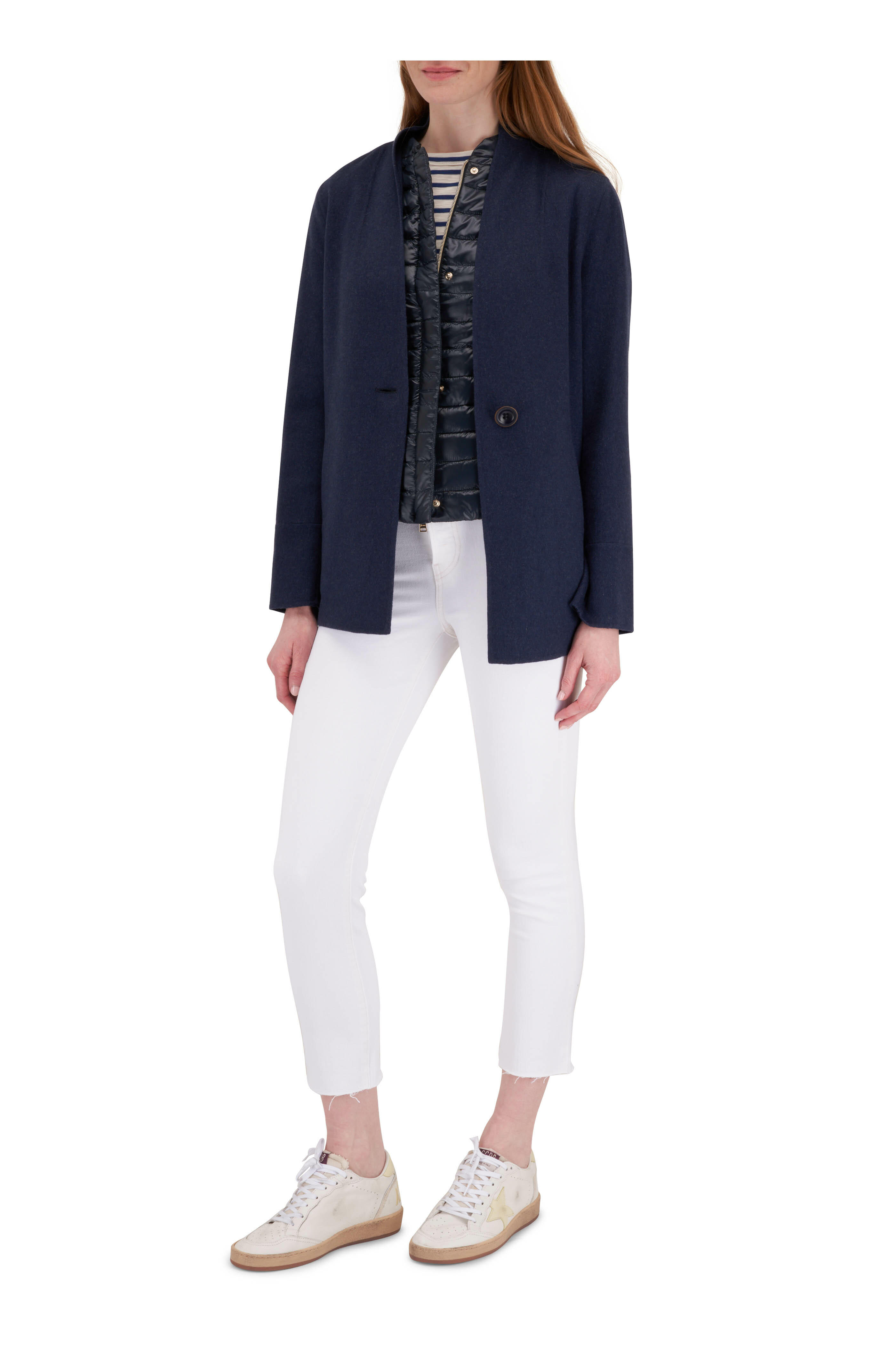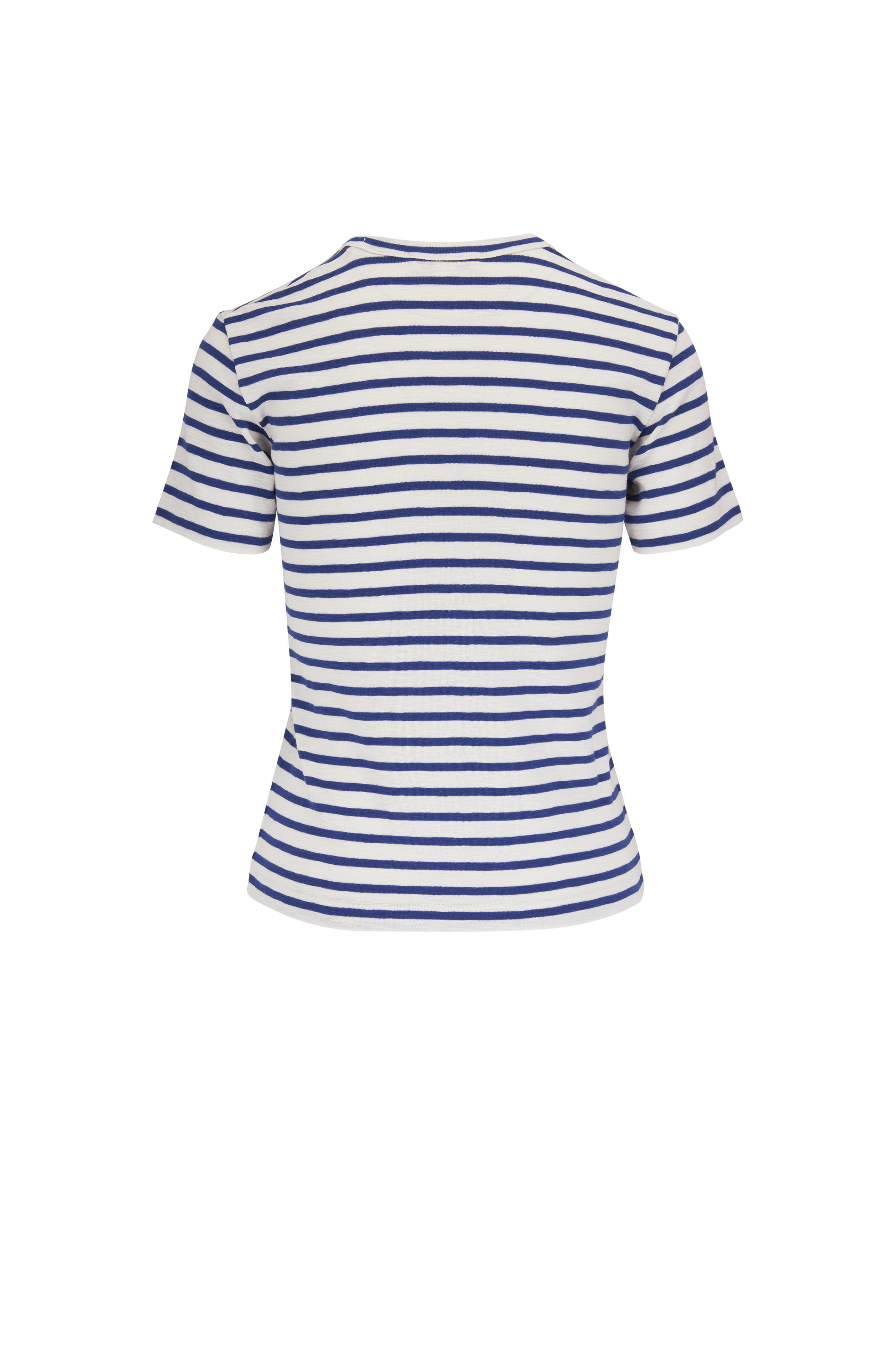 • Vince - Blue & White Striped Short Sleeve Crewneck T-Shirt