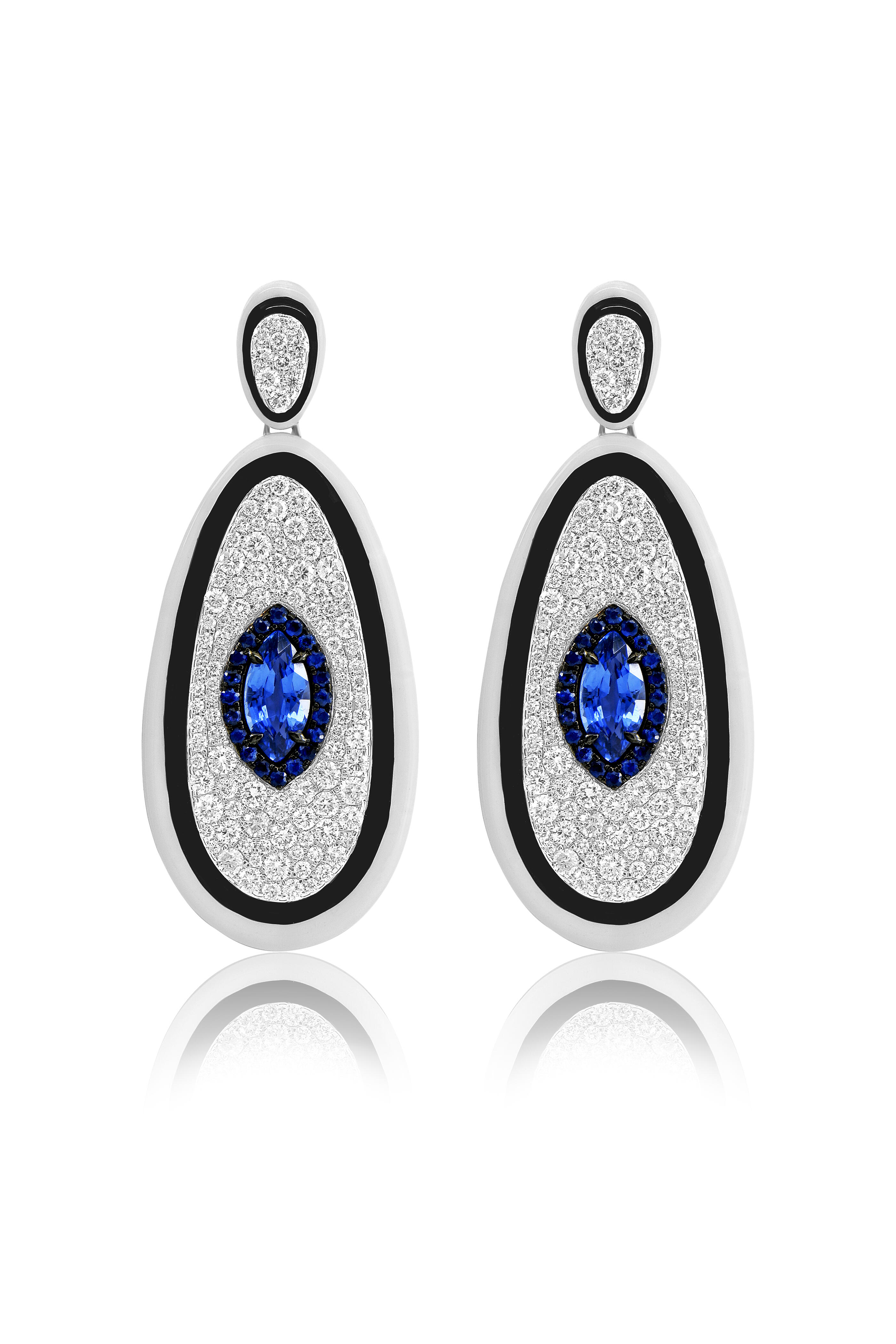 Black & White Ceramic Diamond & Sapphire Earrings