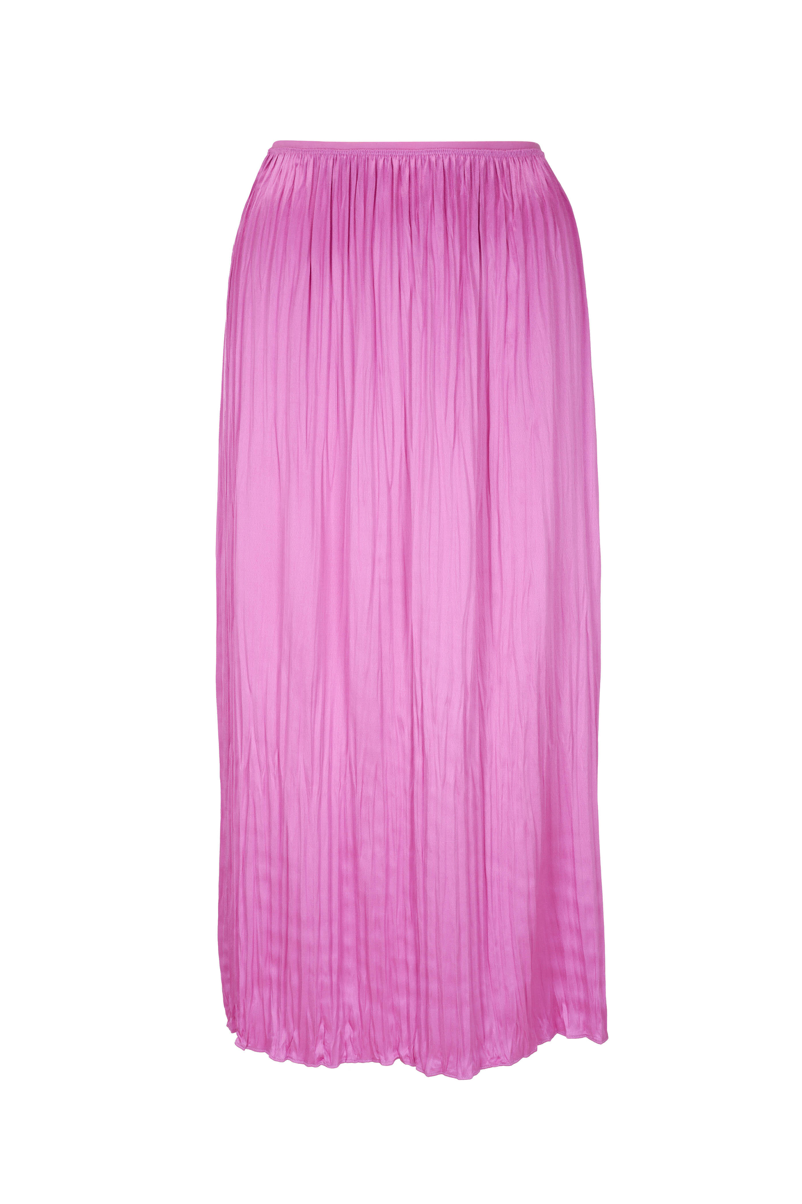 Elasticized waist. Slip on style. Pleated detailing. Ruffle hem. Imported. 34" length. 60% viscose, 40% lenzing ecovero viscose. Dry clean.