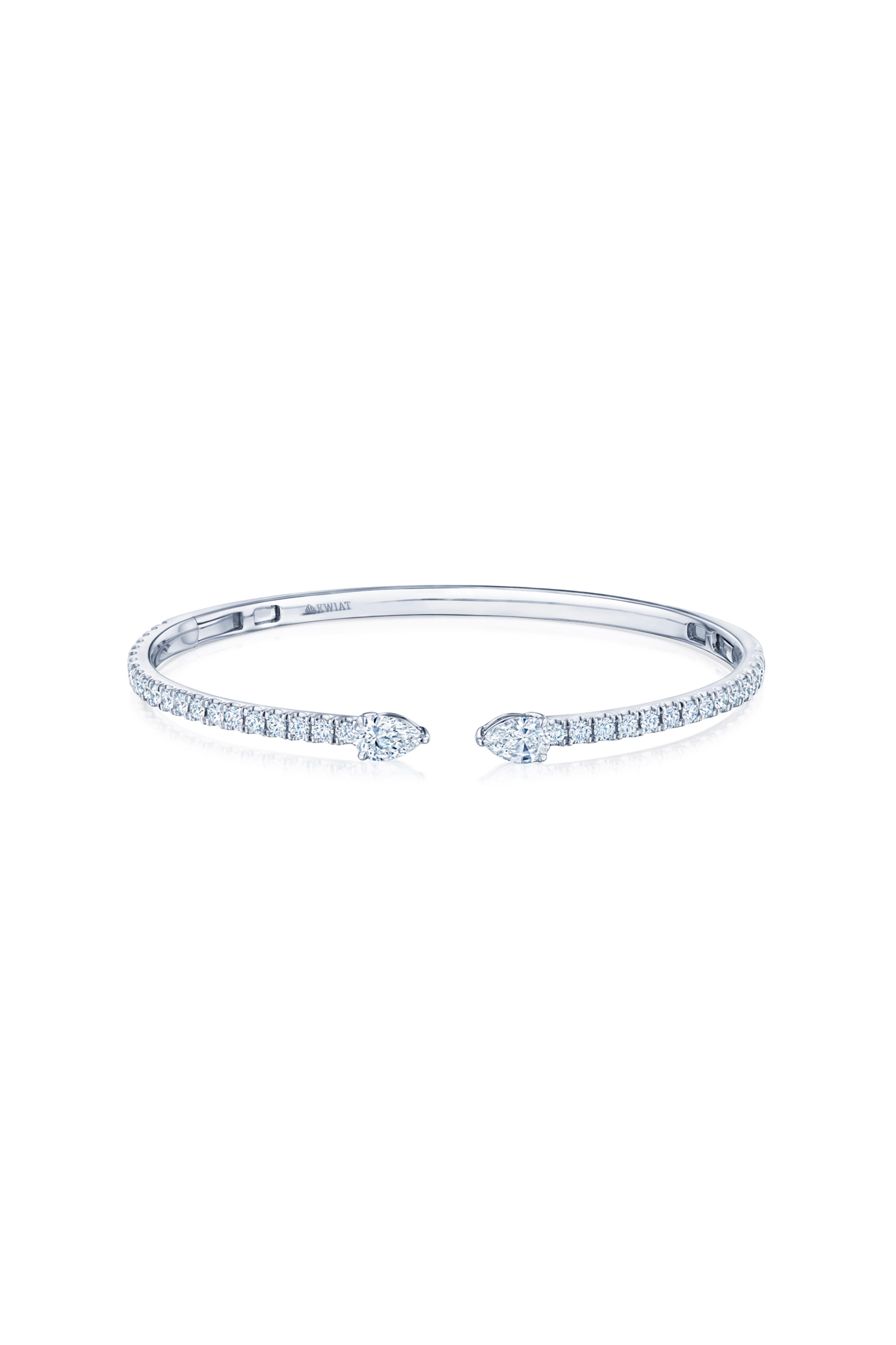 The Duet Collection. 18K White Gold. Pear Shaped & Round-Cut Brilliant White Diamonds: 2.25CT. Color: G-H. Clarity: VS2-SI1. Measures: 3.2mm Wide x 6.75" Diameter.