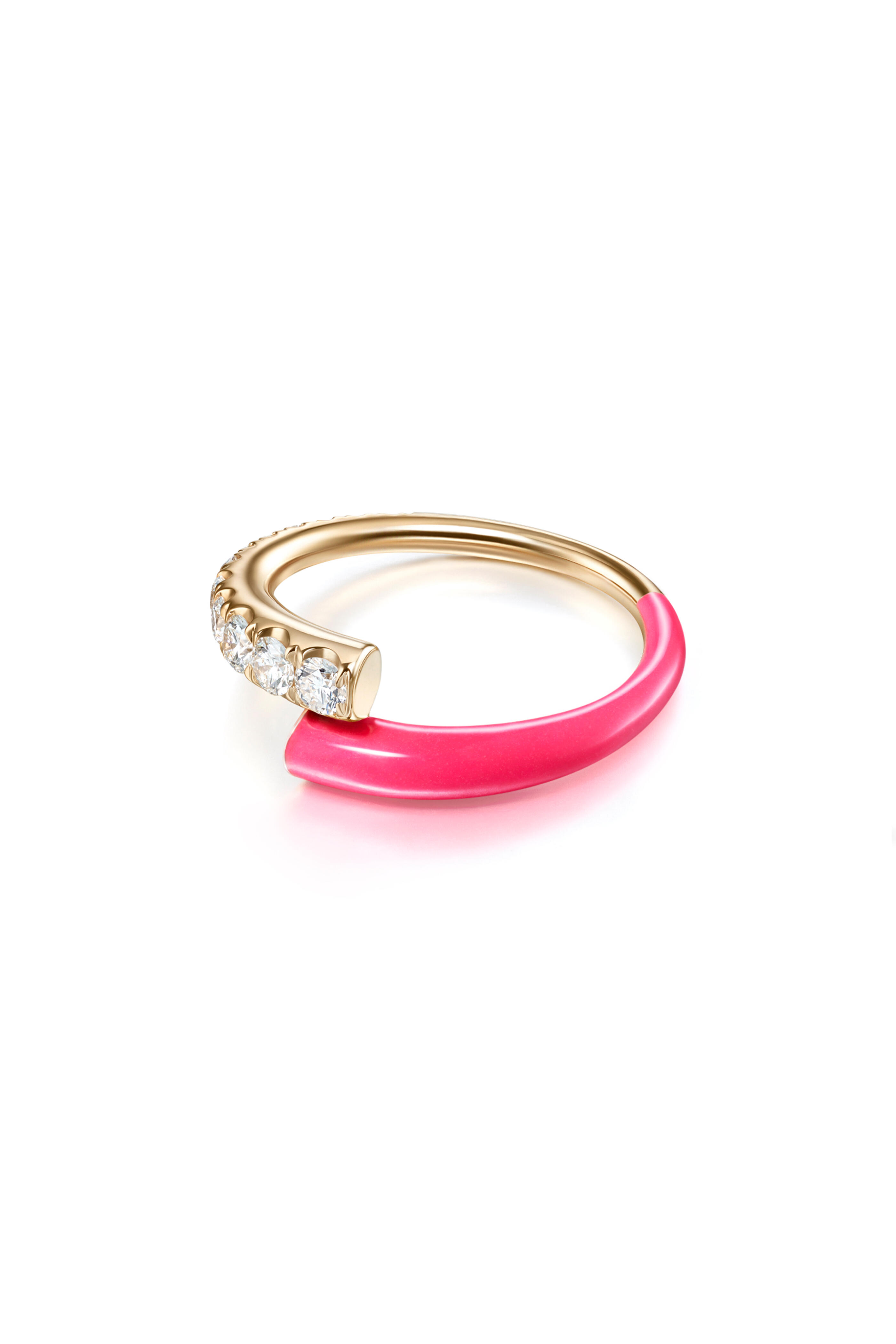 18k yellow gold. .53 carat diamonds. Pink enamel.