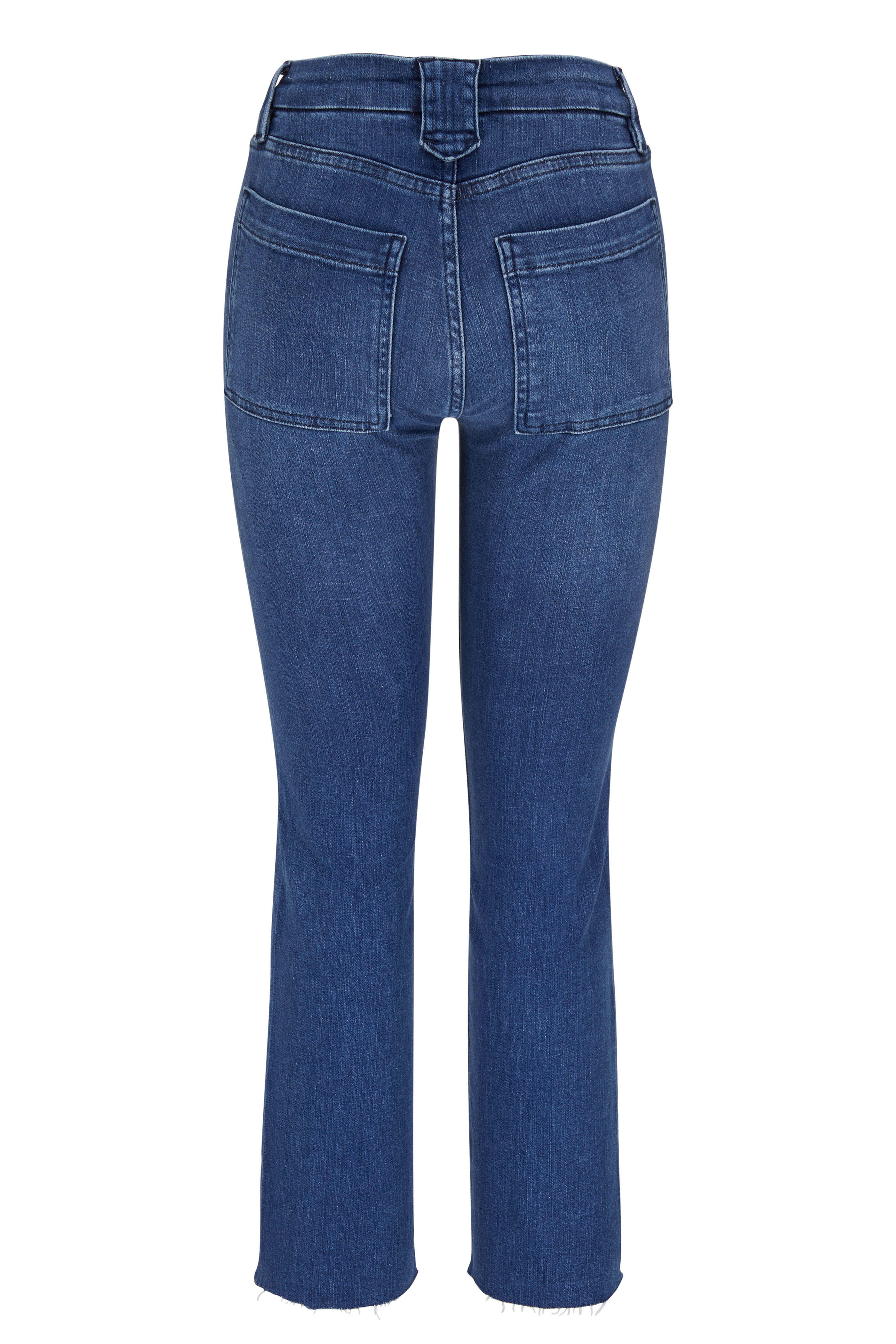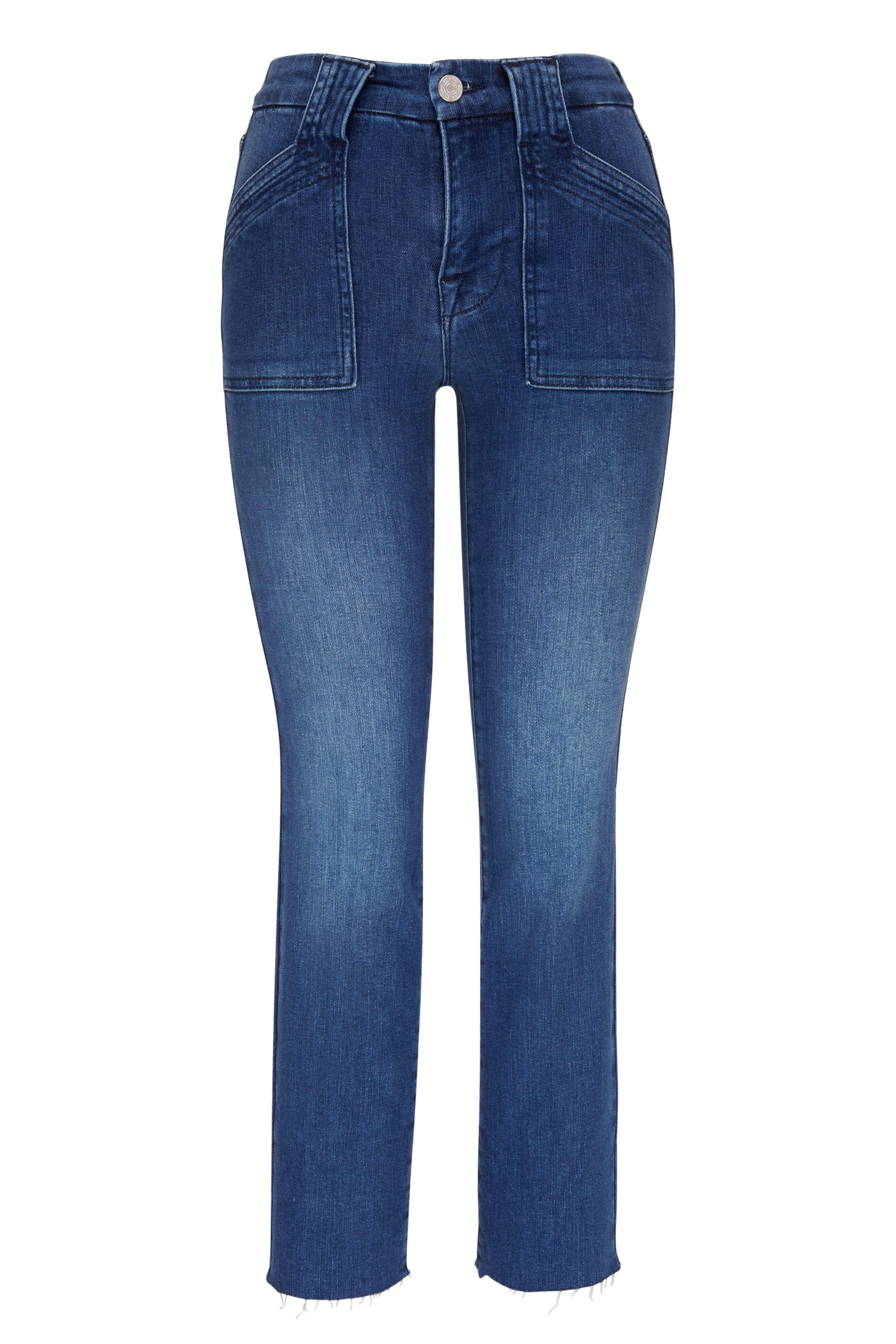 Zip fly with button. Cargo pockets. Raw edge hem. Imported. High-rise. Straight leg. 77% cotton, 18.5% modal, 3.5% elastane. Machine wash. Wash: Aurora.