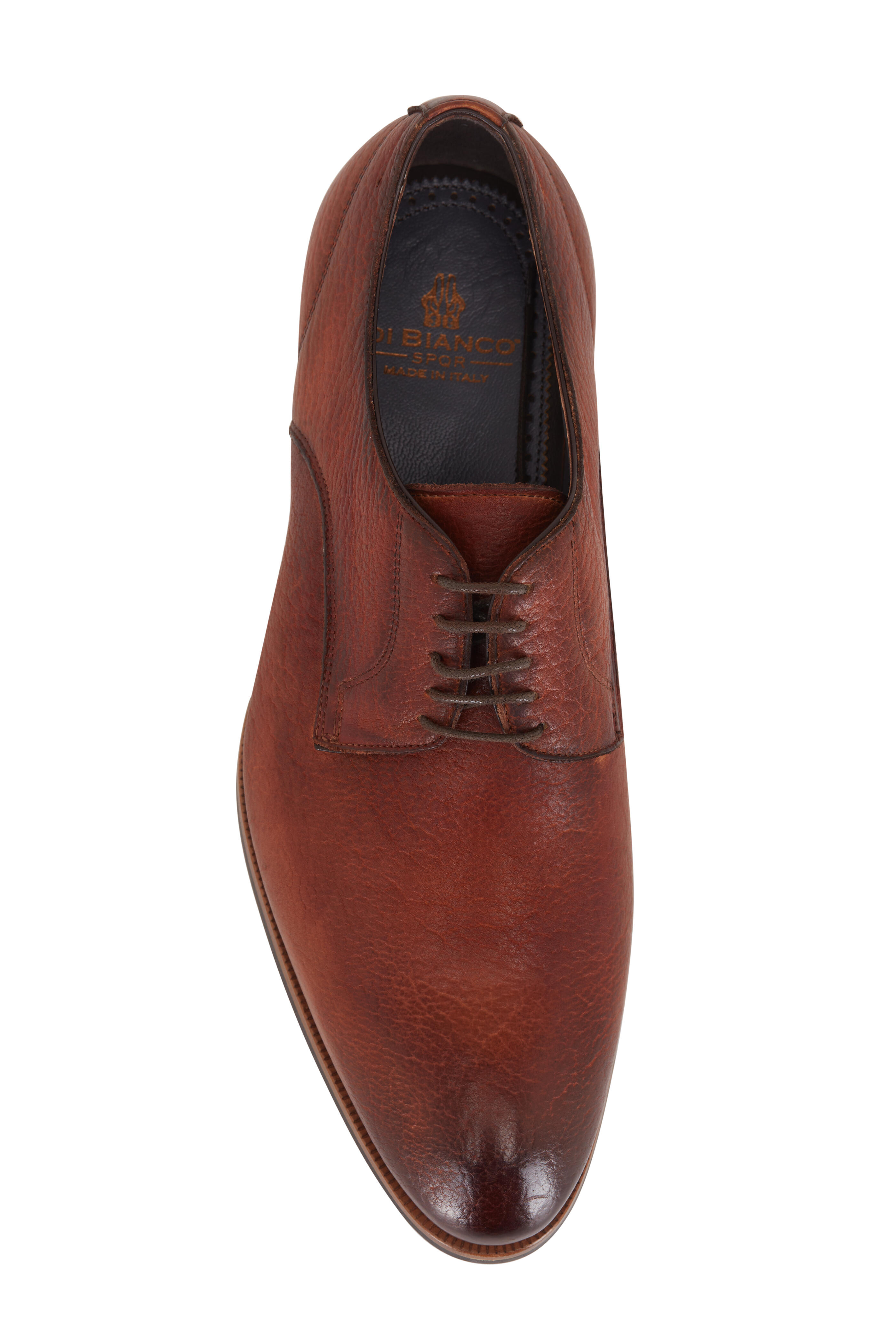 Grained leather upper. Tapered toe. Lace up closure. Stacked heel. Leather lining and insole. Leather sole. Made in Italy.