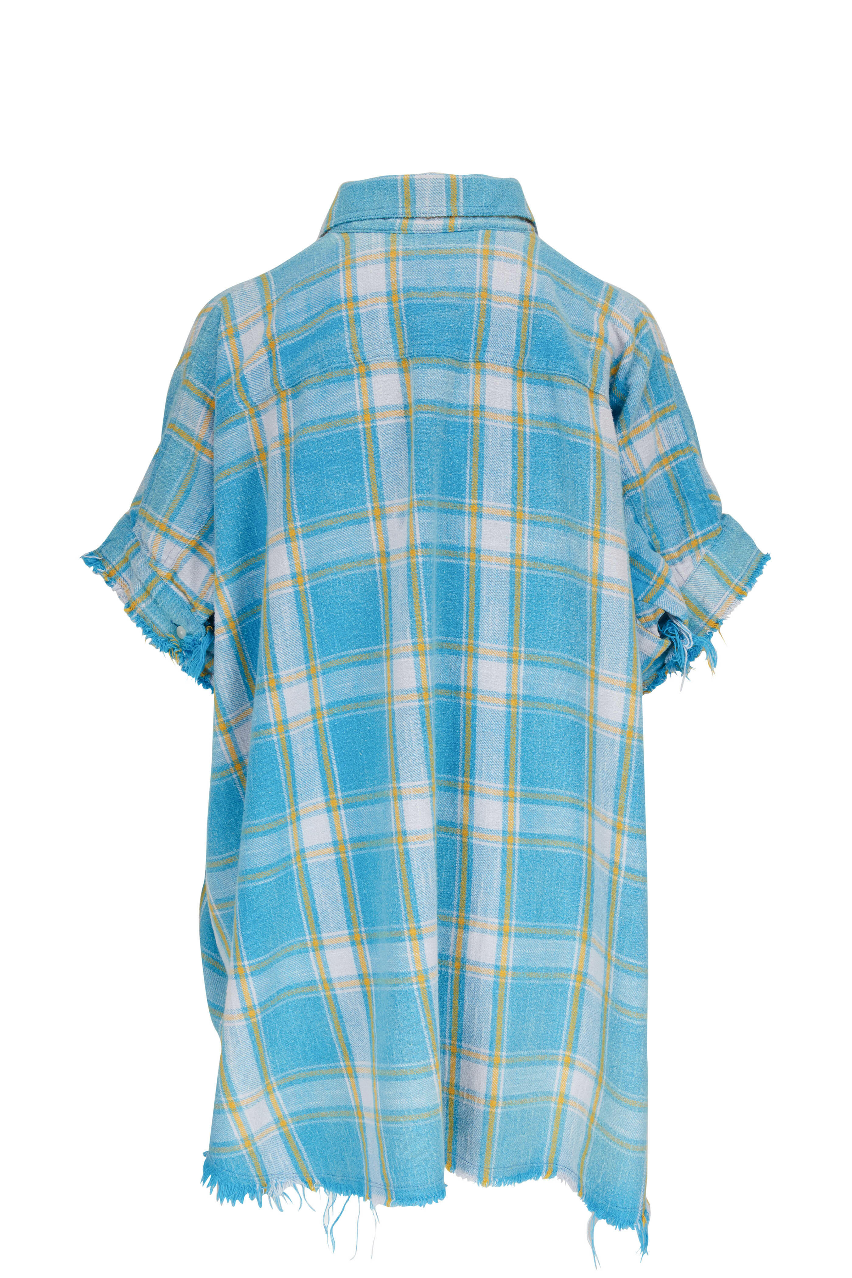 Light Blue Plaid Sleeveless Boxy Button Down Shirt