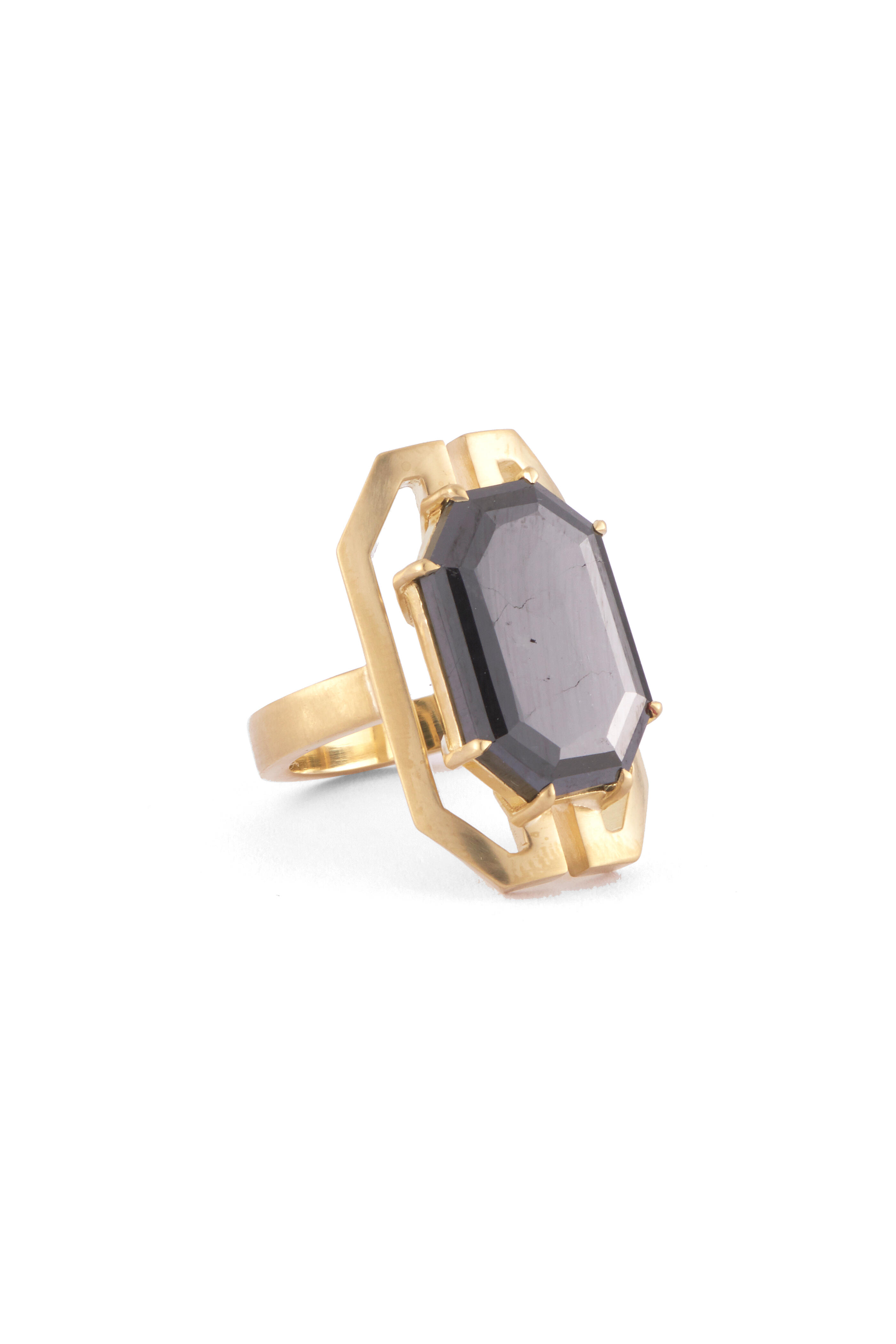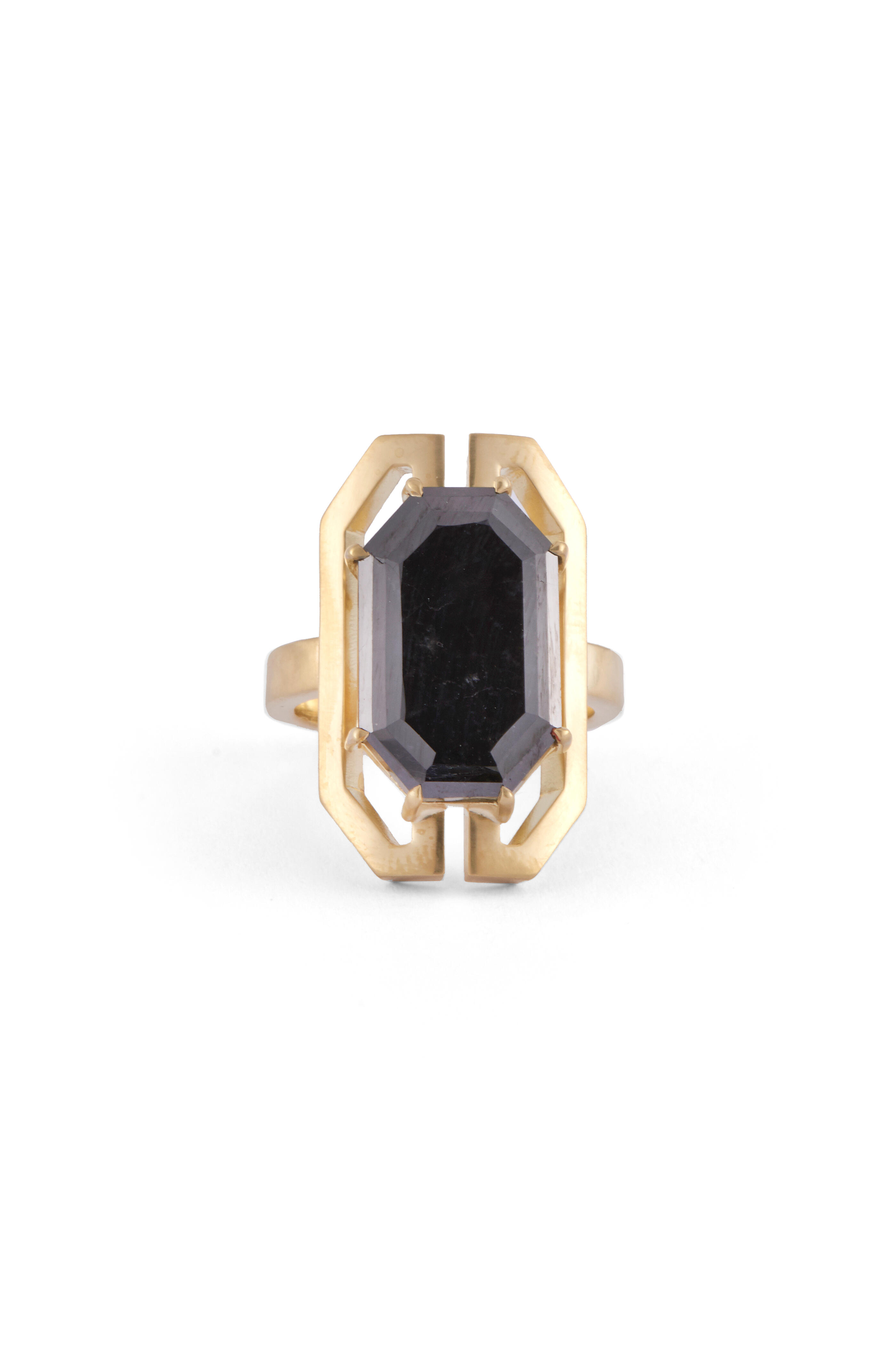 18k yellow gold. 8.07 carat black diamond. Size 7.5.
