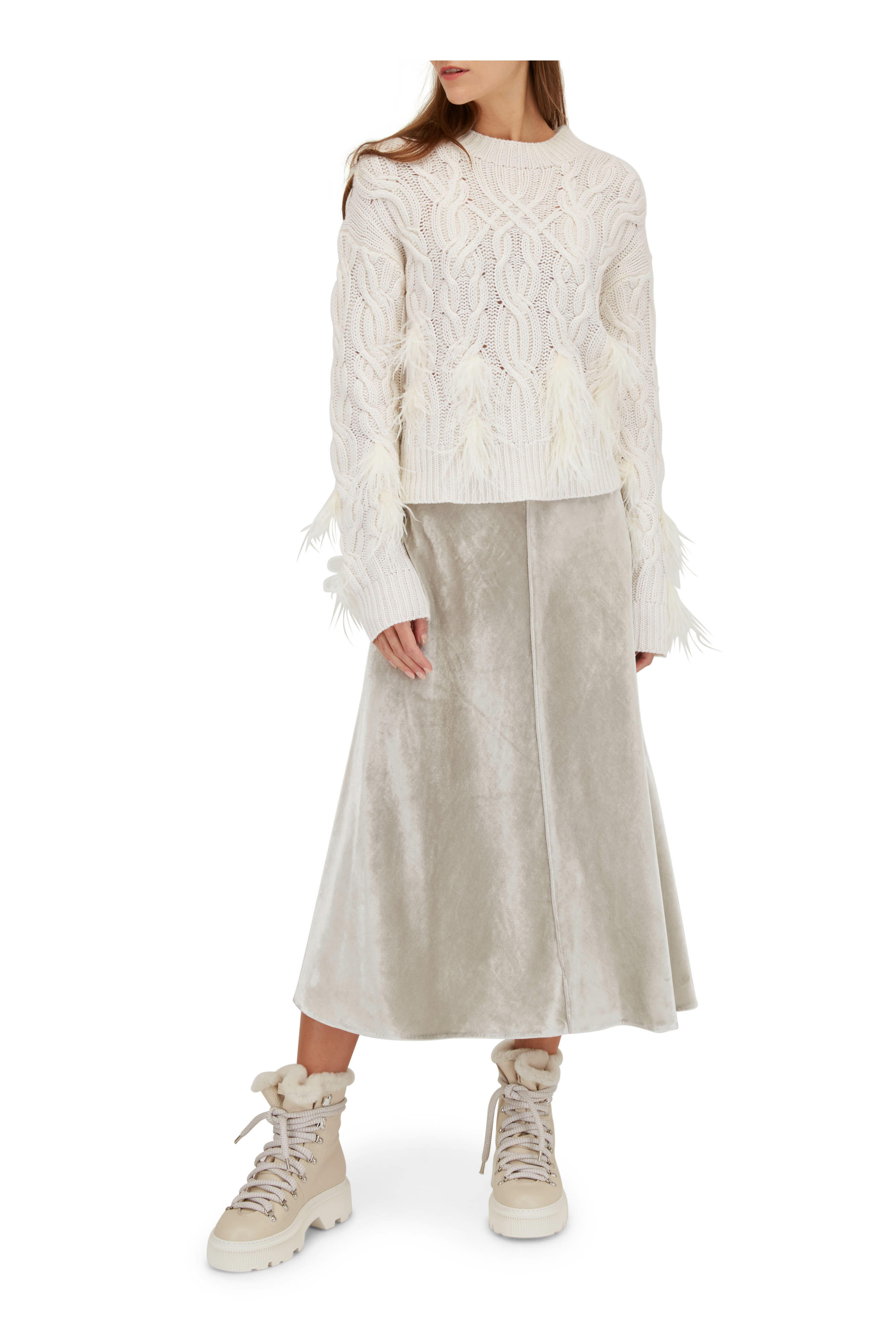 Leather upper. Round toe. Lace-up closure. Shearling lining and insole (Turkey). Rubber lug sole. Made in Italy. Approx. 1.5" heel.