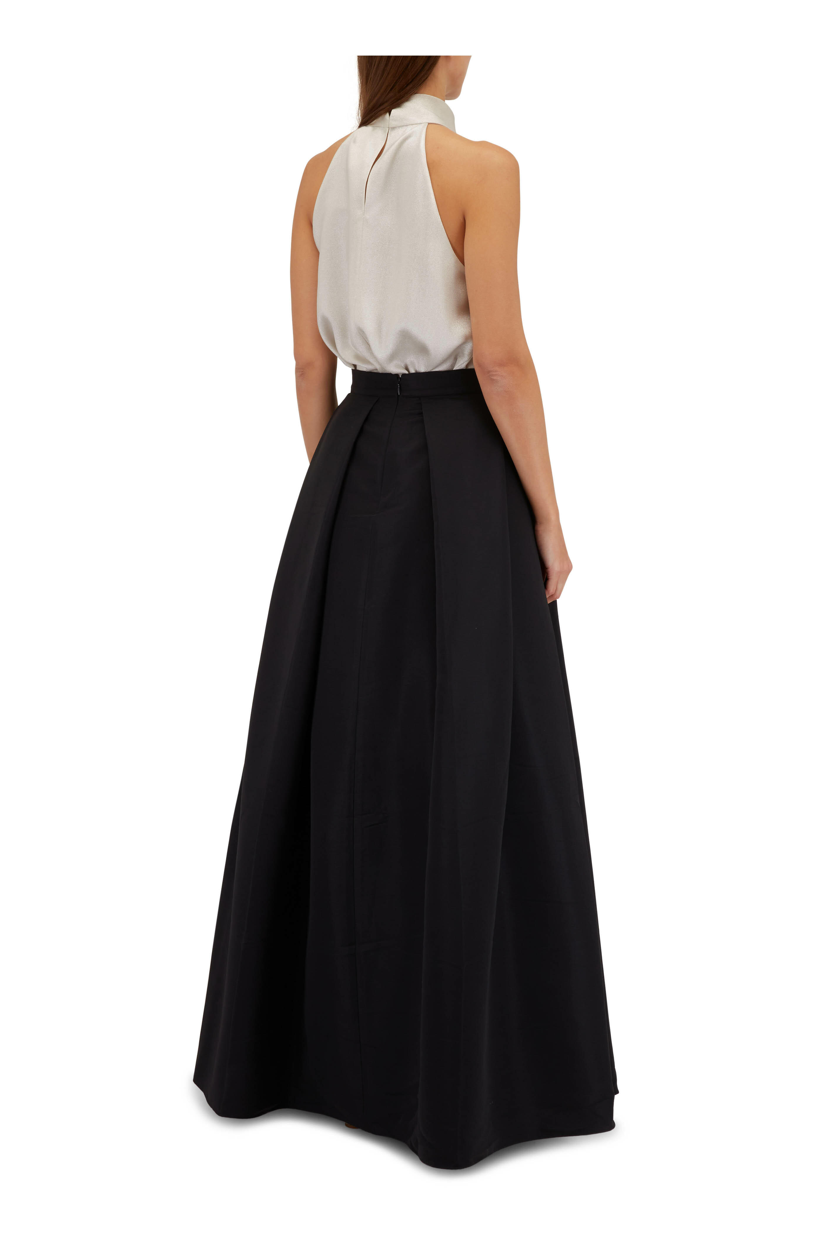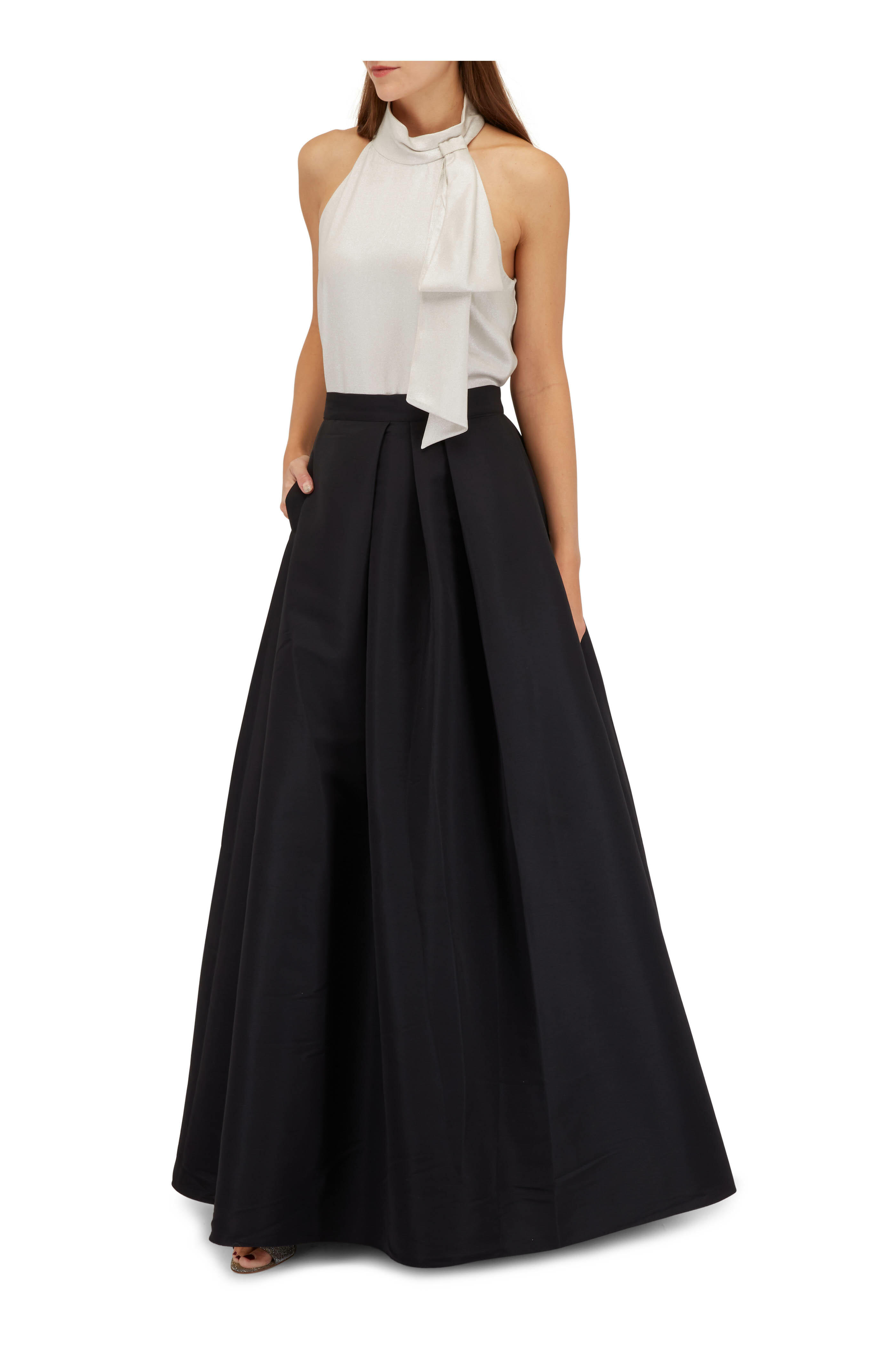 Banded waist. Side zip closure. On-seam side pockets. Box pleats at waist. Imported. 46.5" length. 100% polyester. Dry clean.