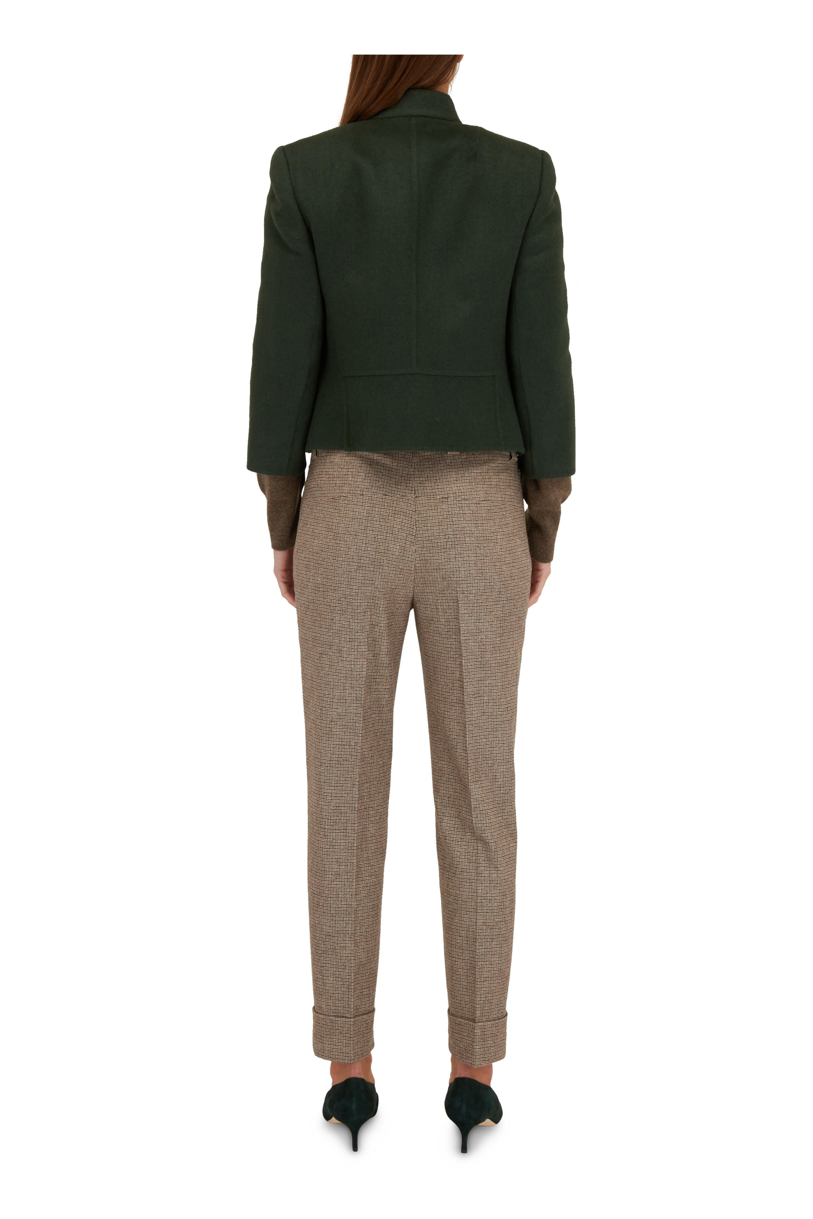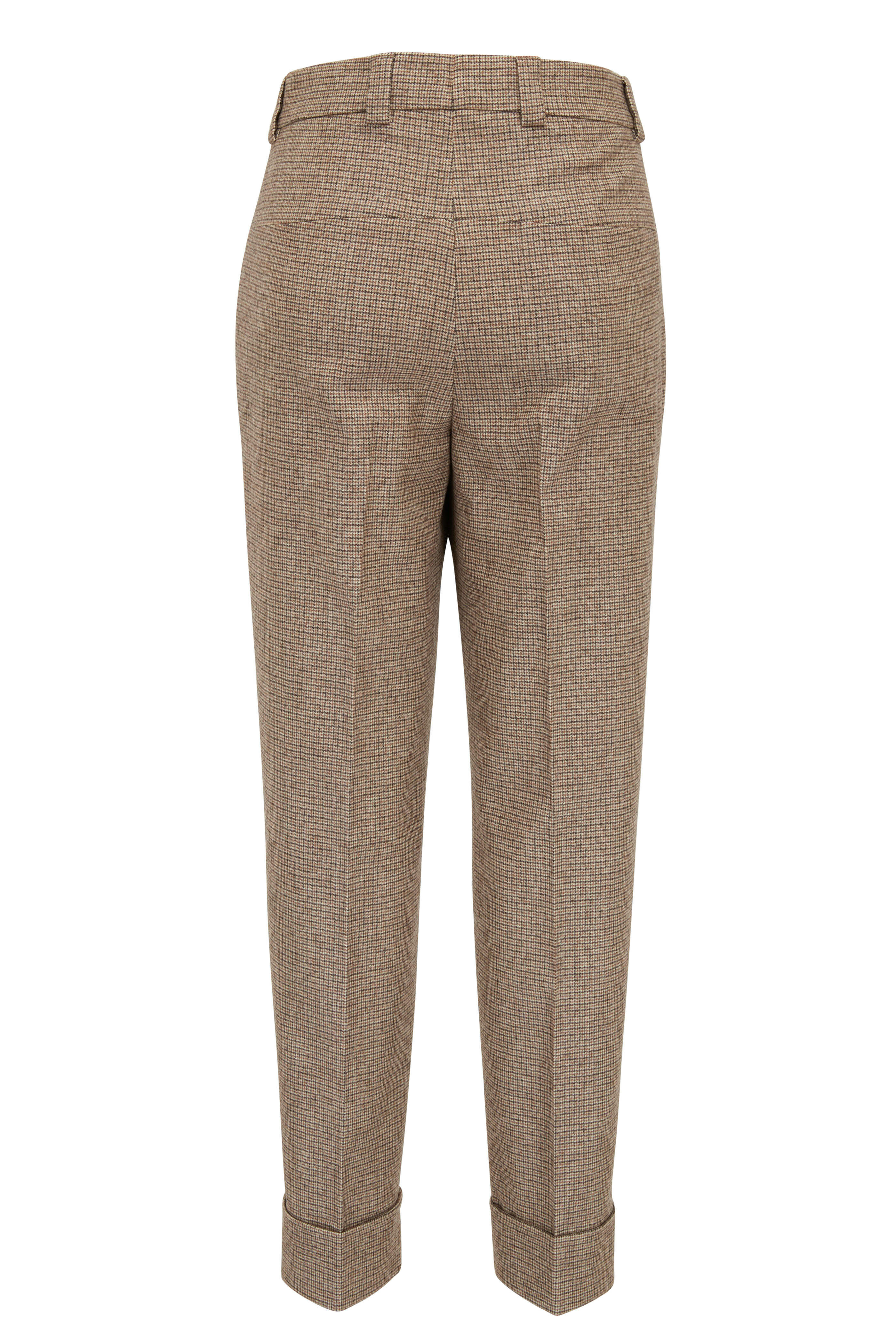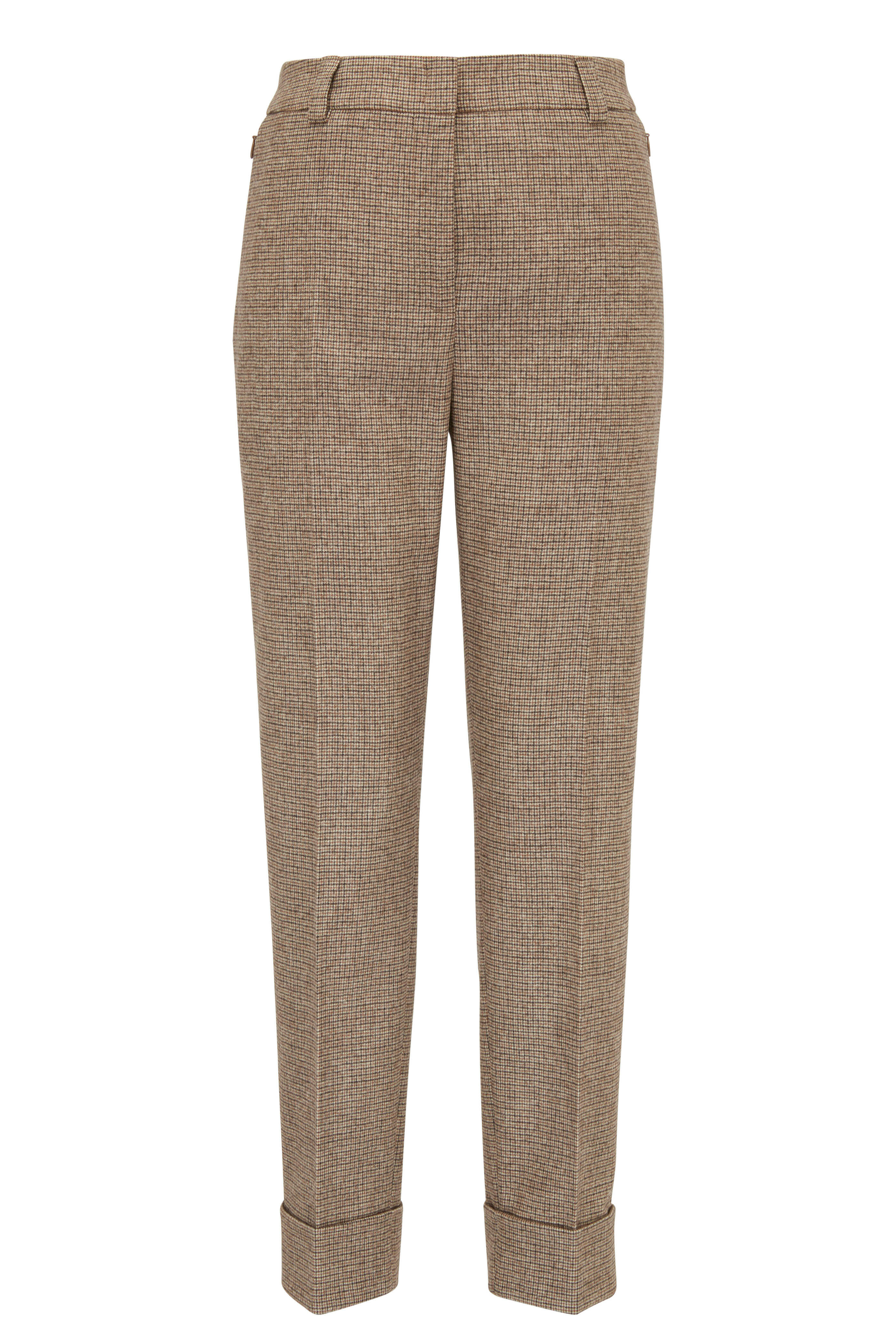 Banded waist; belt loops. Front zip; hook and bar closure. Front concealed zip pockets. Folded cuffs. Imported with Italian fabric. 27.5" inseam. 100% wool. Dry clean.