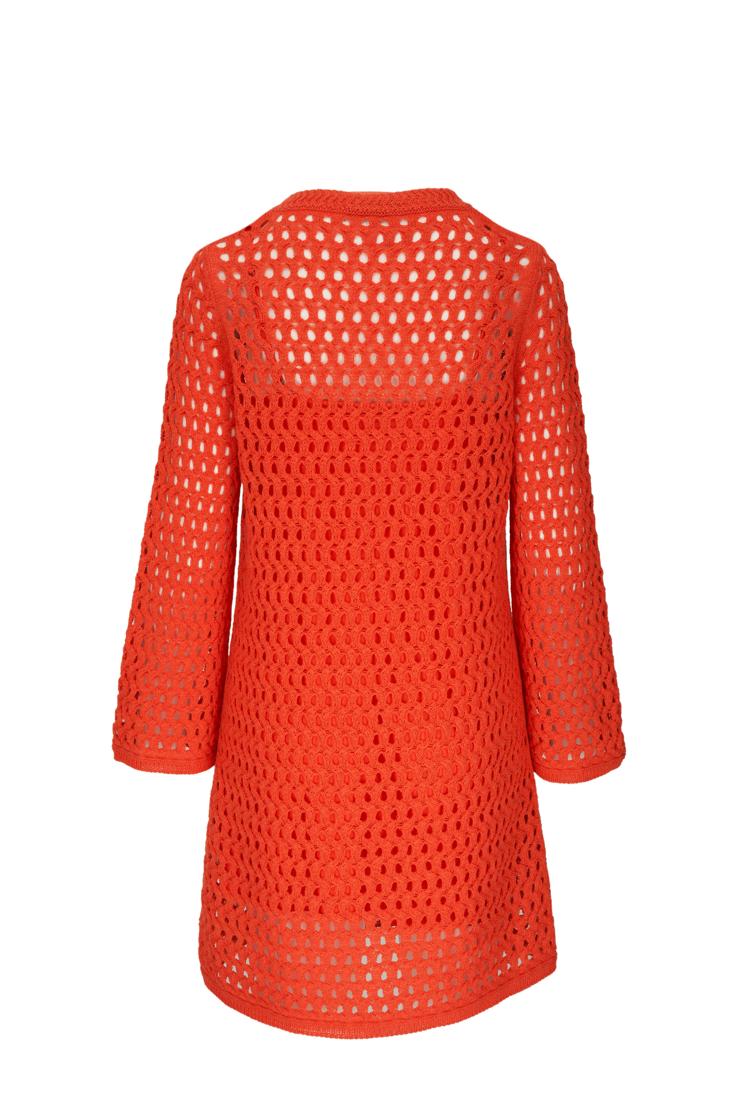 Round neckline; front slit. Slip over style. Flared long sleeves. Imported. 36" shoulder to hem (size L). 44% cotton, 32% wool, 24% polyamide; matching jersey slip dress lining. Hand wash.