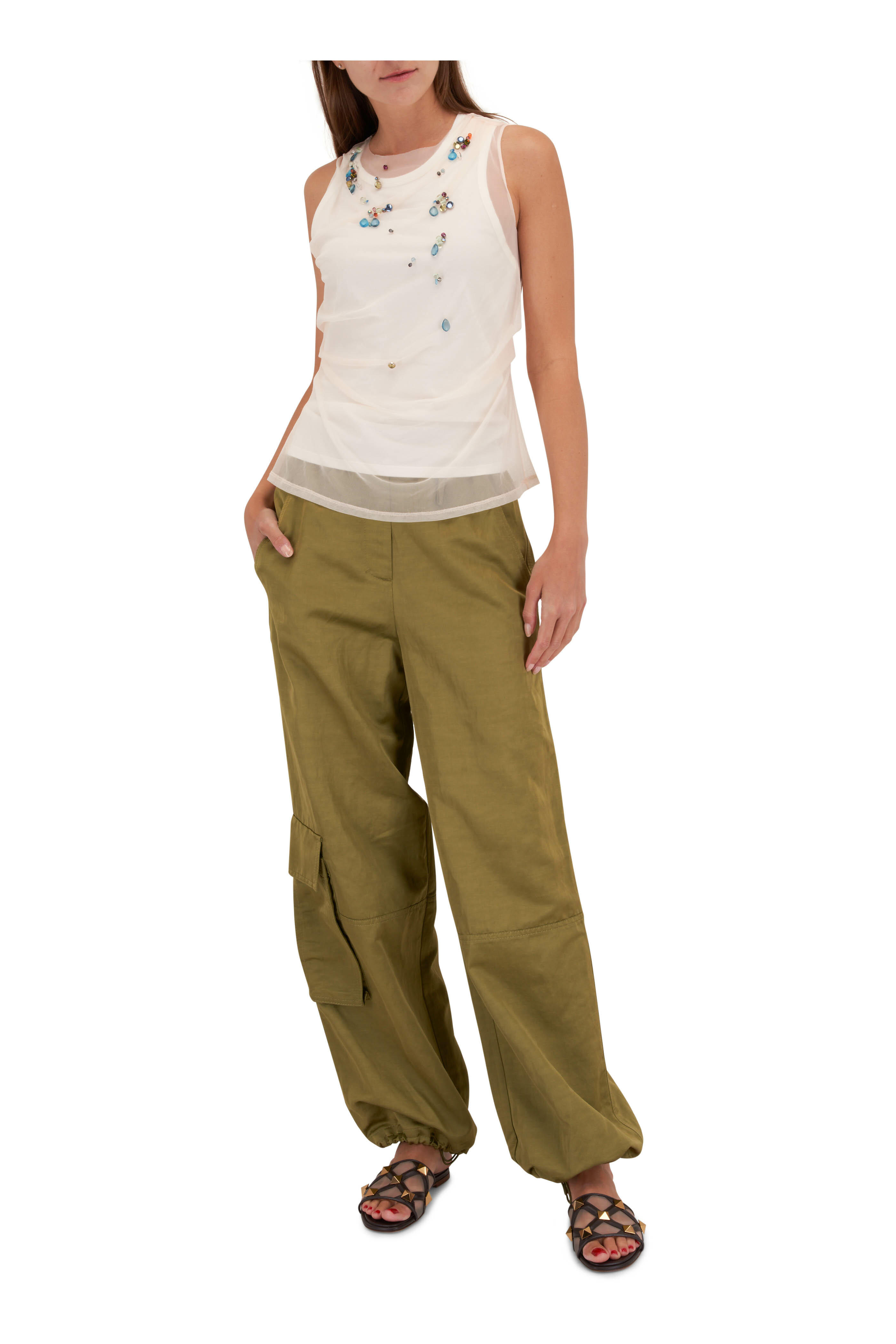 Leather and textile upper. Tapered toe. Slip-on style. Gold-tone rockstuds across vamp. Leather lining and insole. Leather sole. Made in Italy.