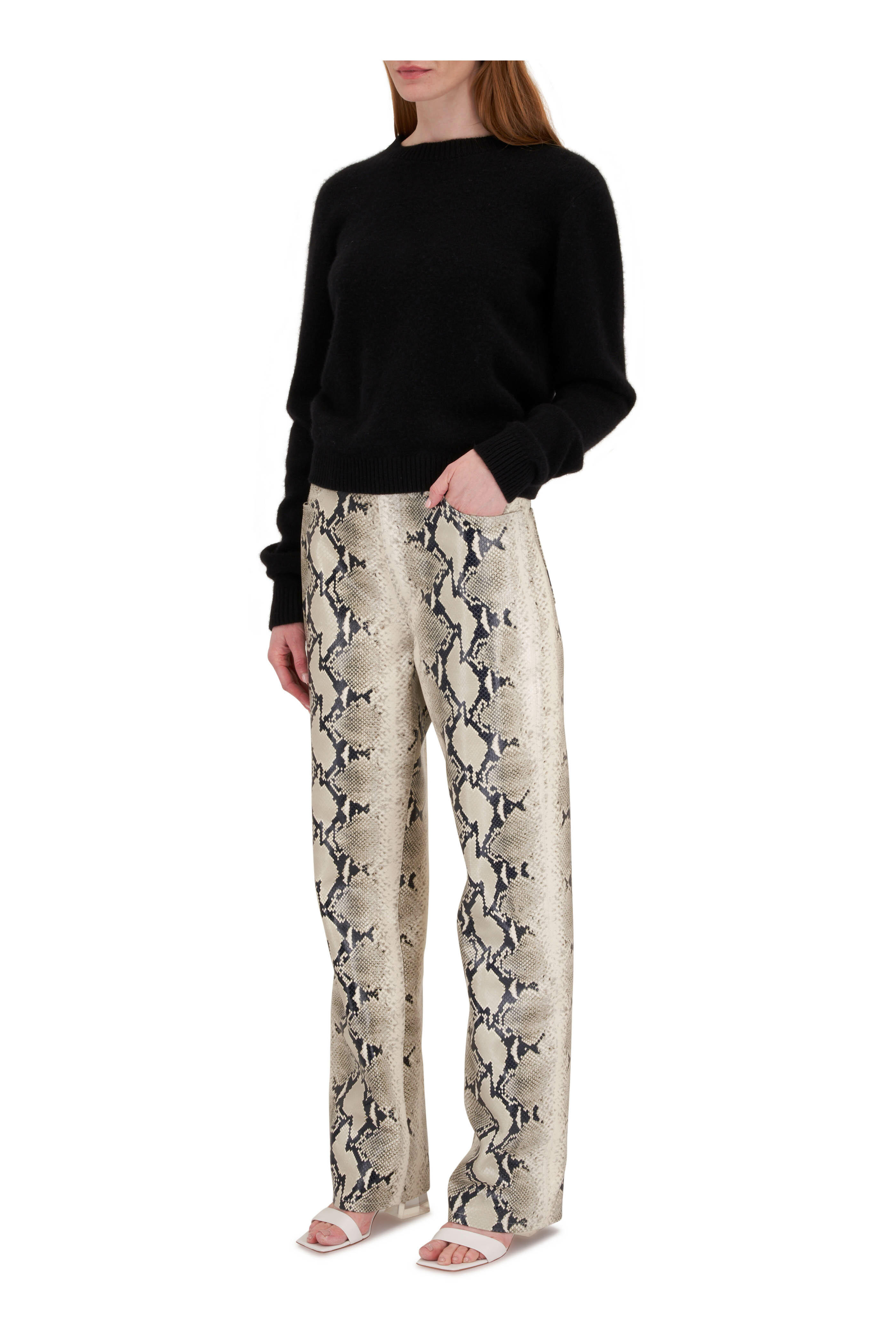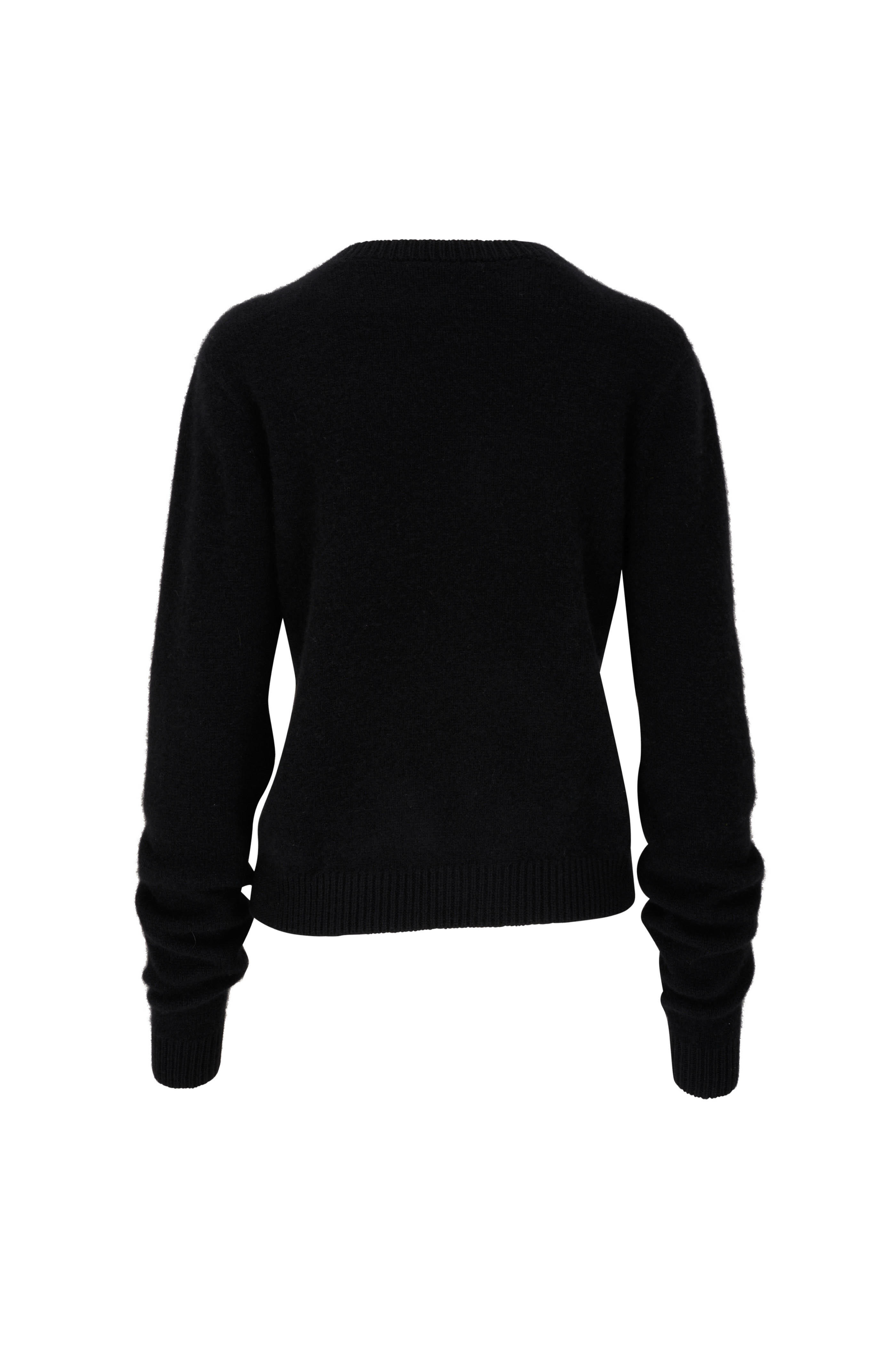 Crewneck. Ribbed trims. Made in the USA. 100% cashmere. Dry clean.