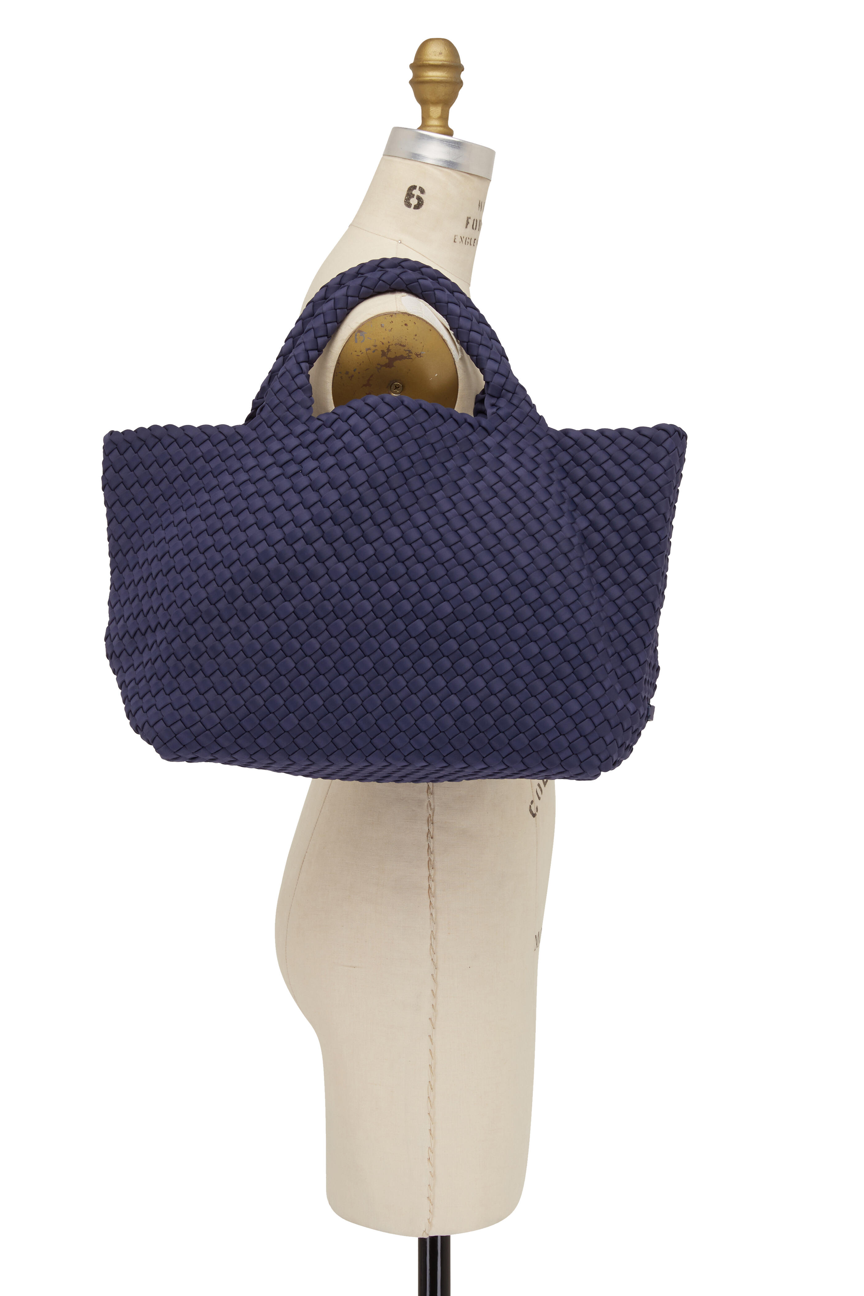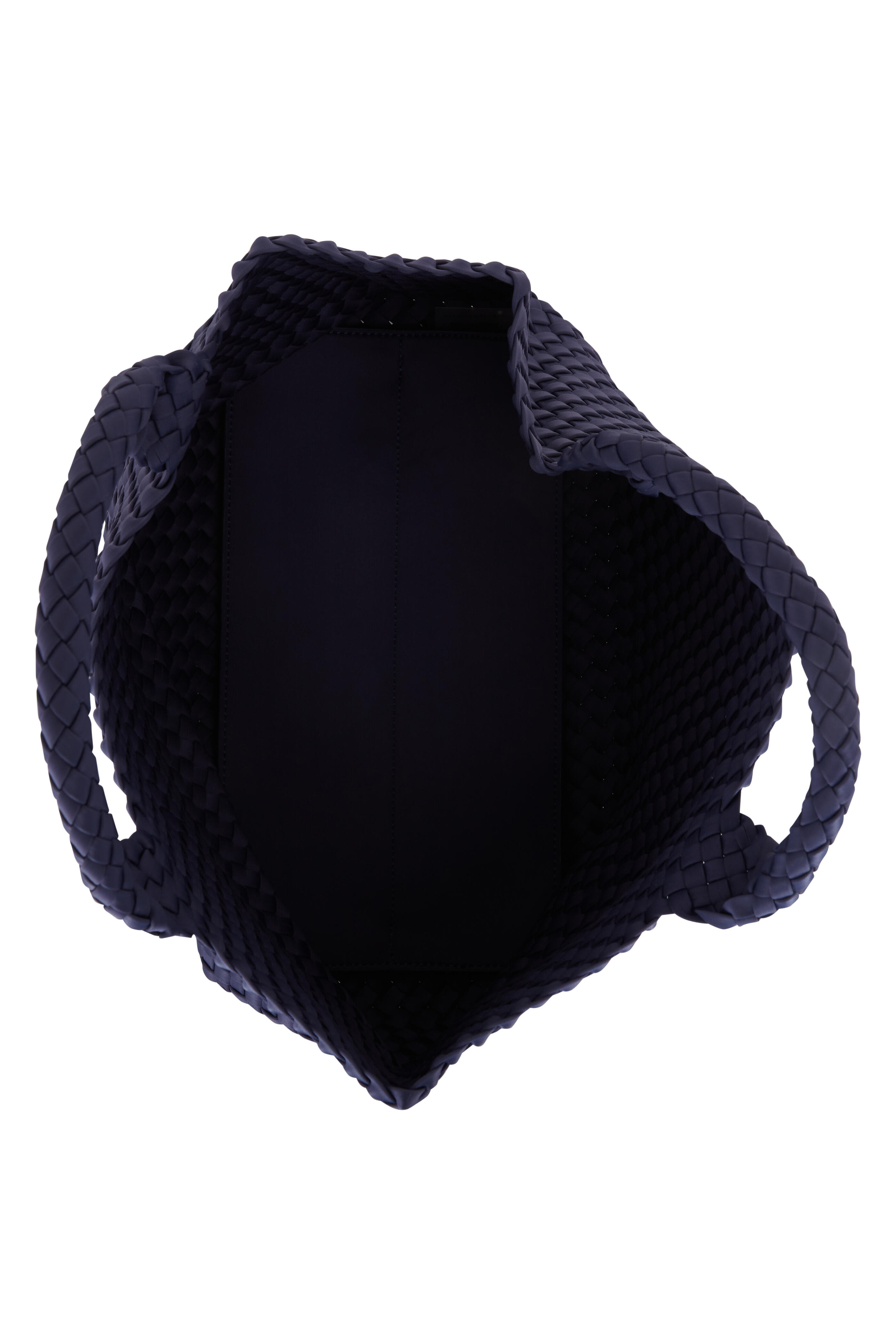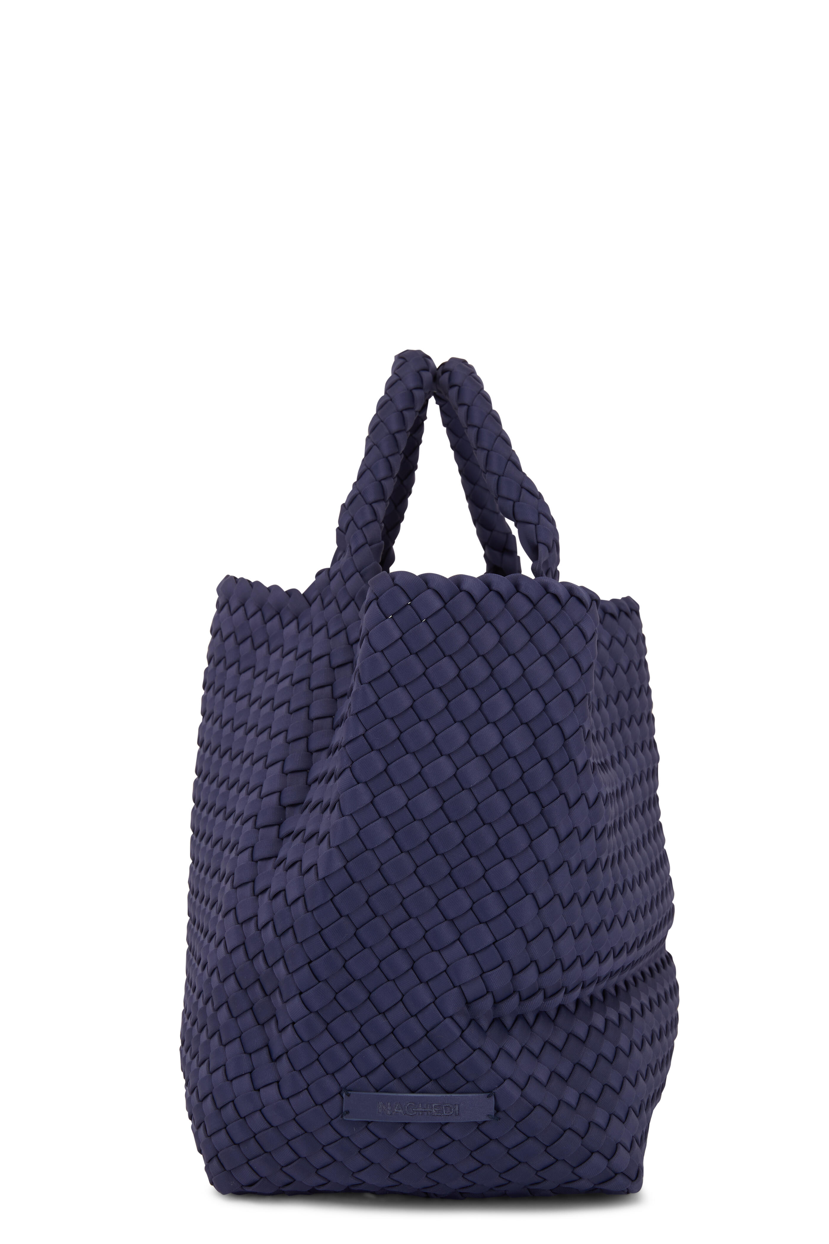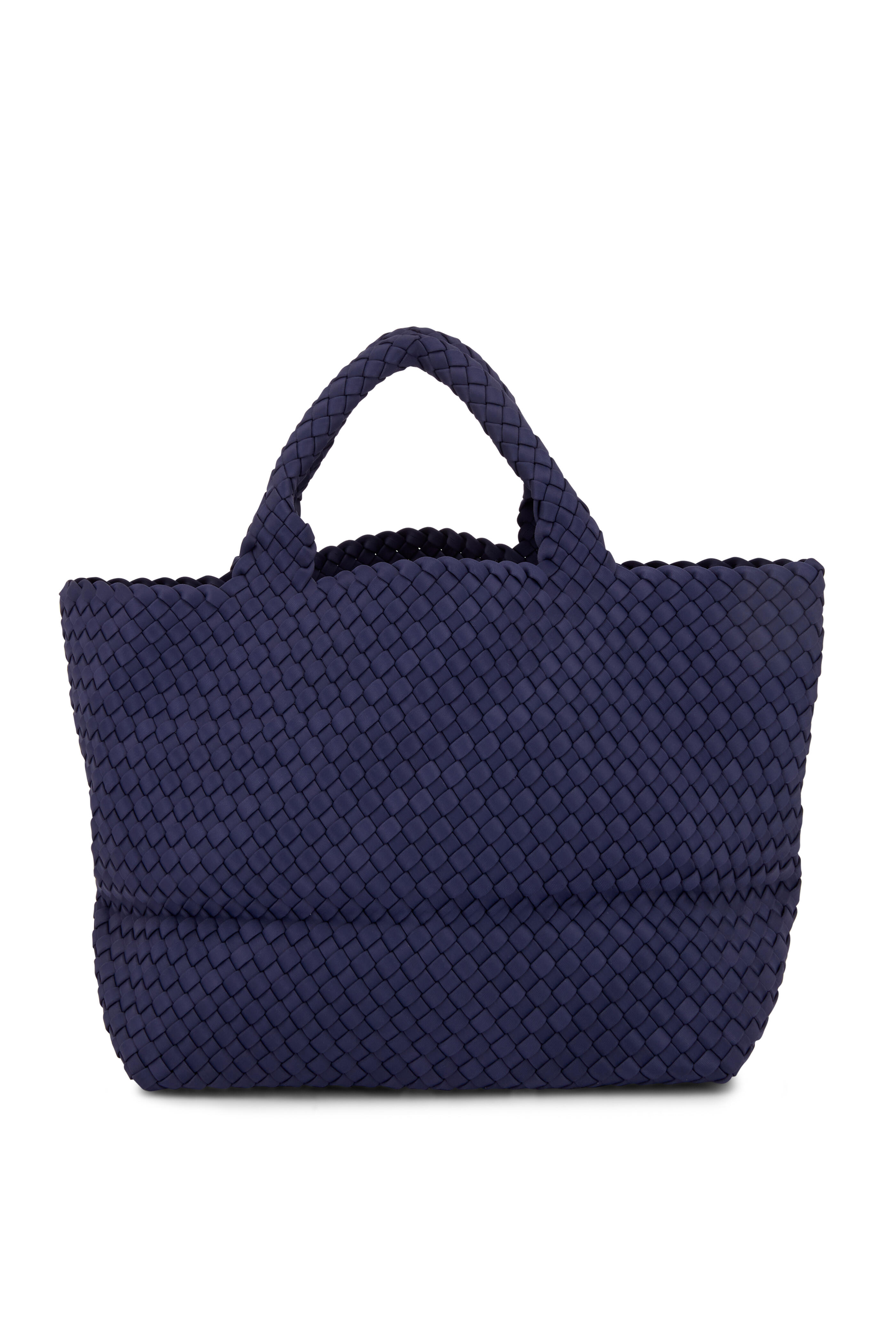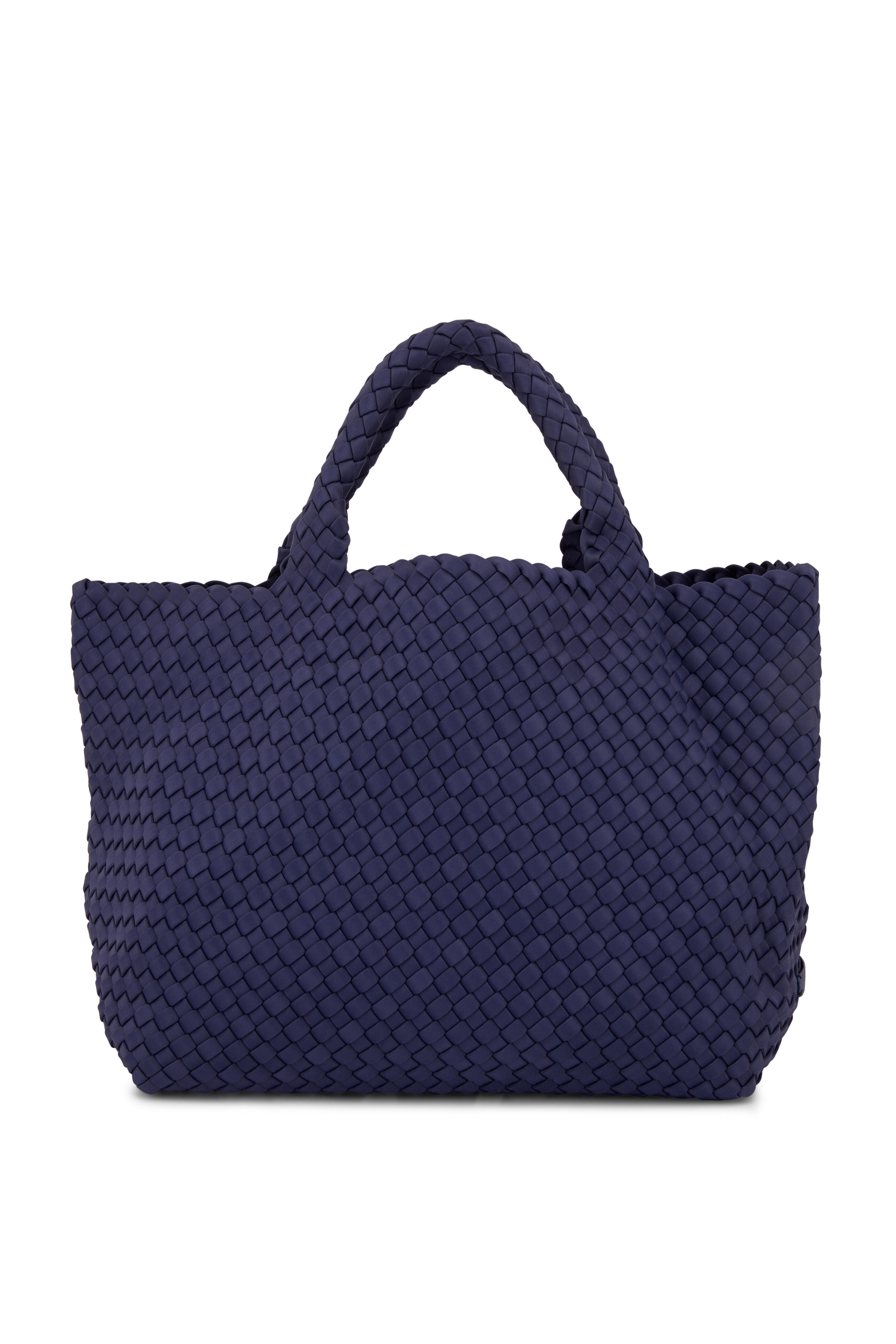 Woven neoprene. Dual top handles. Open top. Removable zip pouch. Unlined. Imported. Width: 18". Height: 10 ½". Depth: 8".