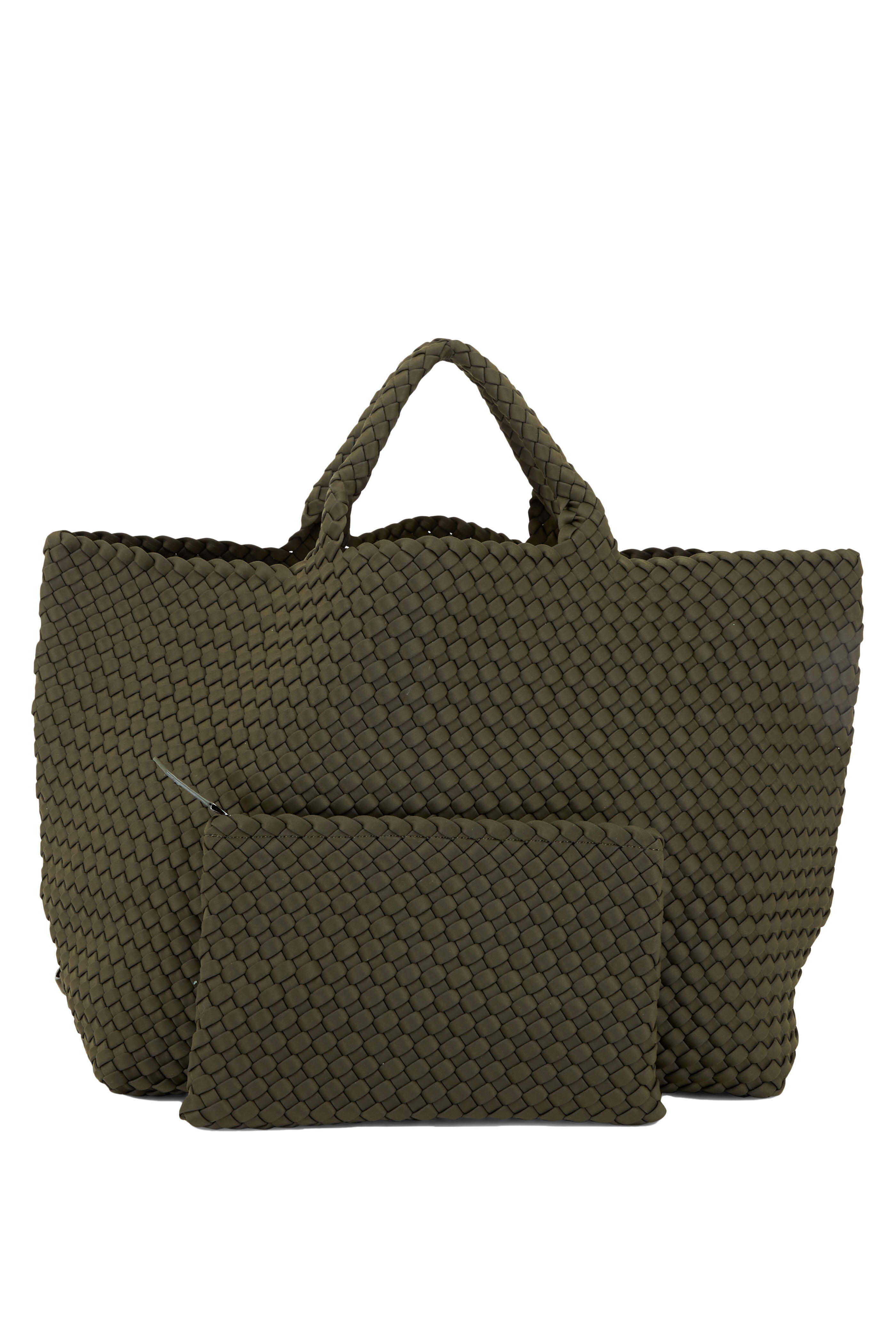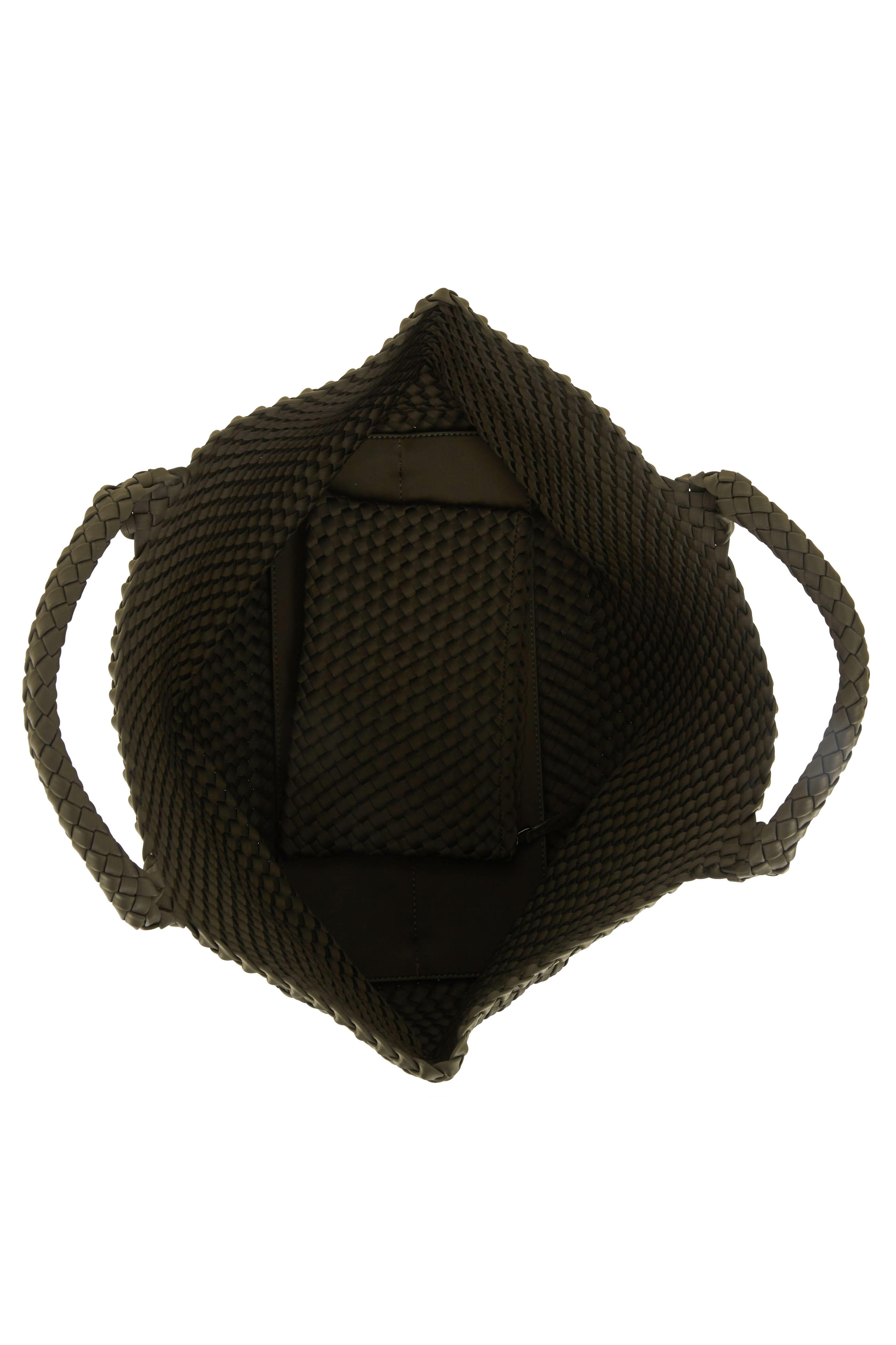 Neoprene. Dual top handle. Open top. Removable zip pouch. Unlined; nylon base. Imported. Width: 22". Height: 13". Depth: 10".