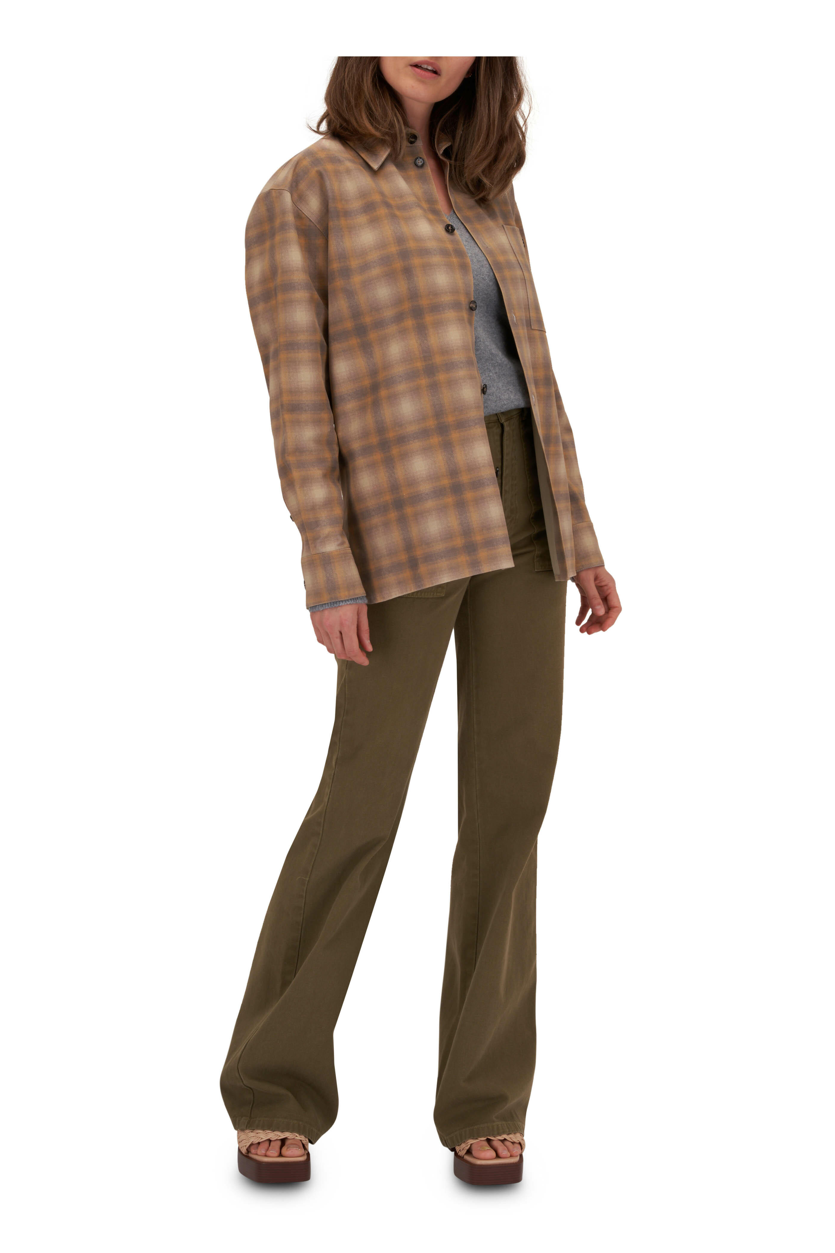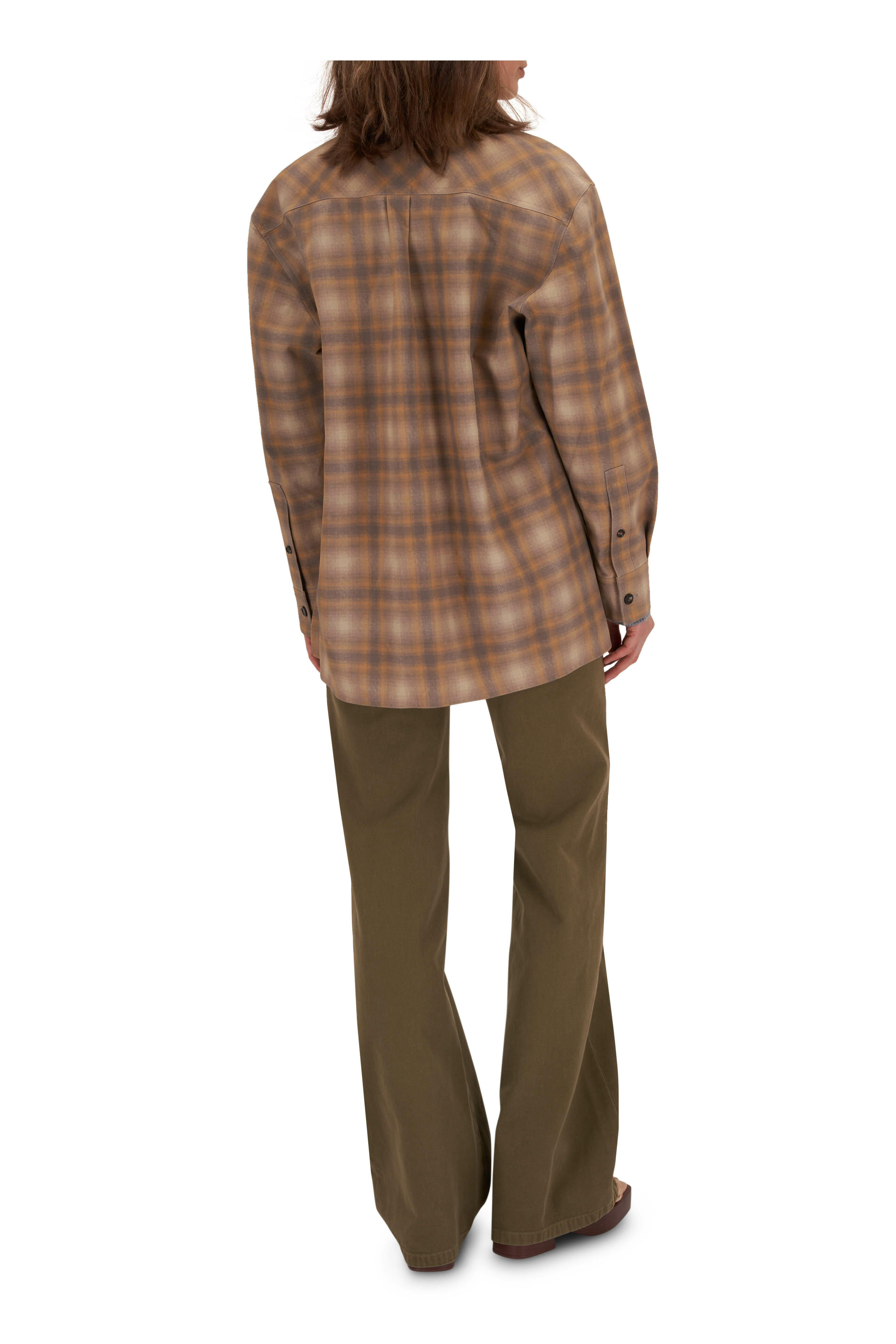 Specialist clean. Spread collar. Front button placket. Chest patch pocket. Single button cuffs. Vented side hems. Made in Italy. Oversize fit. 100% leather.