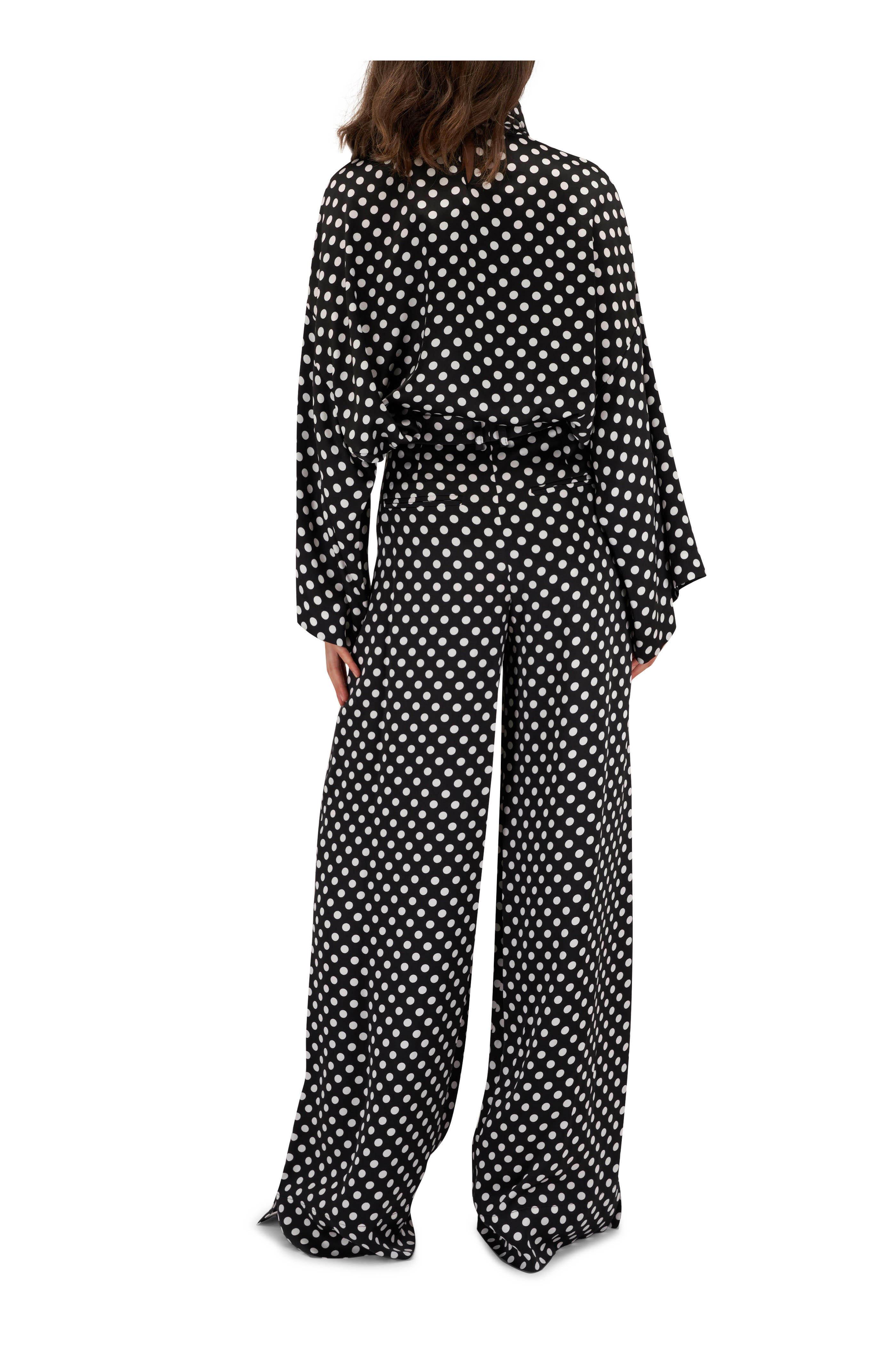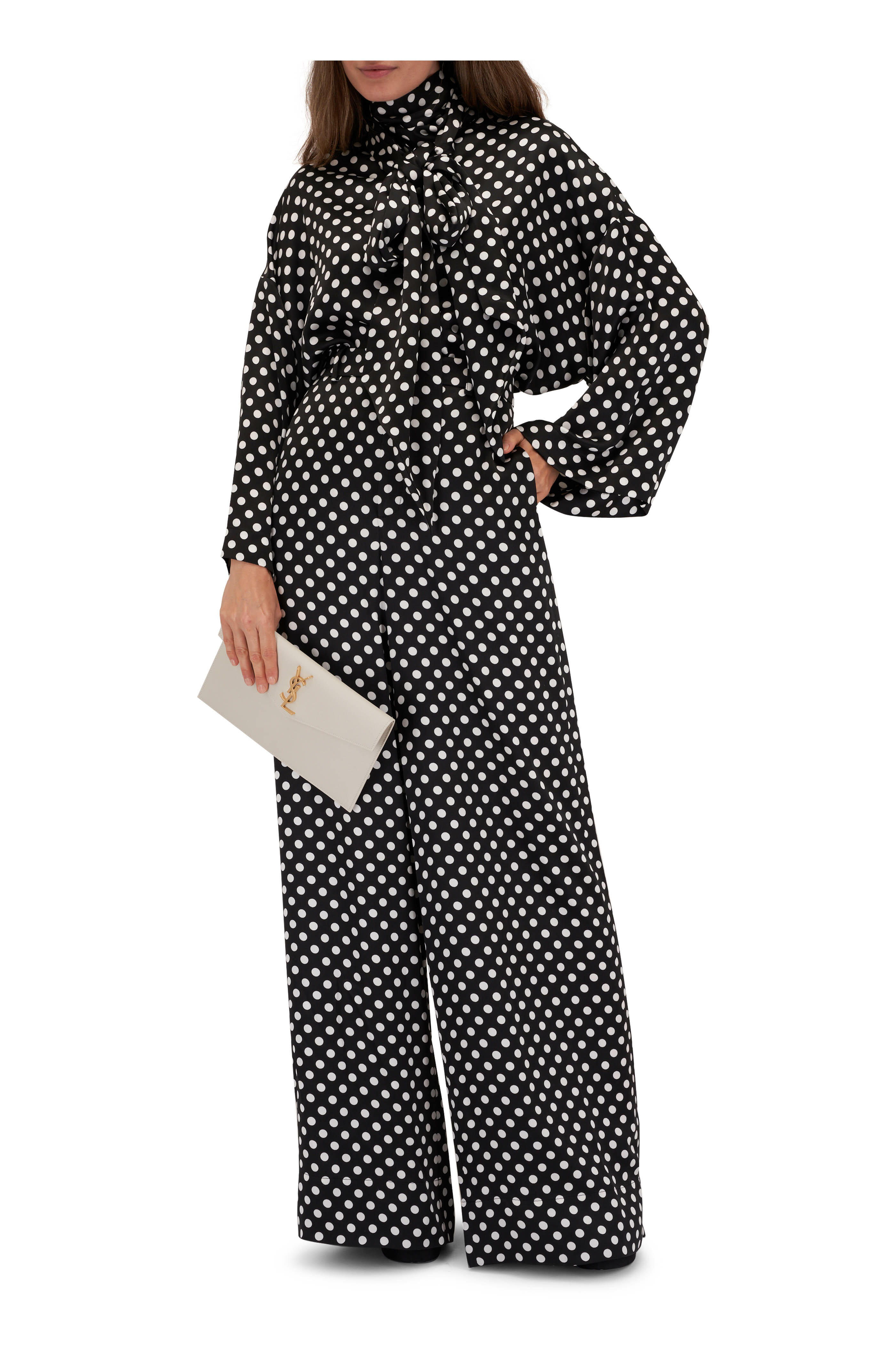 Black & White Polka Dot Satin Tie-Neck Blouse