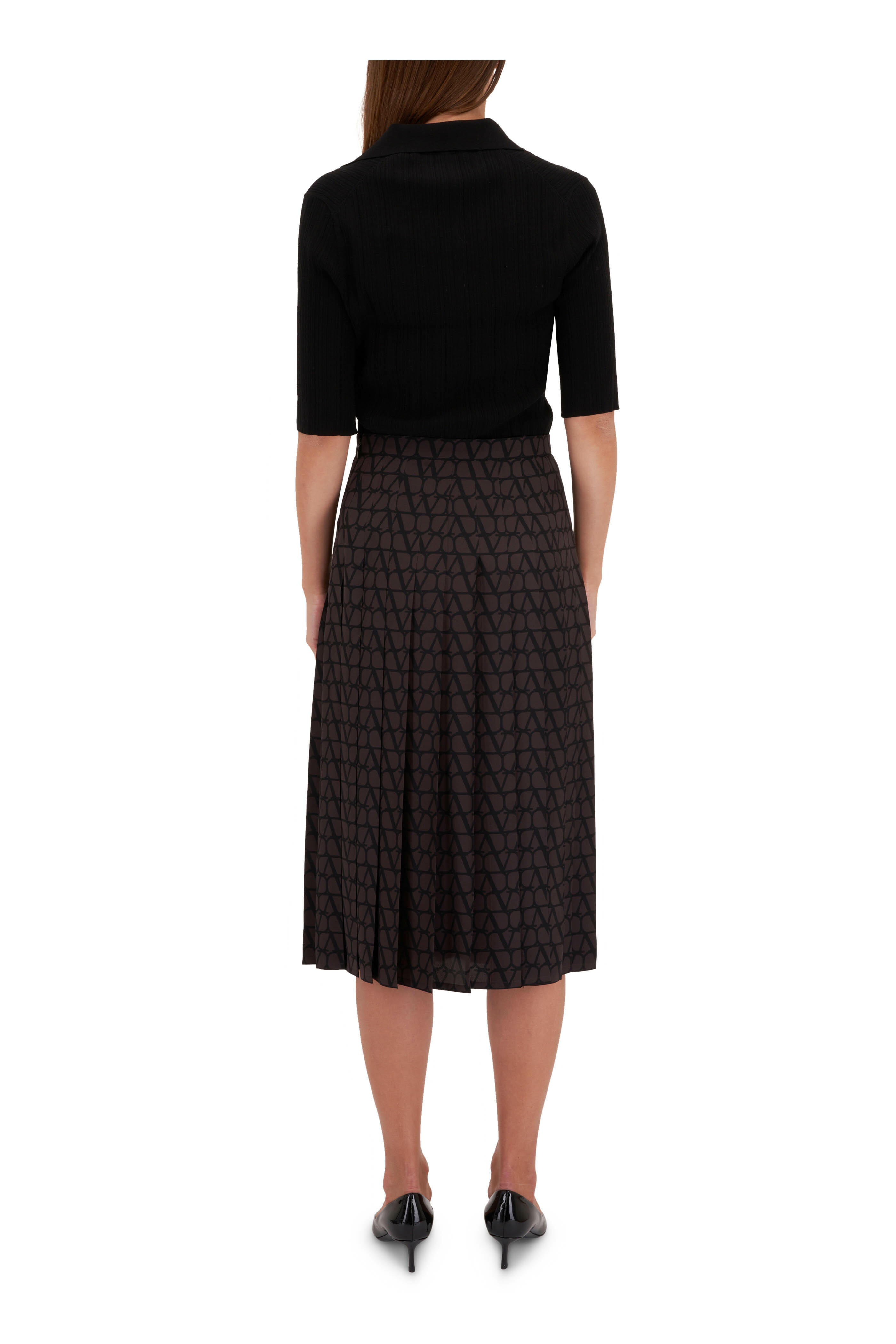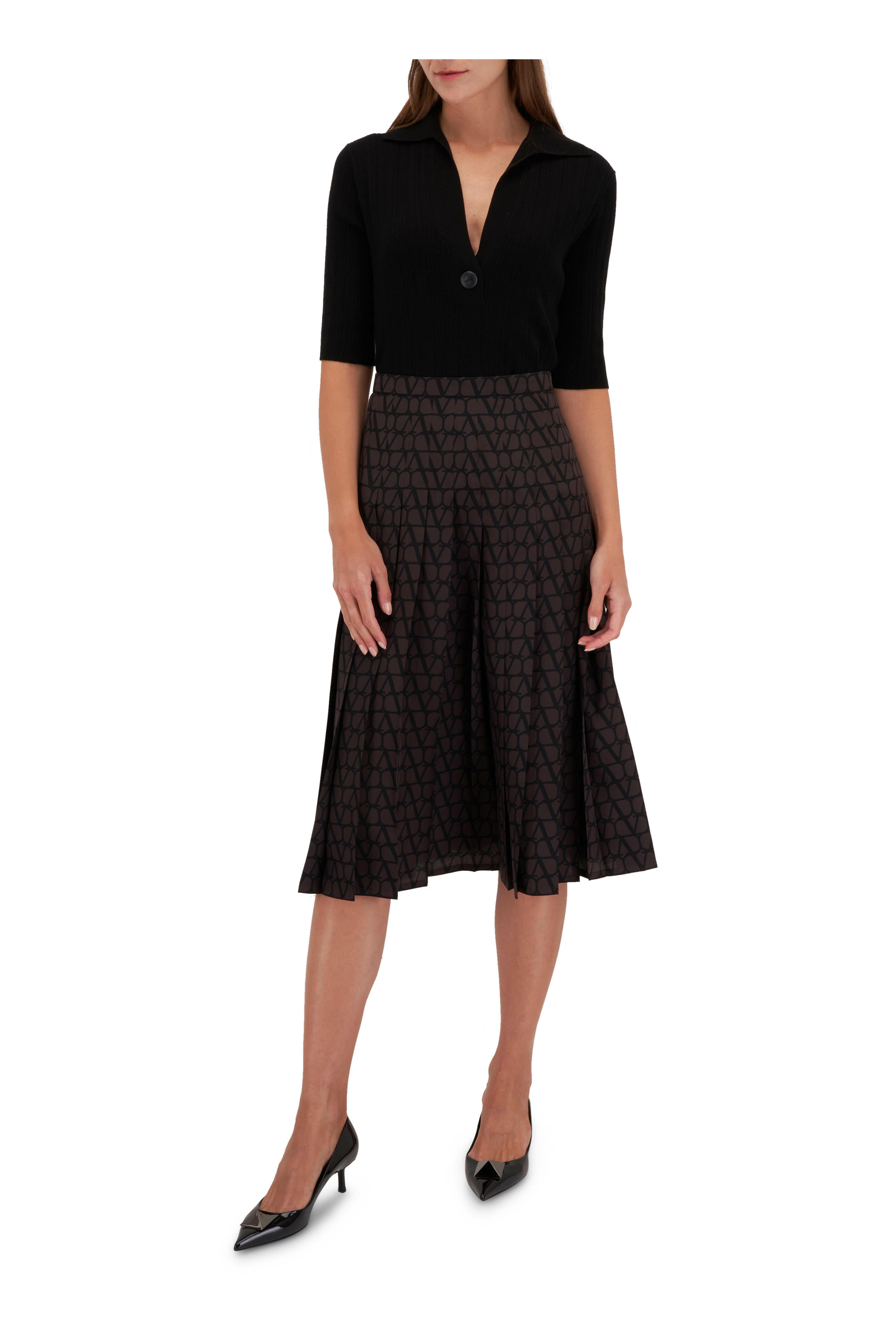 Concealed side zip closure. Pleated. Made in Italy. 29.5" length. 100% silk. Dry clean.