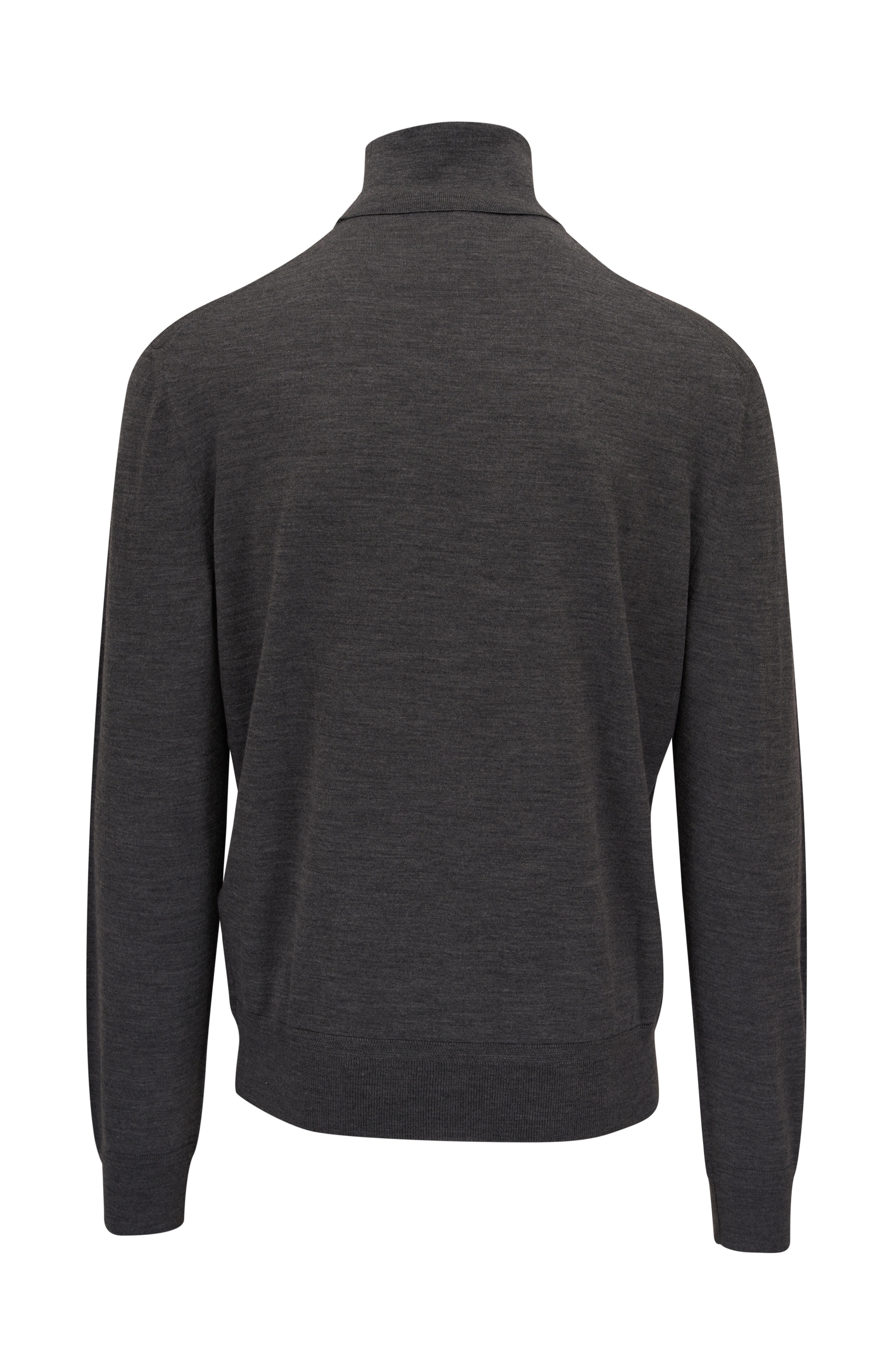 Turtleneck. Ribbed trims. Made in Italy. 100% wool. Dry clean.