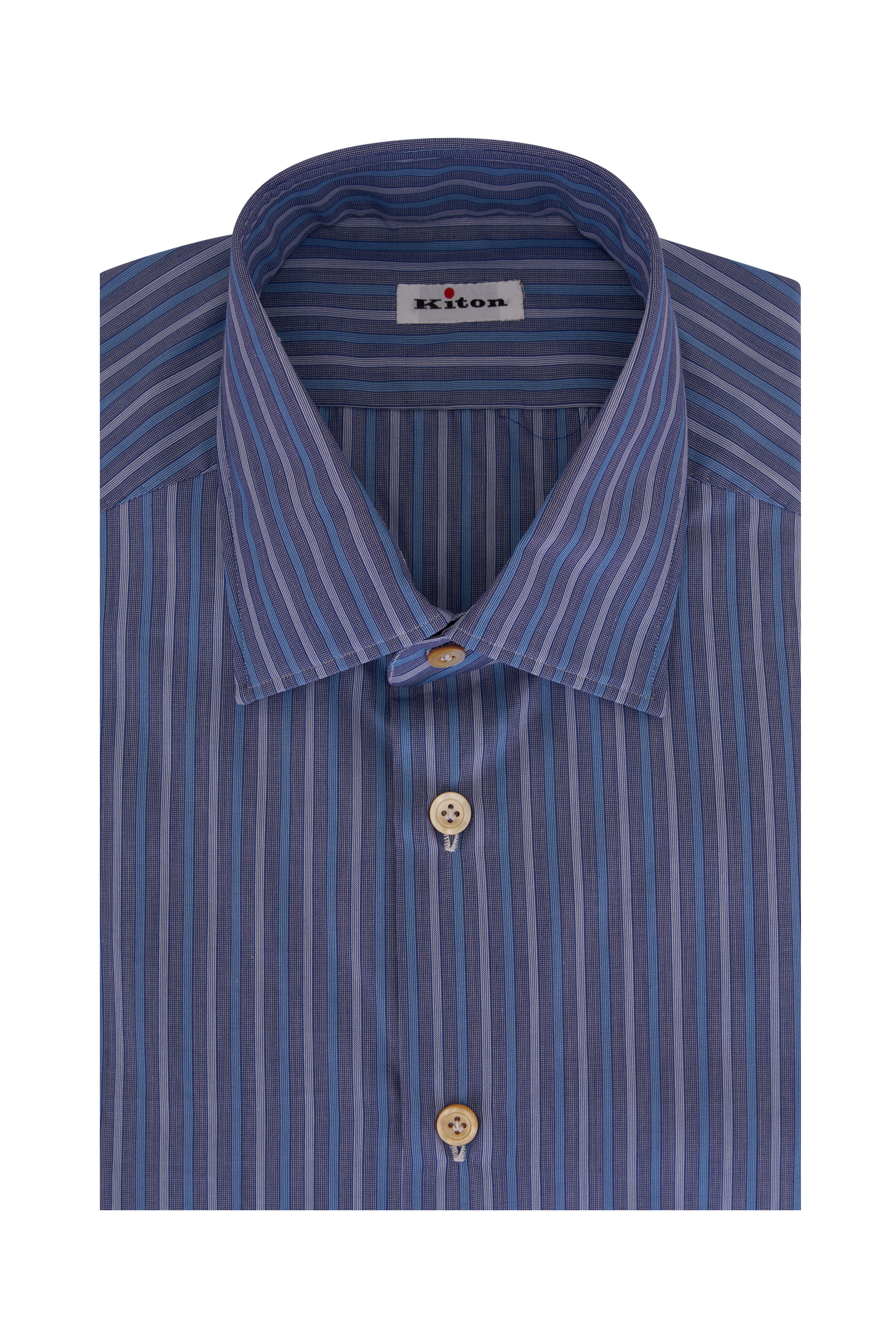 Blue, Teal & White Striped Cotton Dress Shirt