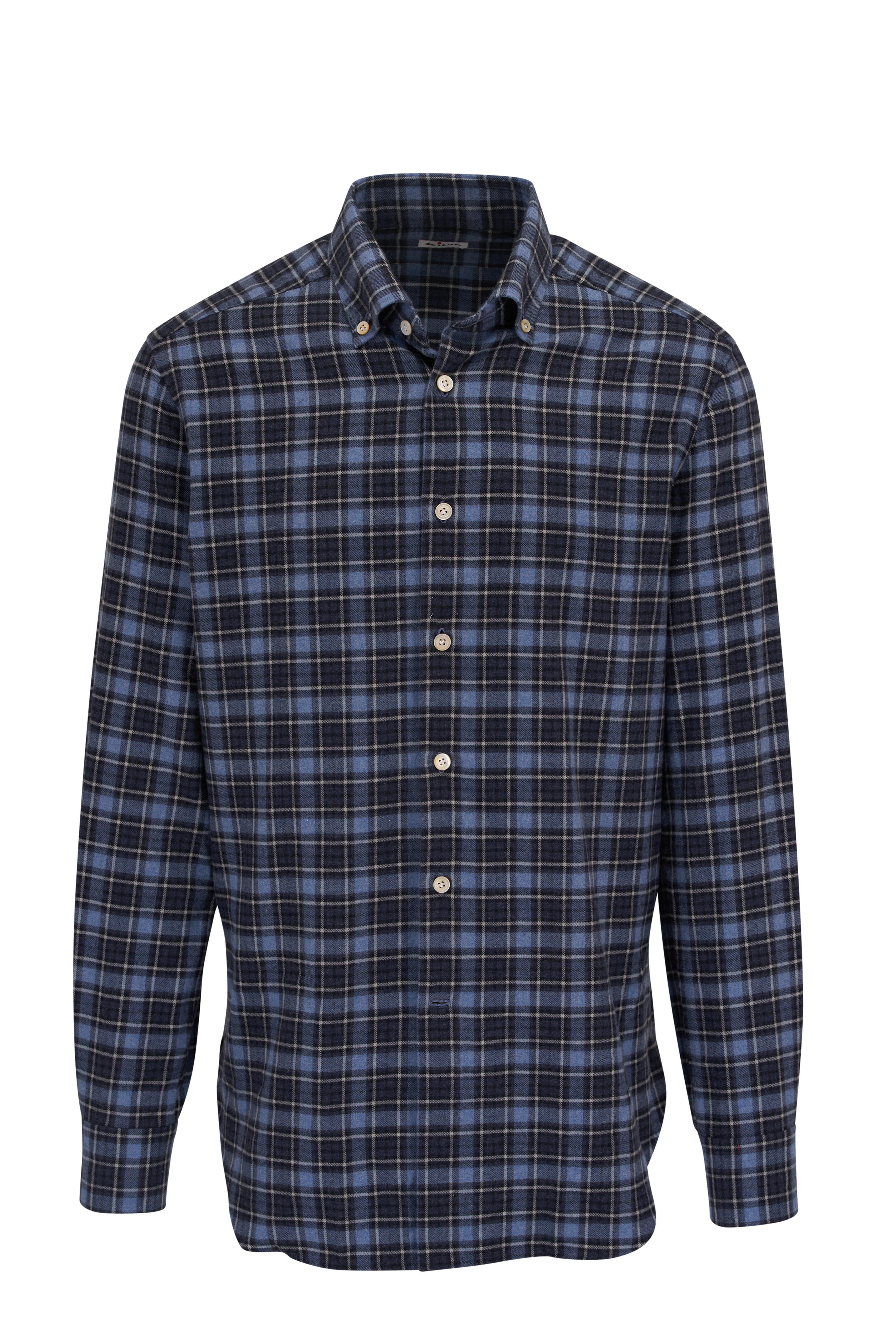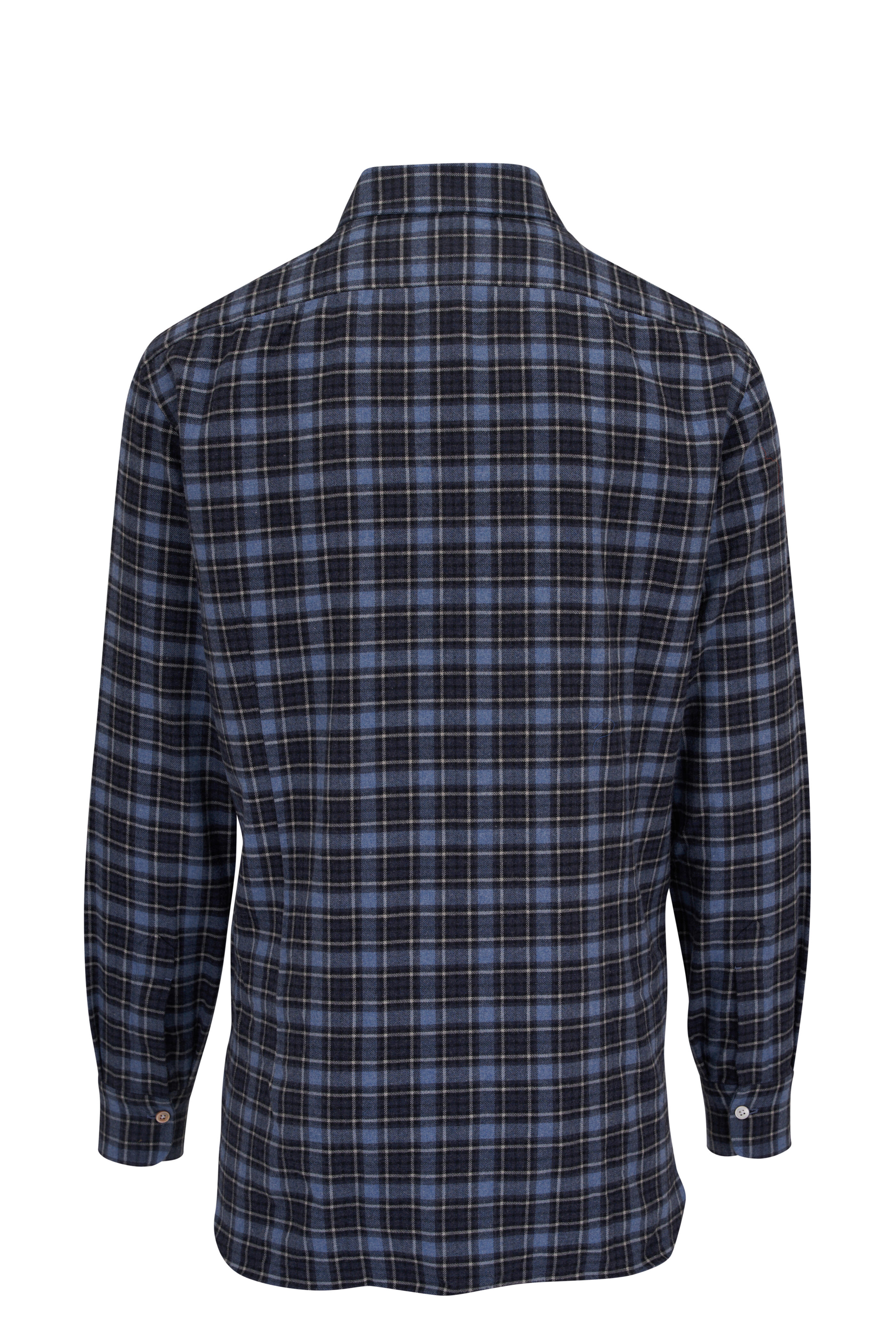Spread collar. Front button placket. Single button mitered cuffs. Made in Italy. 100% cotton. Machine wash.
