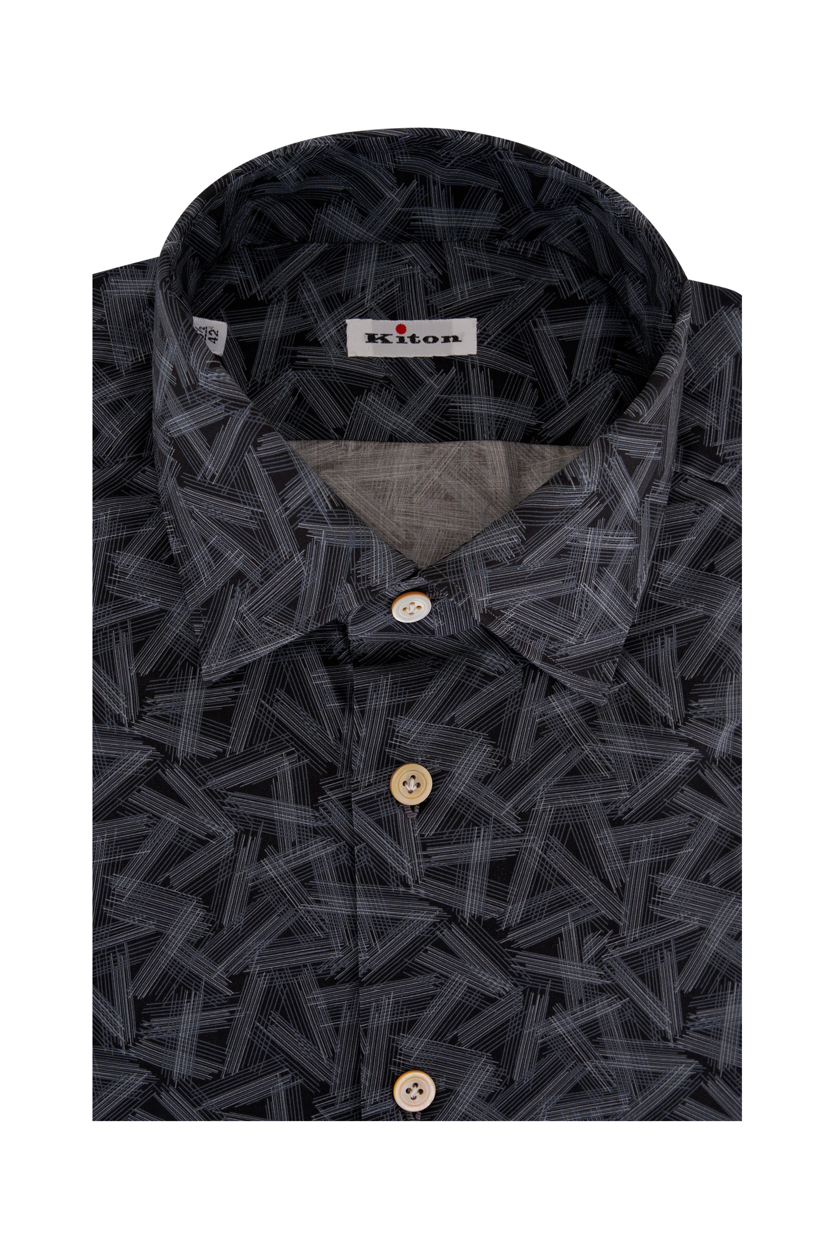 Spread collar. Front button placket. Single button cuffs. Made in Italy. 97% cotton, 3% elastane. Dry clean.