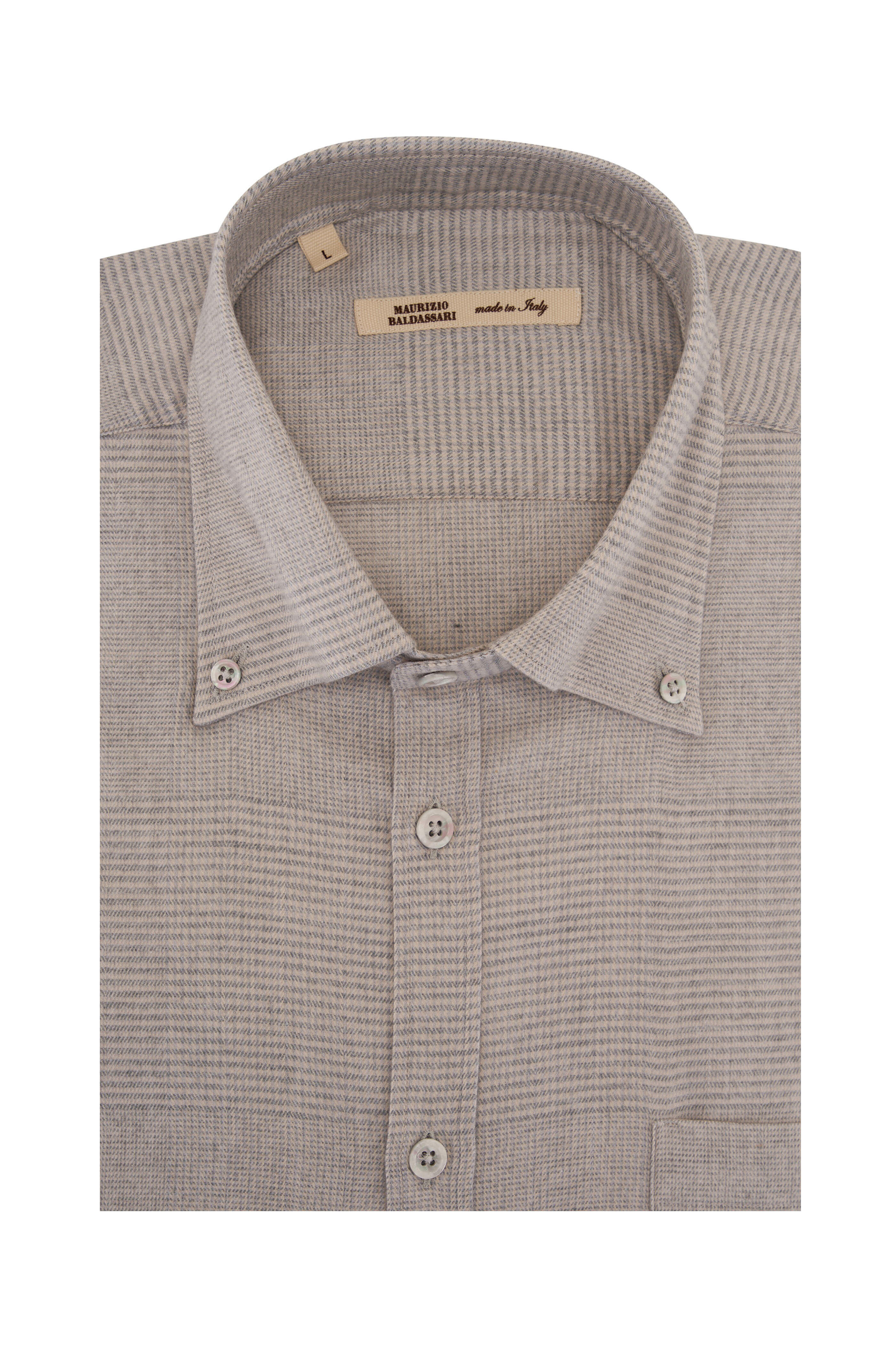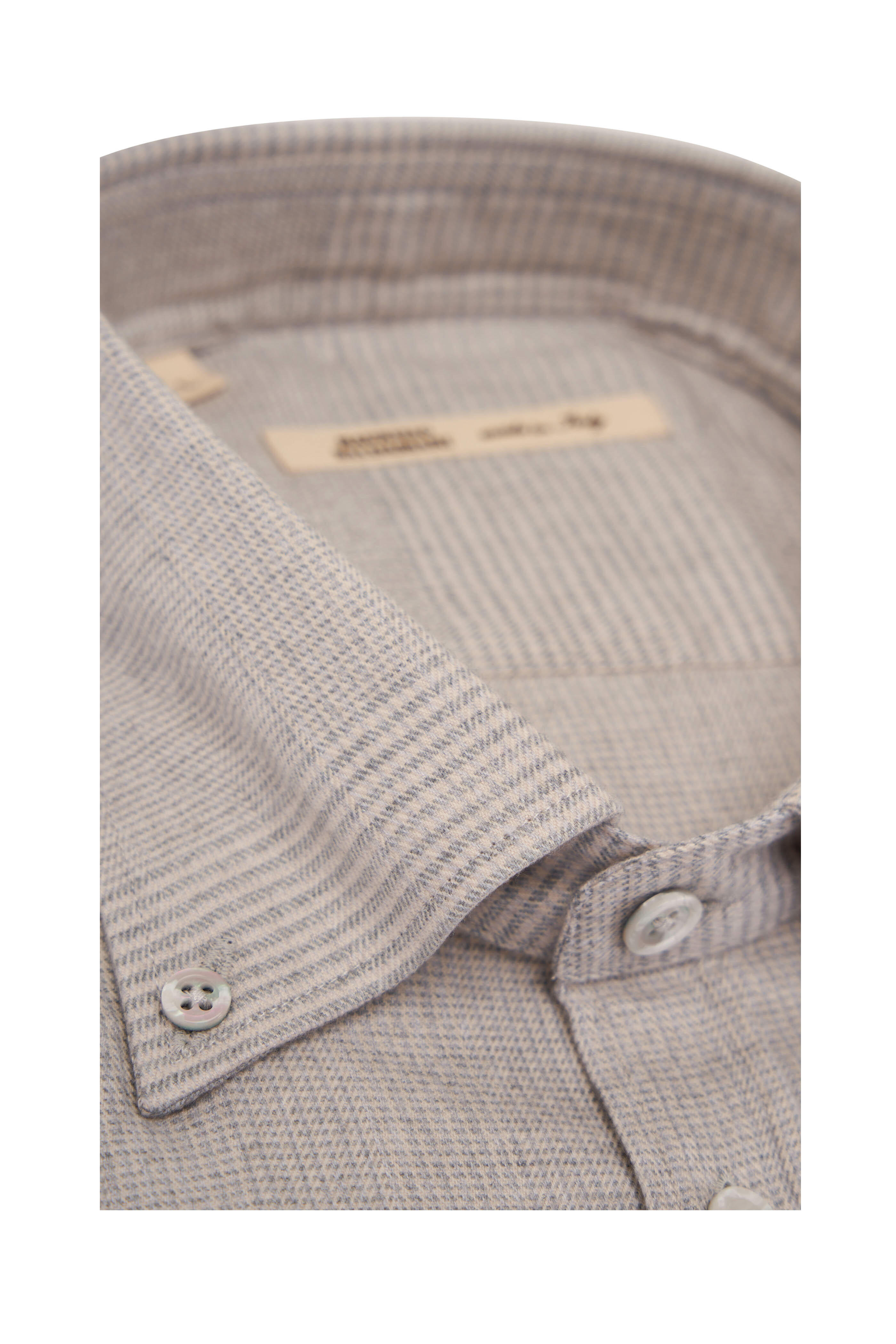 Button down point collar. Front button placket. Single button mitered cuffs. Chest patch pocket. Made in Italy. 61% cotton, 39% lyocell. Machine wash.