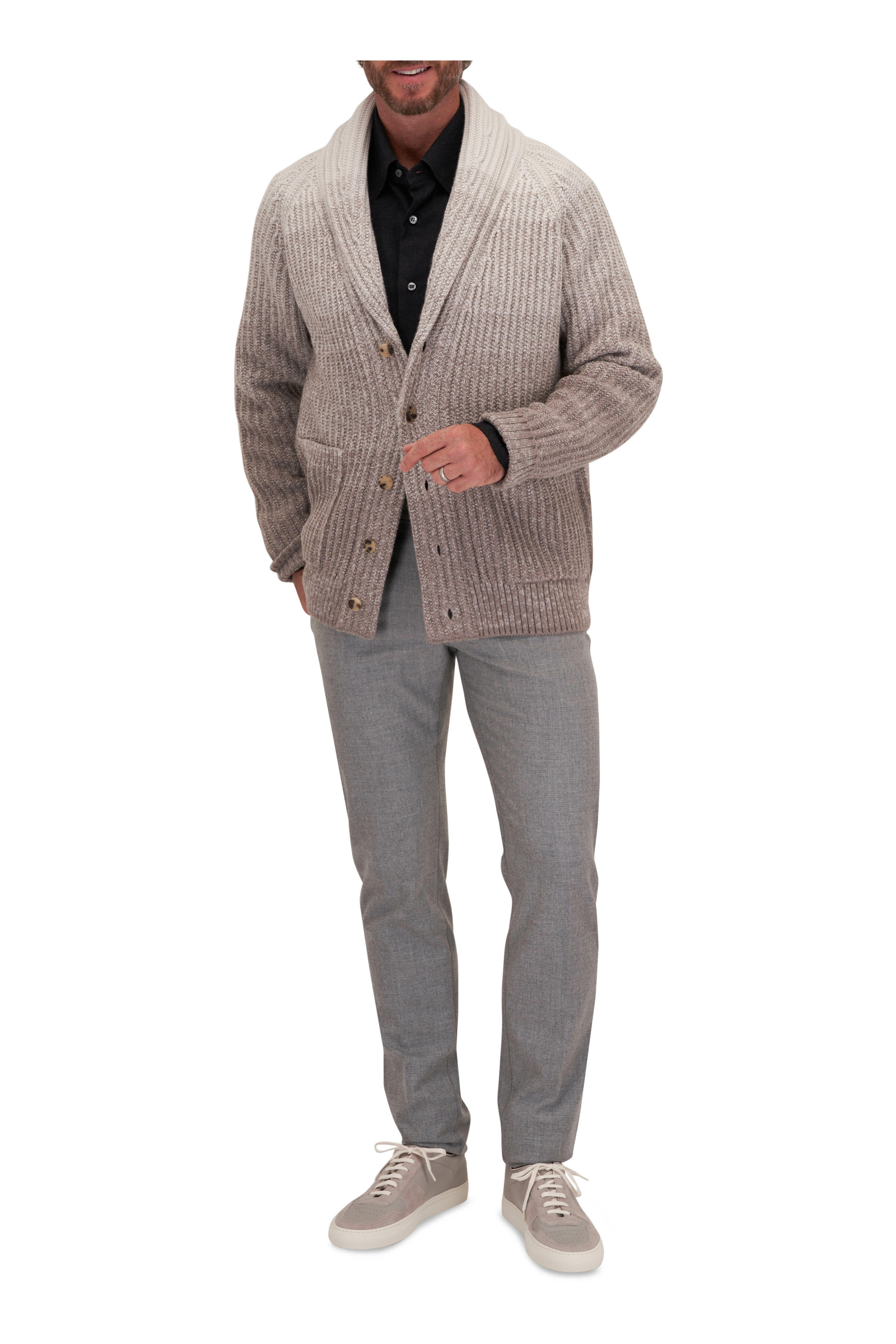 Light Gray Ombre Cotton & Wool Cardigan