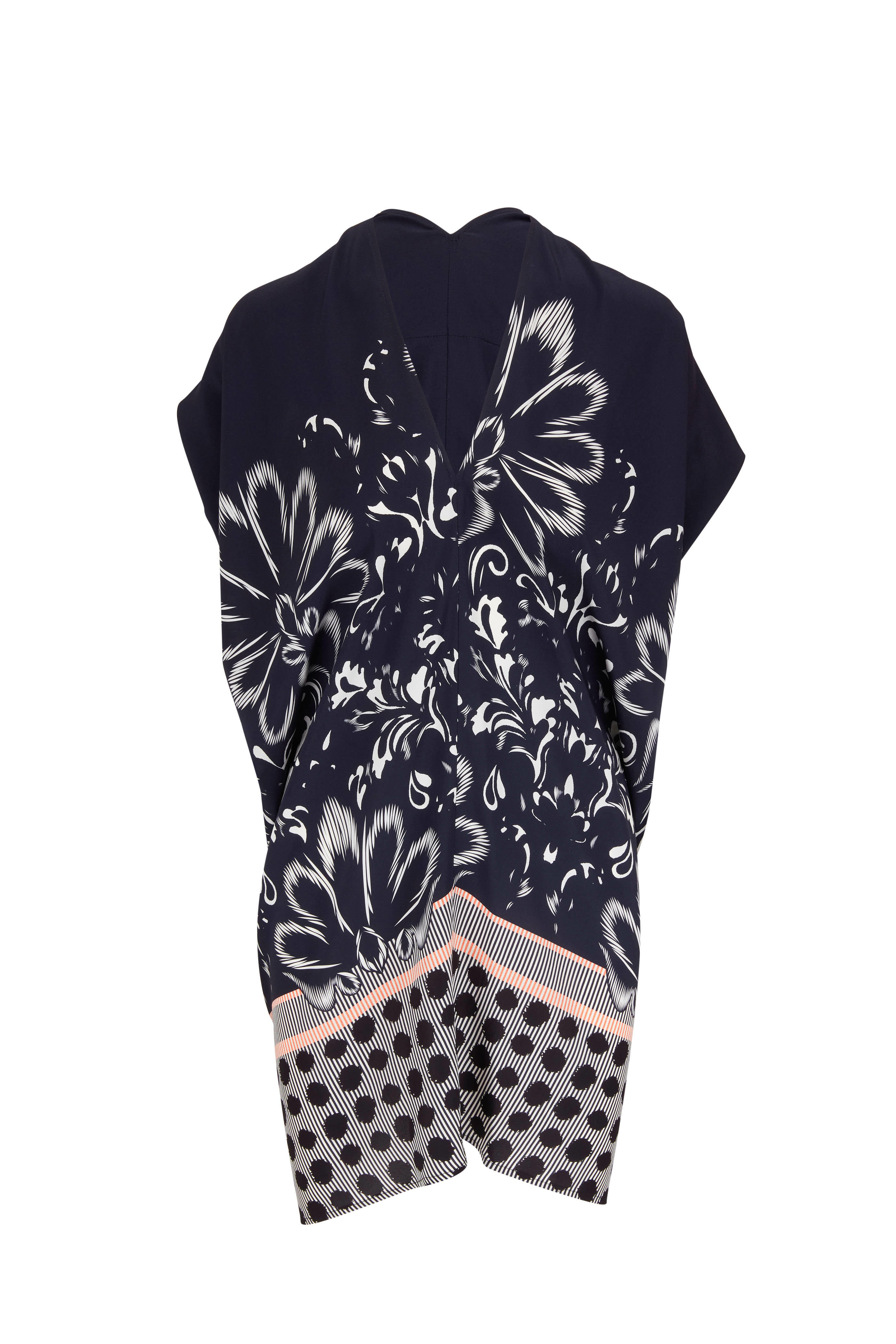 Simple Foil Ink Jet Silk Damask Dot Mini Dress