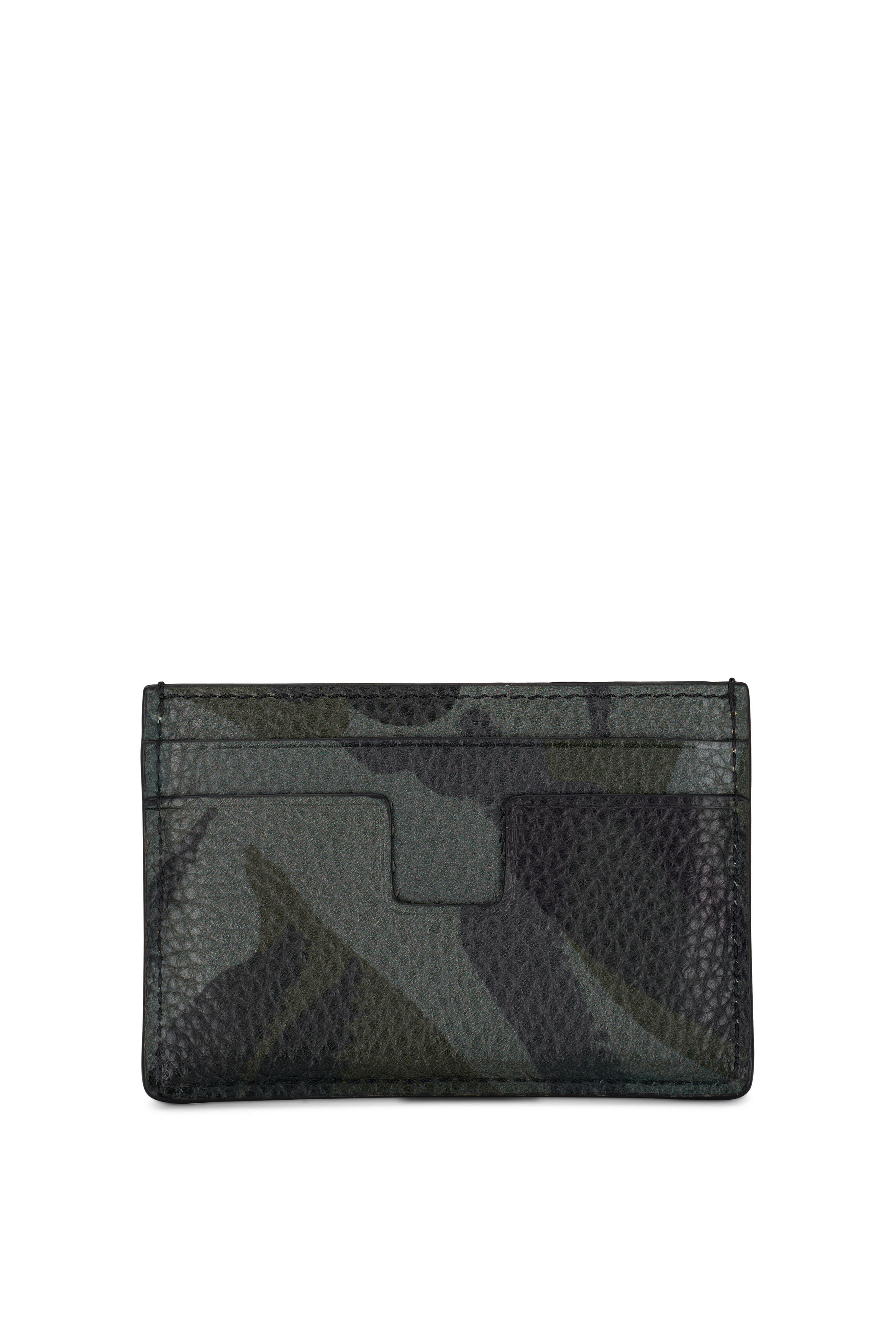 Grained leather. Four card slots. Center open compartment. Made in Italy. Width: 3 ⅞". Height: 2 ⅝".