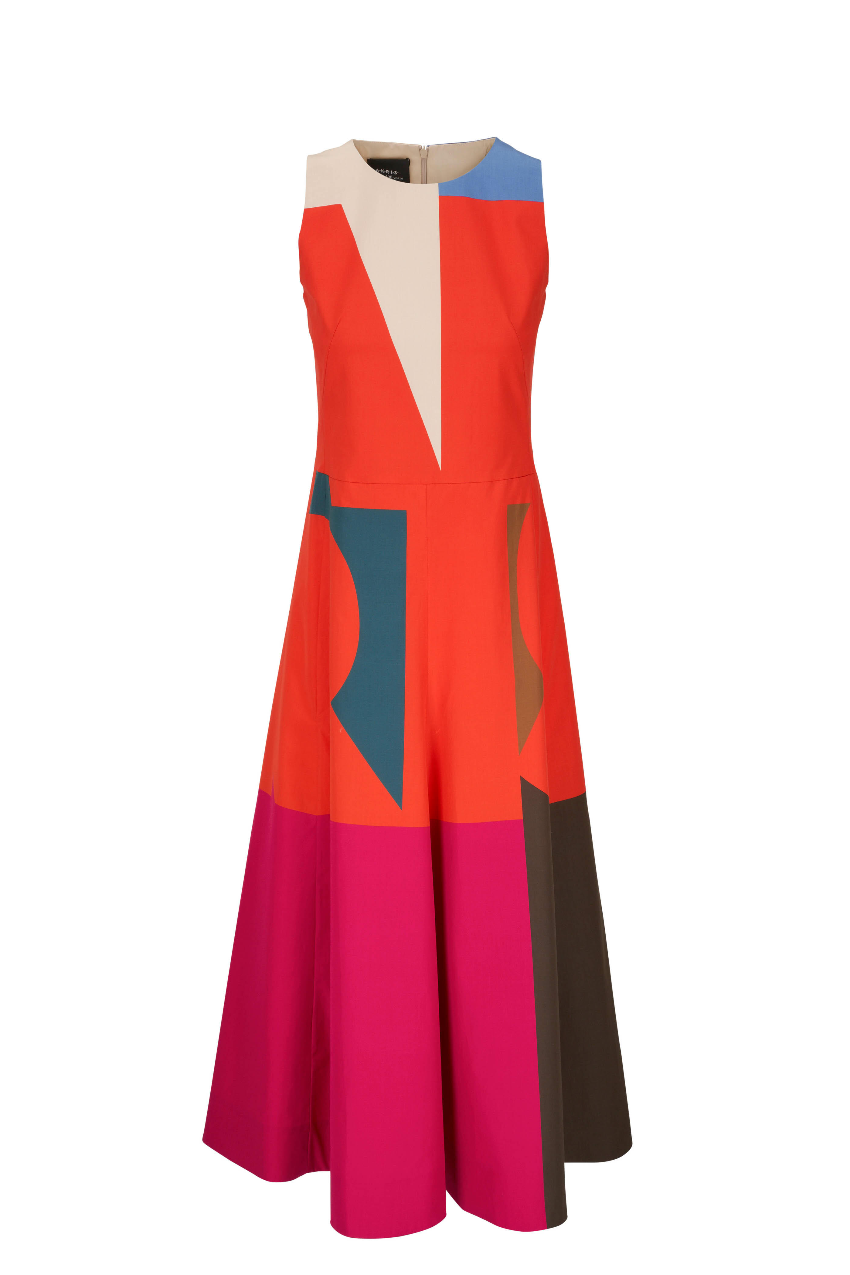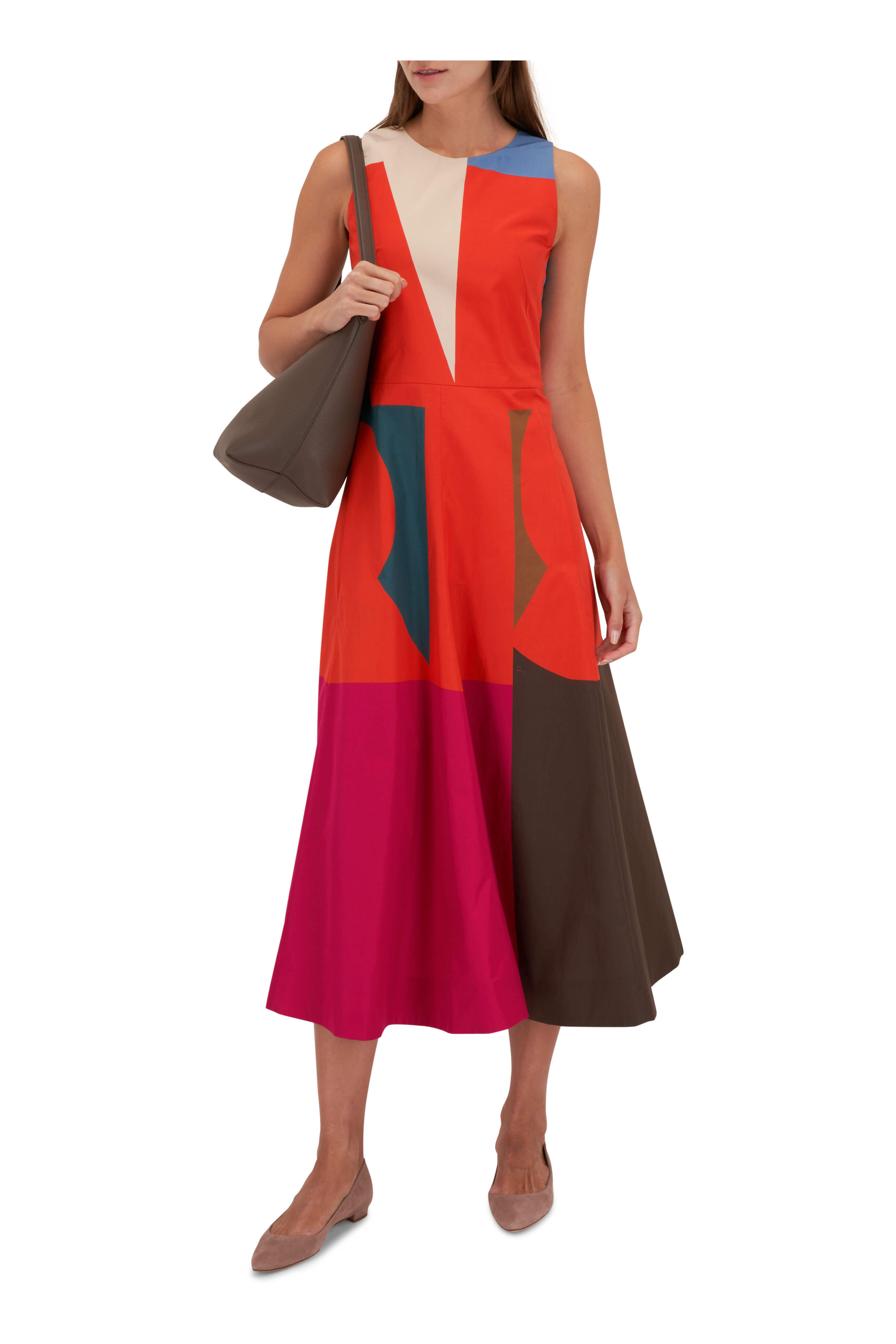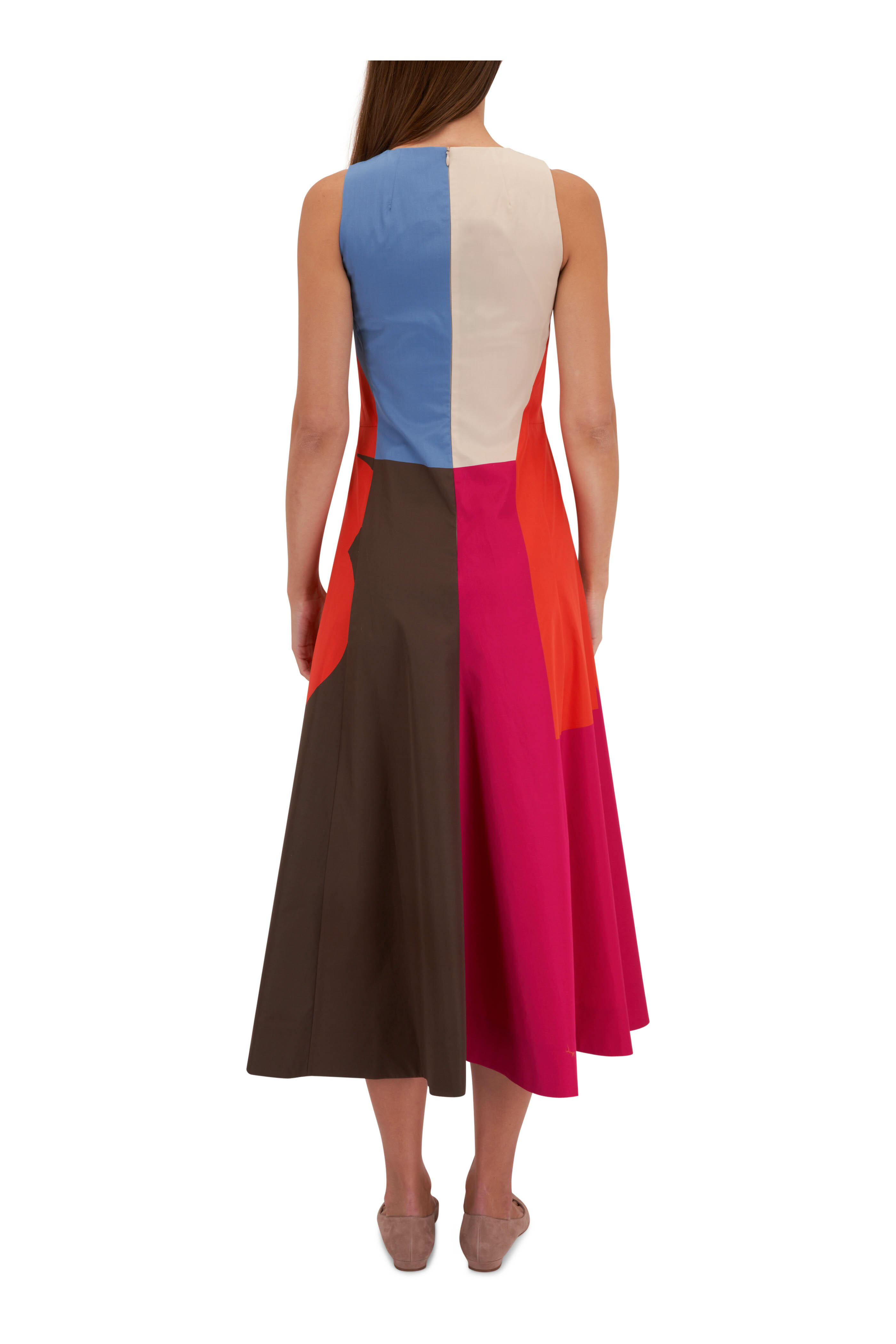 Multicolor Colorblock Cotton Poplin Midi Dress