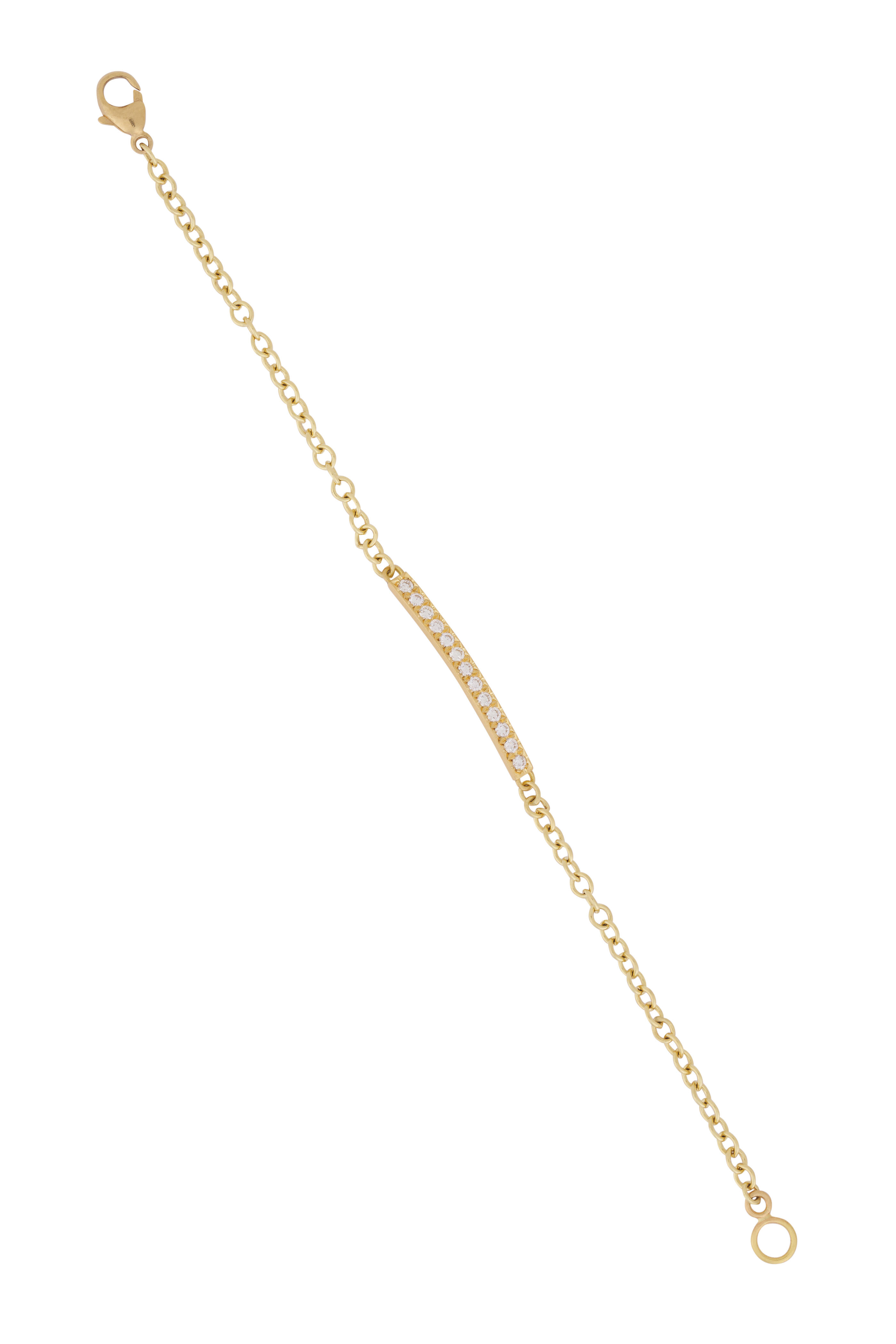 20k yellow gold bar. 18k yellow gold chain. .44ct pave diamonds.