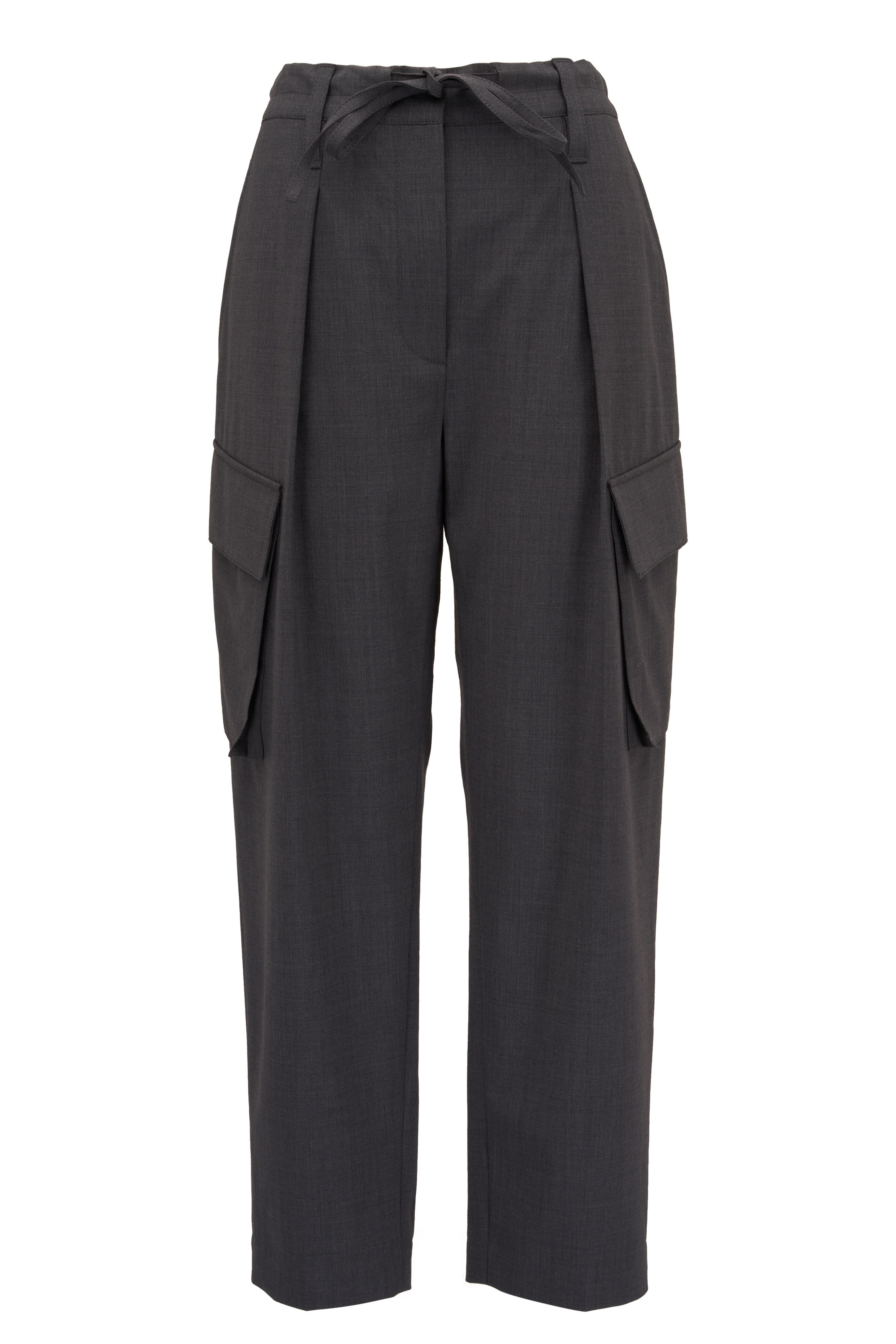 Elasticized waist; belt loops. Zip fly; double hook-&-bar closure. Side slip pockets; lower cargo pockets; back welt pockets. Cropped hem. Made in Italy. Rise: 12". Inseam: 26". 75% virgin wool, 23% polyamide, 2% elastane. Dry clean.