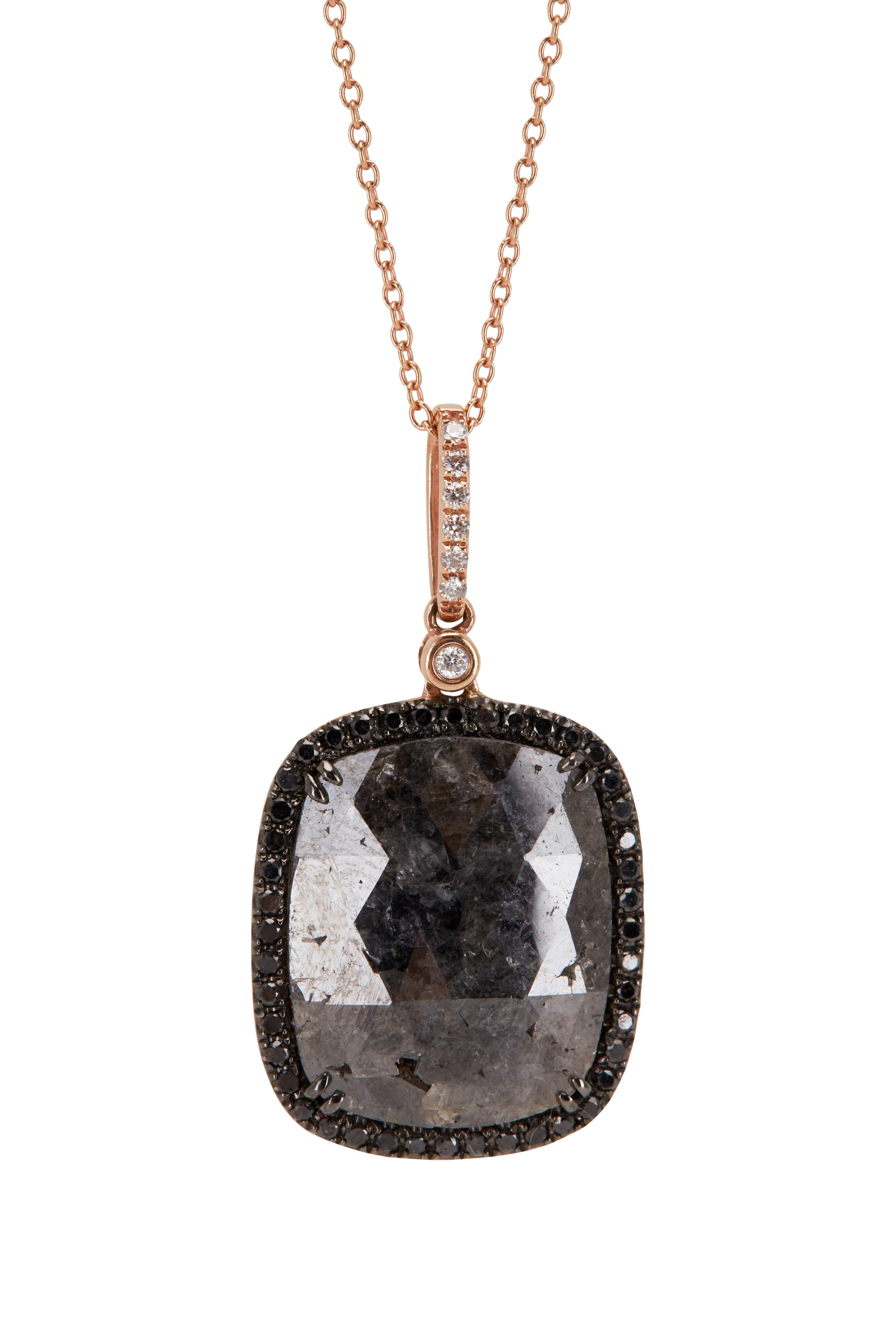 14k rose gold. 7.40 carat rough cut gray diamonds.