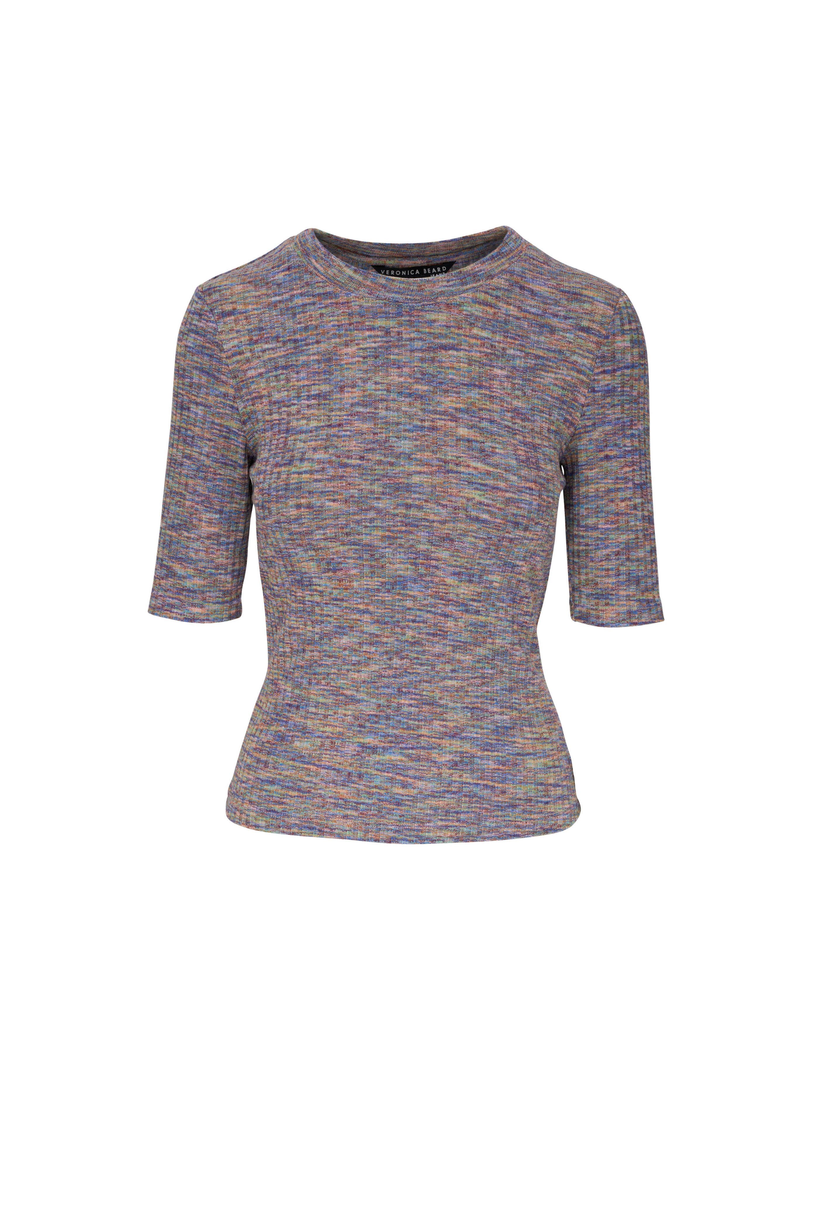 Crewneck. Three-quarter sleeves. Finished hem. Imported. 22" shoulder to hem. 75% rayon, 19% polyester, 6% spandex. Machine wash.