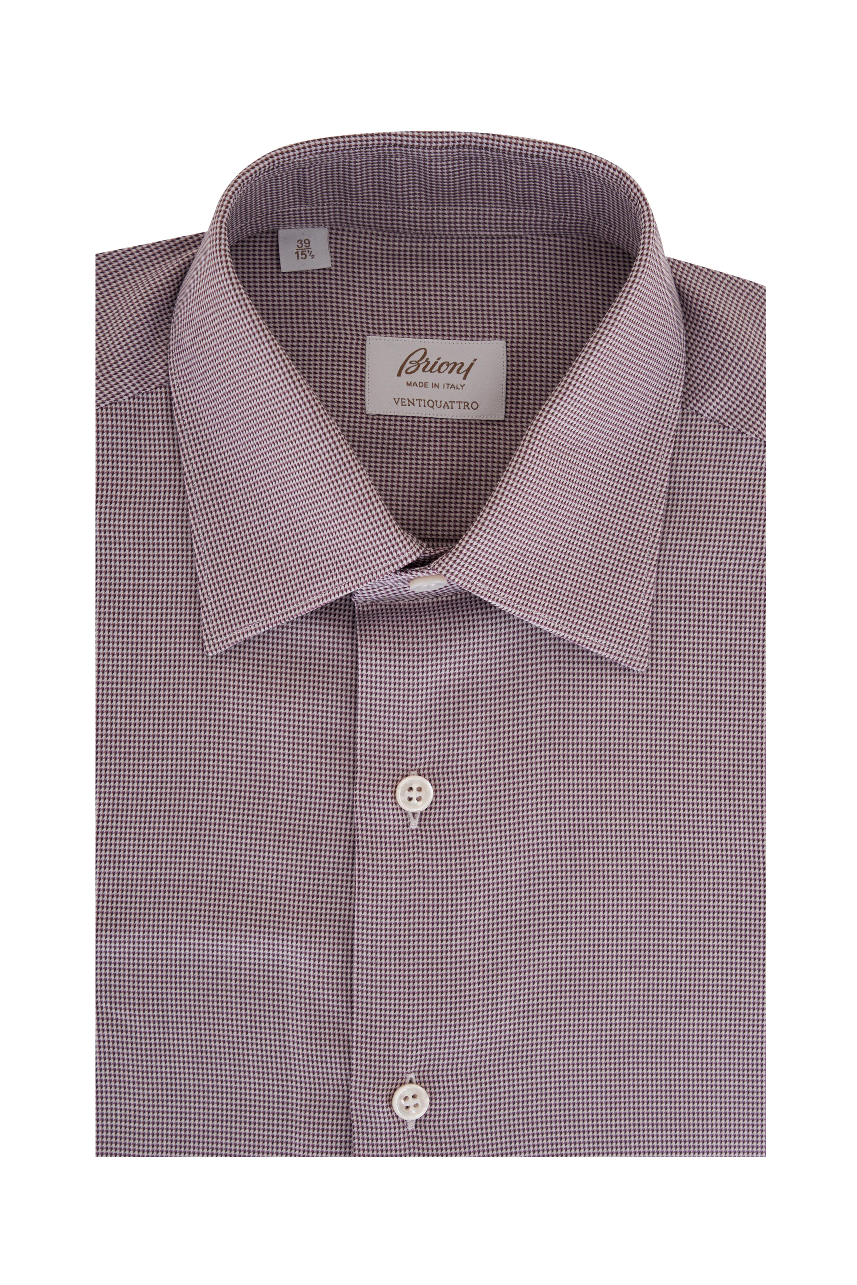 Spread collar. Front button placket. Single button cuffs. Made in Italy. 100% cotton. Machine wash.